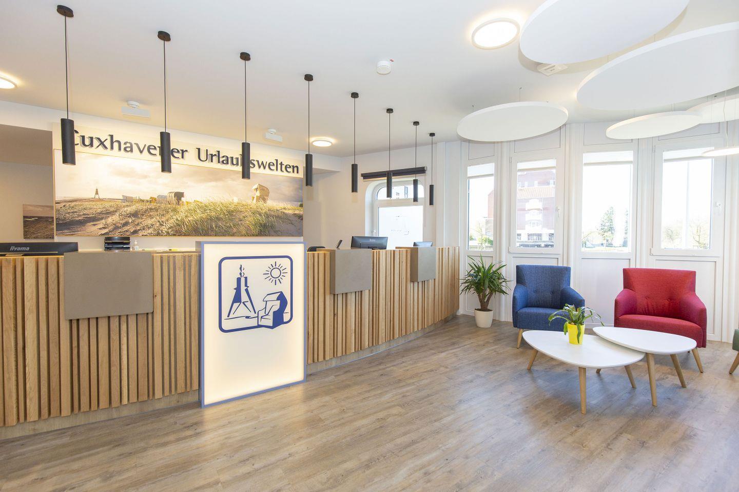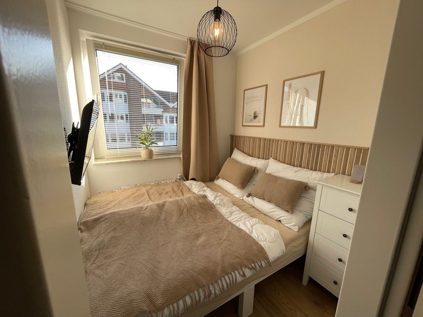 Haus "Lord Nelson", Typ 7, App.-Nr. "211", bis 3 Personen, 2. Etage, ca. 40 qm Größe, Weltschifffahrtsweg (ohne Meerblick, Richtung Elbe), Wohnbereich mit Schlafcouch (ca. 140x200), sep. Schlafzimmer mit kleinem Doppelbett (ca.150x190m), Dusche/WC, Küchenzeile mit Fenster im Essbereich mit Backofen/Induktionskochfeld und Geschirrspüler, Balkon, Kabel-TV, kostenl. W-Lan-Zugang im App., Nichtraucherwohnung, Haustiere sind nicht gestattet, Außenstellplatz, Strandkorb im Sommer 2026.