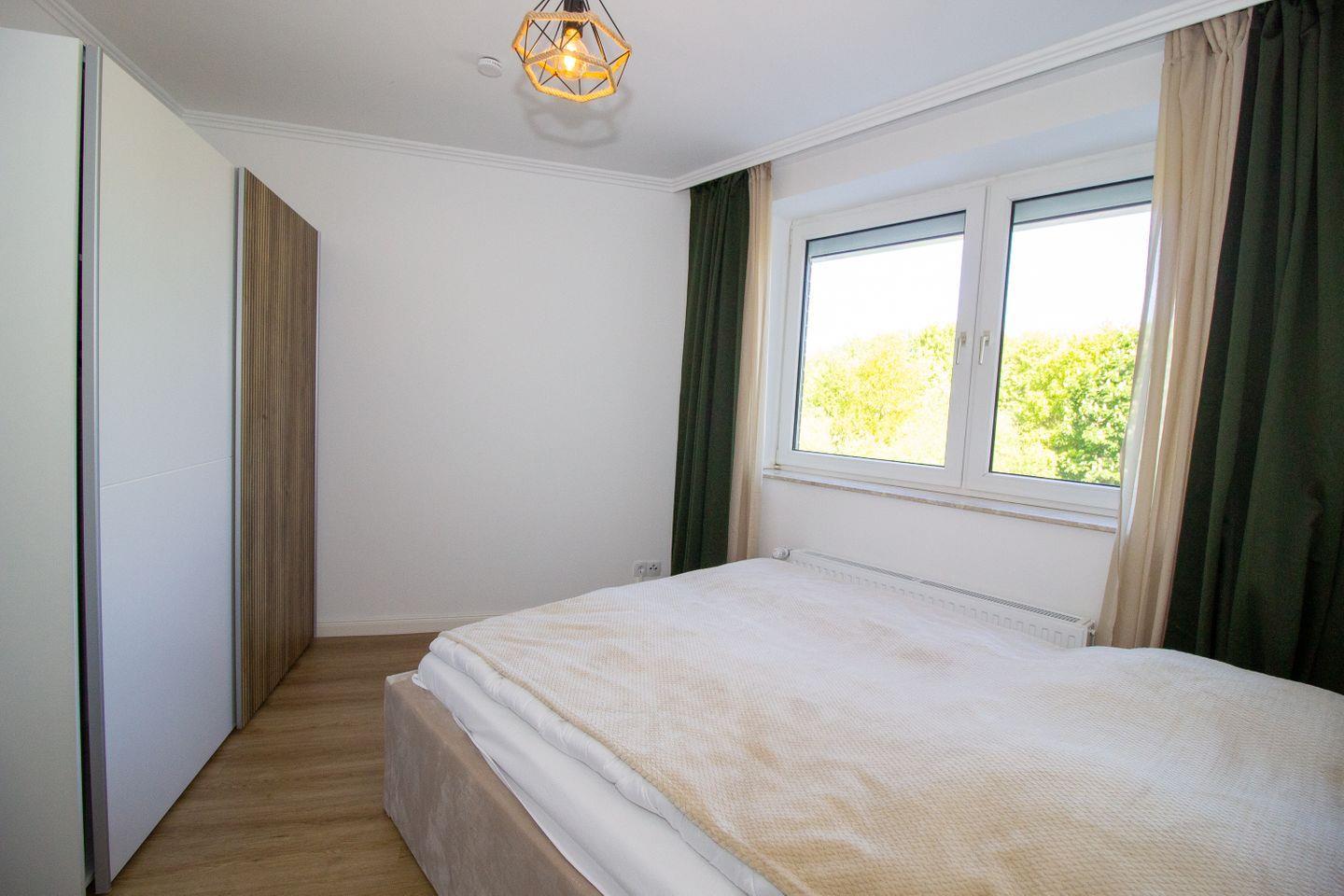 Haus "Lord Nelson", Typ 6, Appartement-Nr. "101", bis 6 Personen, 1. Etage, ca. 84 qm Größe, Nord/Westseite (ohne Meerblick),1. Schlafzimmer mit Doppelbett, 2. Schlafzimmer mit Doppelbett, für die Betten wird jeweils ein großes Bettlaken benötigt, da diese mit einem durchgehenden Topper ausgestattet sind, Wohnbereich mit Schlafcouch, zwei Badezimmer mit Dusche/WC, sep. Küche mit Backofen, Geschirrspüler und Mikrowelle, Nichtraucher App., Balkon (Westseite), kostenl. W-Lan Zugang im App., Tiefgaragenstellplatz, Strandkorb im Sommer 2025.