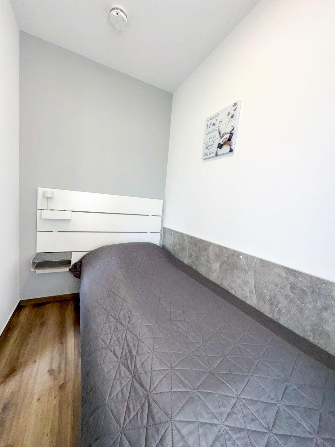 Haus Lord Nelson, Typ 2, App.-Nr. 218, bis 3 Pers. 2. Etage, ca. 40 qm Größe, Weltschifffahrtsweg (ohne Meerblick/Richtung Elbe), Wohnbereich mit Schrankbett, sep. kleines Schlafzimmer mit Einzelbett, Dusche/WC, Küchenzeile mit Backofen, 4-Platten Cerankochfeld, Mikrowelle, Geschirrspüler, Balkon, Kabel-TV, kostenl. WLAN Zugang im App., Tiefgaragenstellplatz, Haustiere sind nicht gestattet, Nichtraucherwohnung, Strandkorb im Sommer 2026.