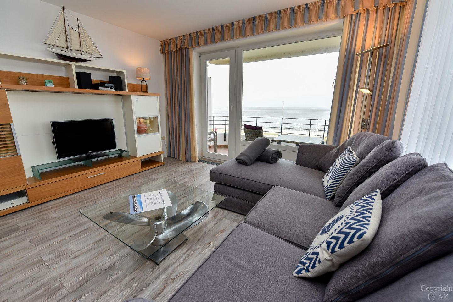 Moderne Eckwohnung mit Balkon und Panoramablick auf das Wattenmeer und die Nordsee in Cuxhaven-Duhnen.