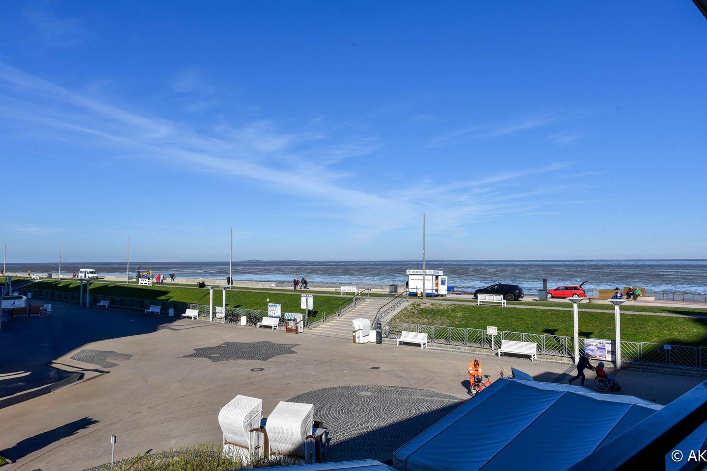 Moderne Ferienwohnung mit Seeblick auf die Insel Neuwerk und umfangreichen Annehmlichkeiten im Haus Panorama, Cuxhaven-Duhnen.