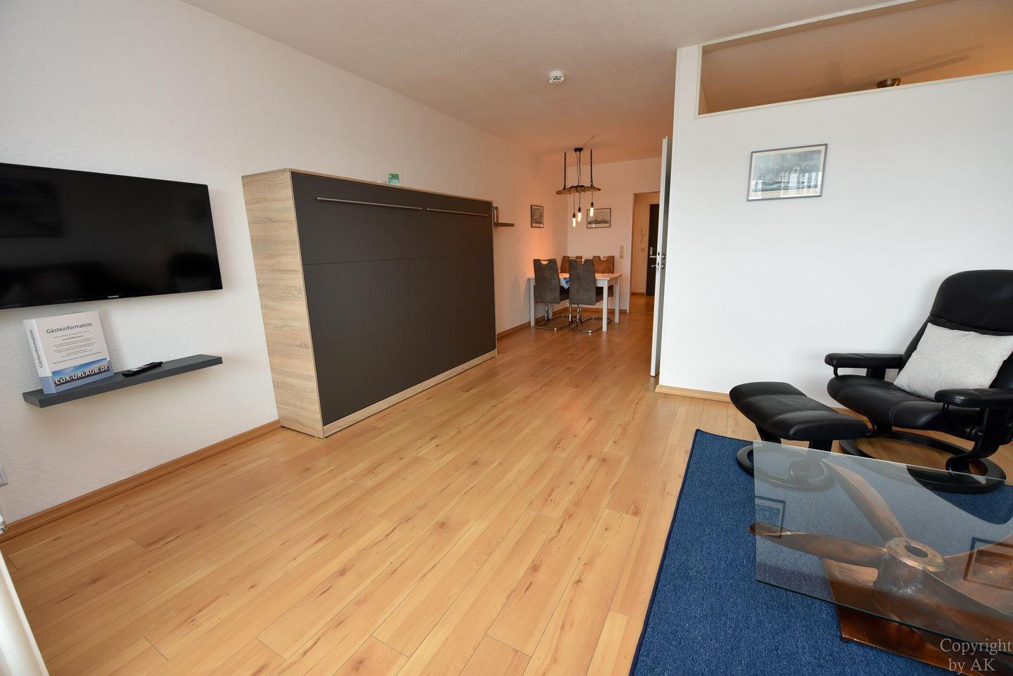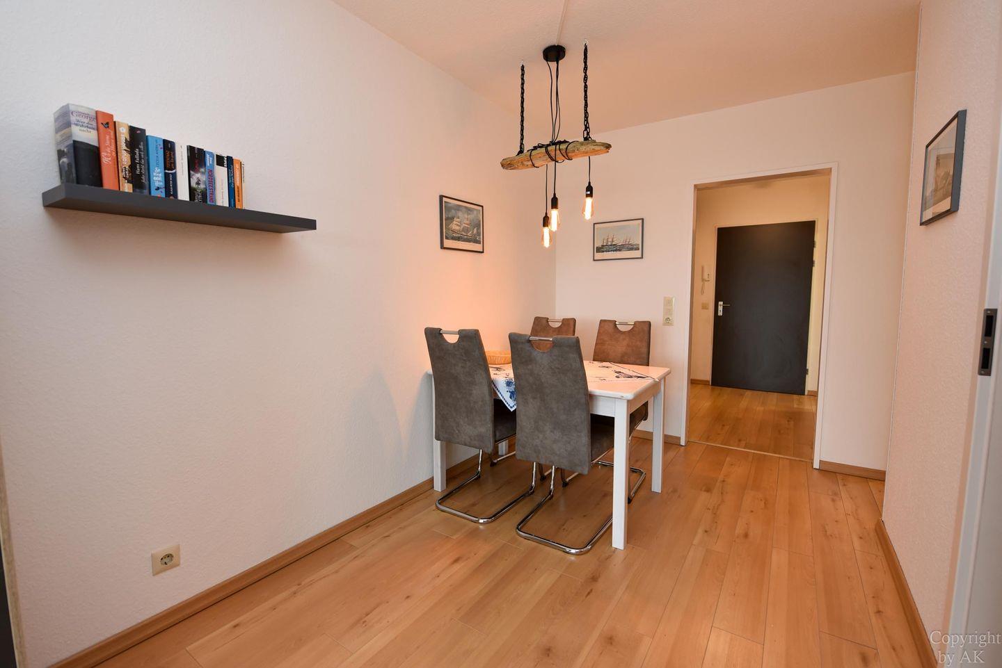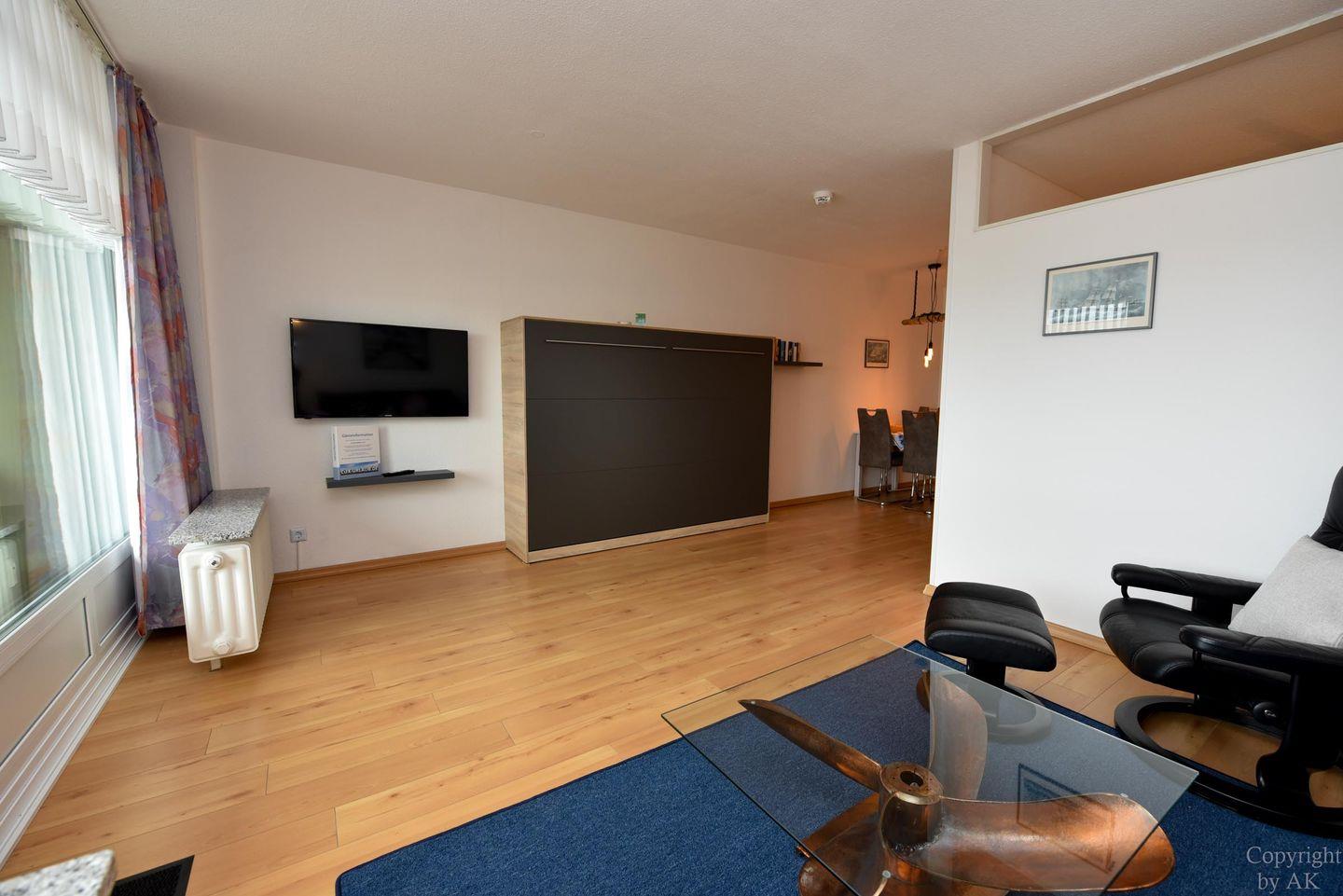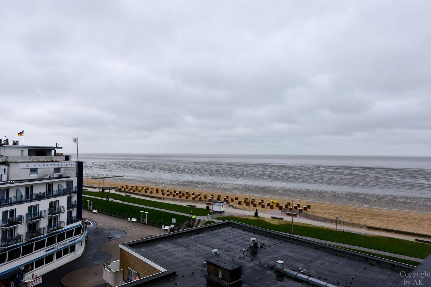 Die Wohnung Nr. 87 im Haus Panorama liegt in der 6. Etage und bietet einen beeindruckenden Seeblick in Richtung der Insel Neuwerk.
