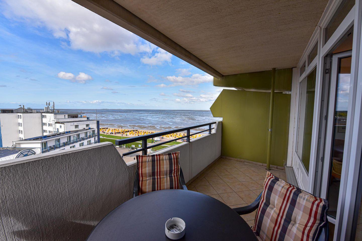 Die Eckwohnung Nr. 96 befindet sich im Haus Panorama in der 7. Etage und man hat Seeblick Richtung Insel Neuwerk.