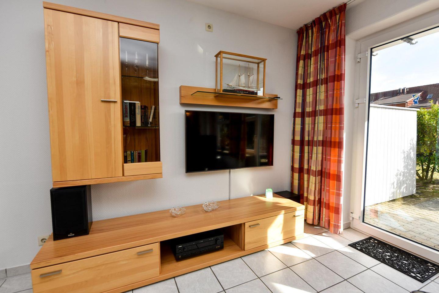 Die Wohnung Nr. 1 im Haus "Seeland 2" ist für bis zu 4 Personen ausgestattet und befindet sich ebenerdig mit einer schönen, sonnigen Südterrasse. In dem geräumigen Wohn-/Essraum befindet sich u.a. ein bequemes Sofa (140cm x 200cm) mit Schlaffunktion, welches sich im Handumdrehen in ein Gästebett umwandeln lässt. So bereiten Sie im Nu ein zusätzliches komfortables Nachtlager. Am nächsten Morgen bauen Sie das Bett ganz einfach wieder zum Sofa um und nehmen bequem Platz. Die voll ausgestattete Küchenzeile inkl. Geschirrspüler, E-Herd mit Cerankochfeld, Wasserkocher, Toaster und Kaffeemaschine bietet alles was Sie zum zaubern einer Mahlzeit benötigen. Im Schlafzimmer befindet sich ein 180cm breites Doppelbett, sowie ein geräumiger Kleiderschrank. Das große und helle Badezimmer verfügt über eine bodentiefe und barrierefreie Dusche.
