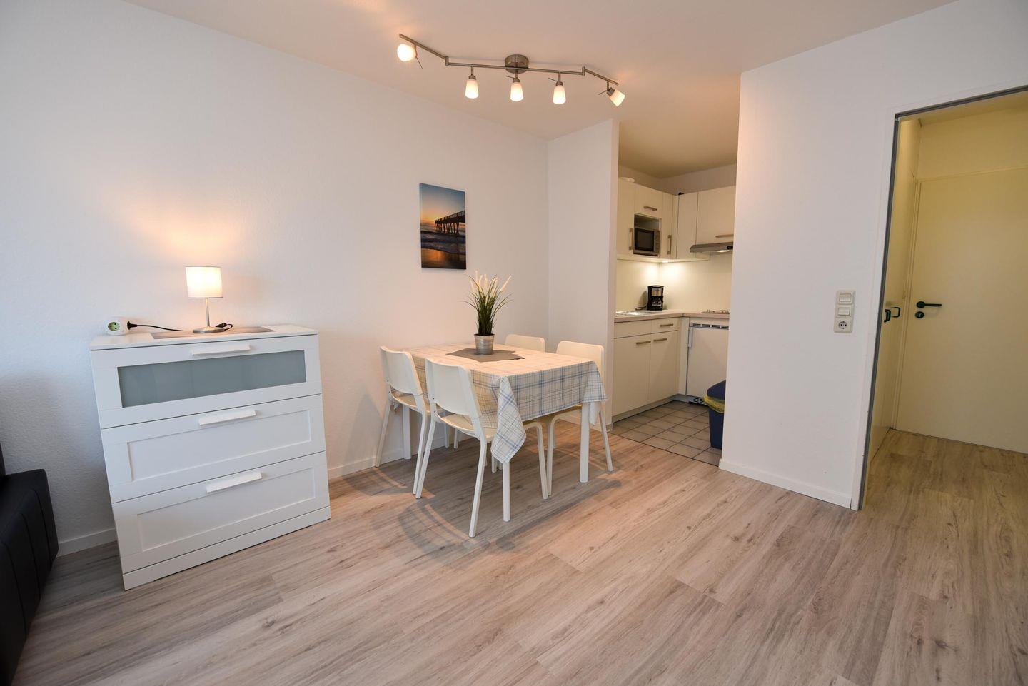 Willkommen in diesem gemütlichen 2-Raum-Appartement im 1. Obergeschoss. Dieses charmante Appartement liegt in unmittelbarer Nähe zum Strand und befindet sich an einer ruhigen, verkehrsberuhigten Straße.