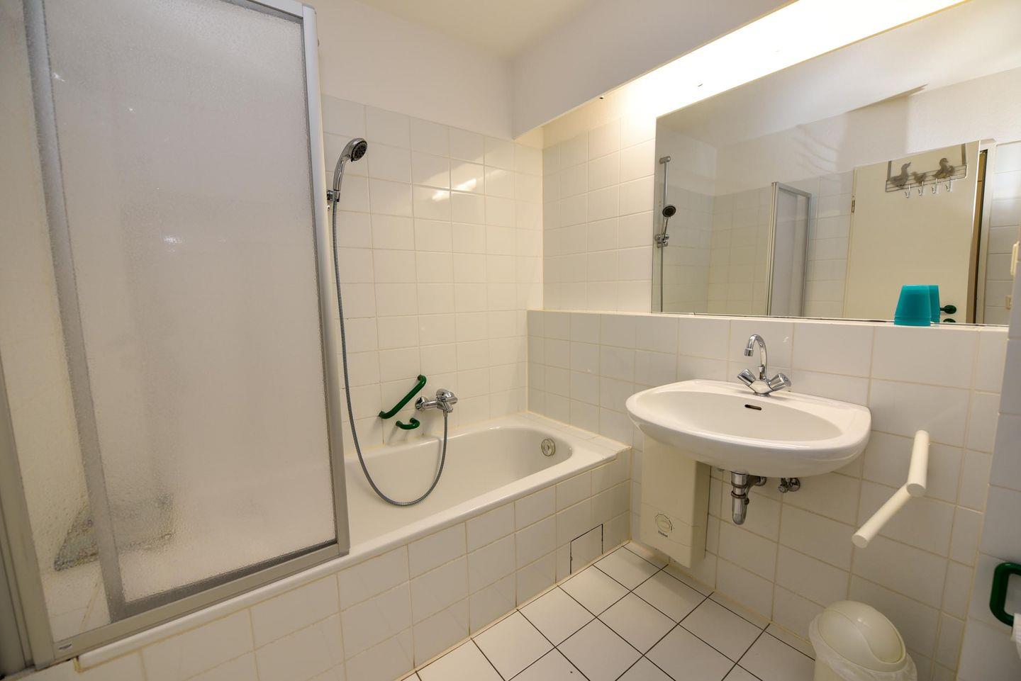 Das Badezimmer ist hell und funktional gestaltet