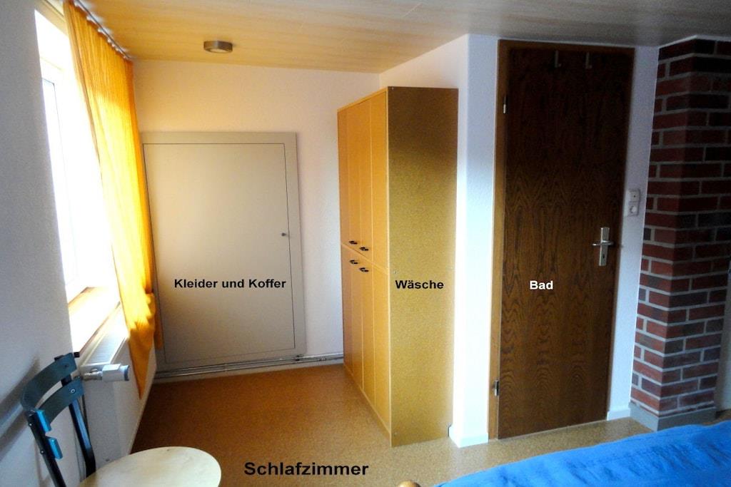 Die “AusZeit“ befindet sich im Dachgeschoss eines Hauses aus dem Jahr 1848. Die Ferienwohnung wurde 2015 komplett renoviert und den Bedürfnissen von zwei Feriengästen angepasst . Grundfläche ca. 37 m² + Balkon, Fußböden: Korkparkett, Küche und Bad: Fliesen, Balkon mit Morgensonne Die Wohnung ist ideal geeignet und ausgestattet für 2 Personen. Die Treppe vom OG ins DG stammt in der Struktur aus dem Jahr 1848, sie ist schmaler und steiler als heute übliche Treppen, daher ist die “AusZeit“ nicht geeignet für Menschen mit erheblicher Gehbehinderung. Altersbedingt betragen die lichten Türhöhen in der “AusZeit“ nur 1,86 m. Parkmöglichkeit direkt hinter dem Haus, von der Neuen Reihe aus. Frauke und Götz Borrmann wohnen im EG und OG.