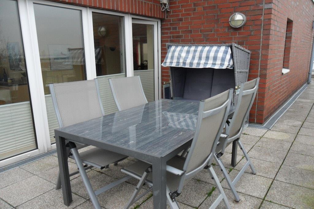 Charmante Ferienwohnung in Cuxhaven mit Terrasse und Sauna, ideal für erholsame Urlaubstage.
