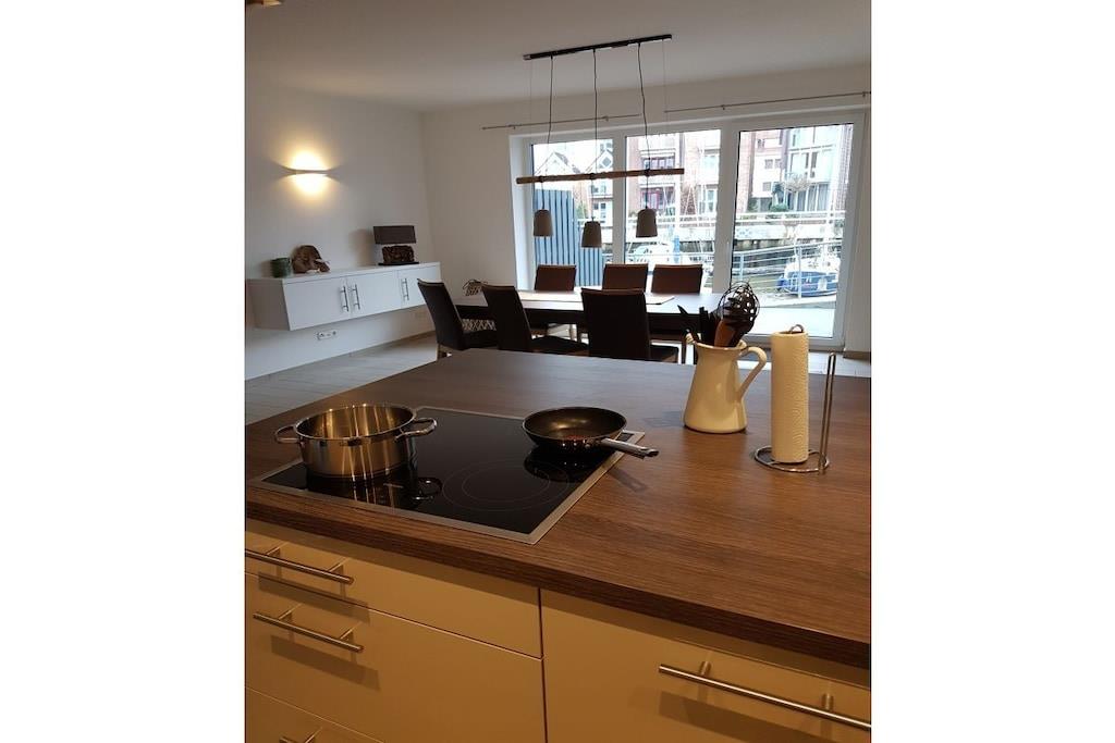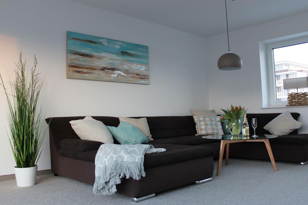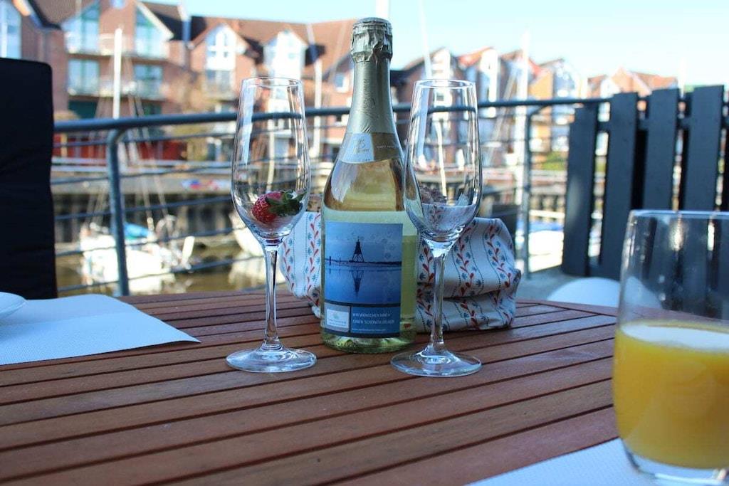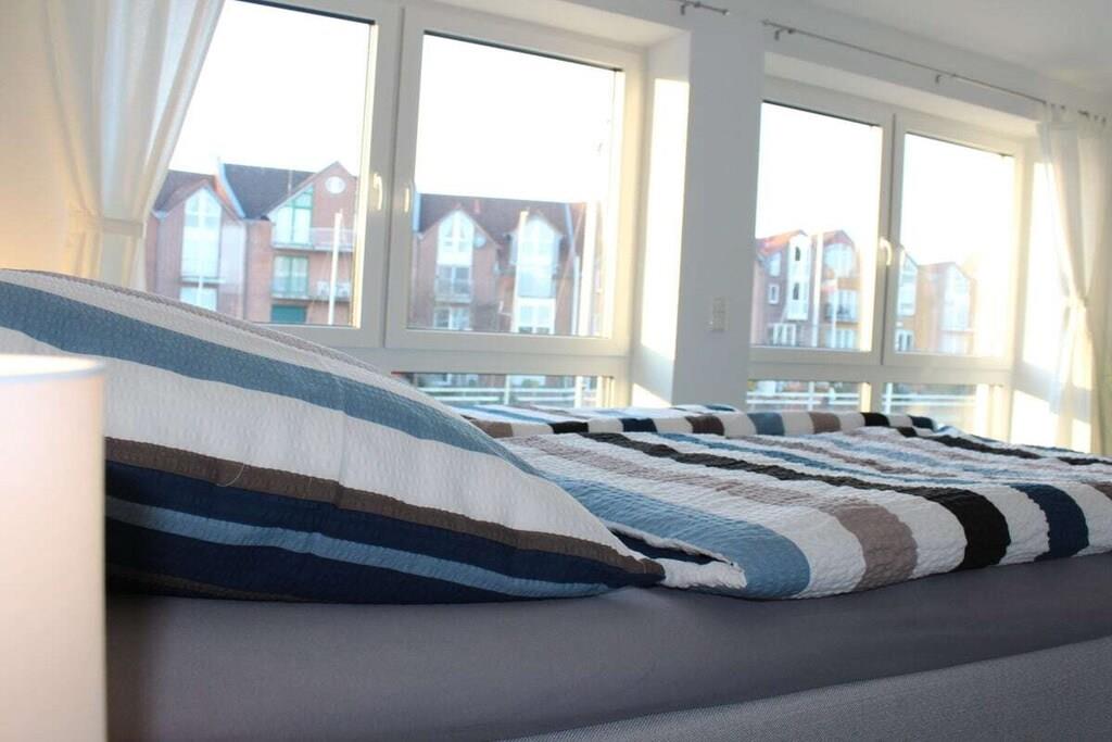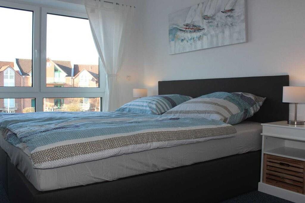 Zentral gelegene Ferienwohnung im Hafen von Cuxhaven. Die Ferienwohnung verfügt über 3 Etagen. Im Erdgeschoss befindet sich die geräumige Küche nebst Esstisch mit 6 Stühlen, eine große Terrasse mit Gartenmöbeln, ein Gäste WC und eine Garderobe. Im 1. OG befindet sich das Hauptschlafzimmer sowie ein großes Bad mit Dusche und Sauna sowie ein Balkon. Im 2. OG befinden sich 2 Schlafzimmer, ein großes Bad mit Dusche und Badewanne. Im 3. OG, das Highlight des Hauses, das Staffelgeschoss. Hier befindet sich das Wohnzimmer mit einer großen Couch, die zum Verweilen einlädt sowie ein großer Balkon mit Gartenmöbeln.