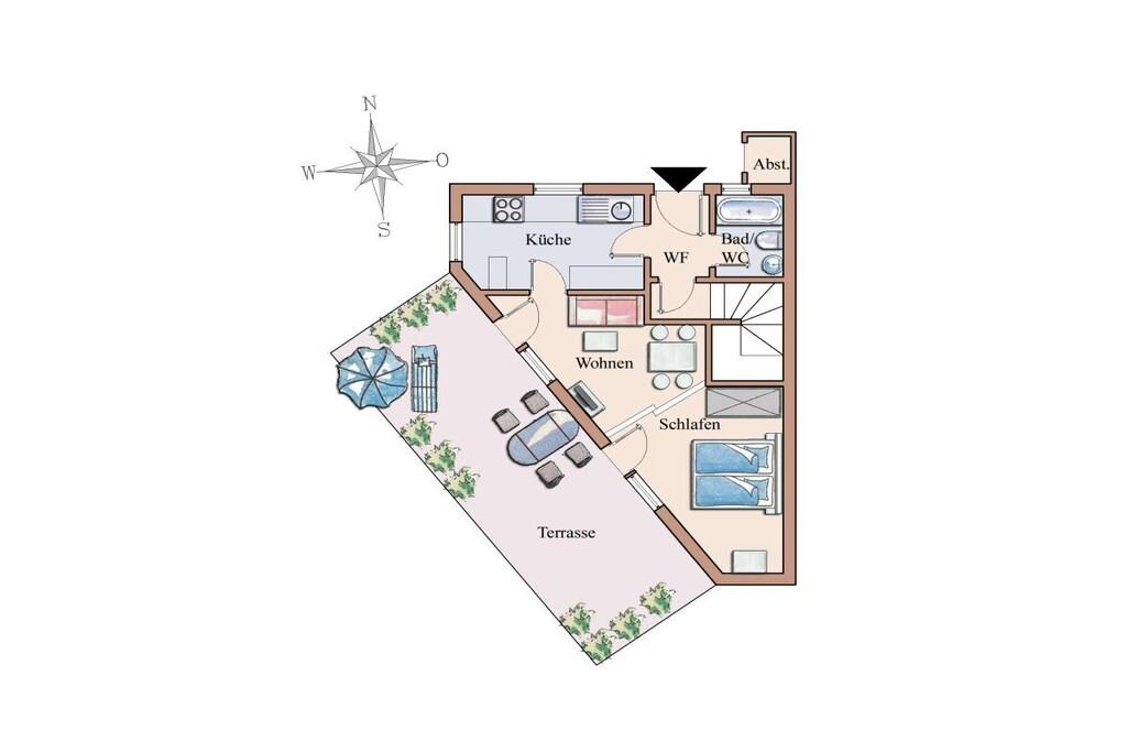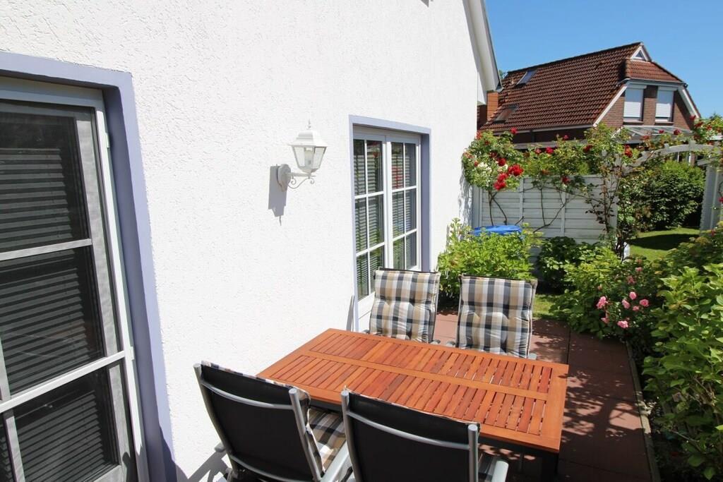 Unsere Erdgeschosswohnung (für 2 Personen) mit Terrasse liegt in einer ruhigen Nebenstraße ca. 300m vom Strand entfernt in einem Reihenendhaus mit insgesamt 2 Wohnungen und bietet Ihnen ca. 43m² Wohnfläche. Neu ab Saison 2025 incl. Strandkorb (saisonbedingt)