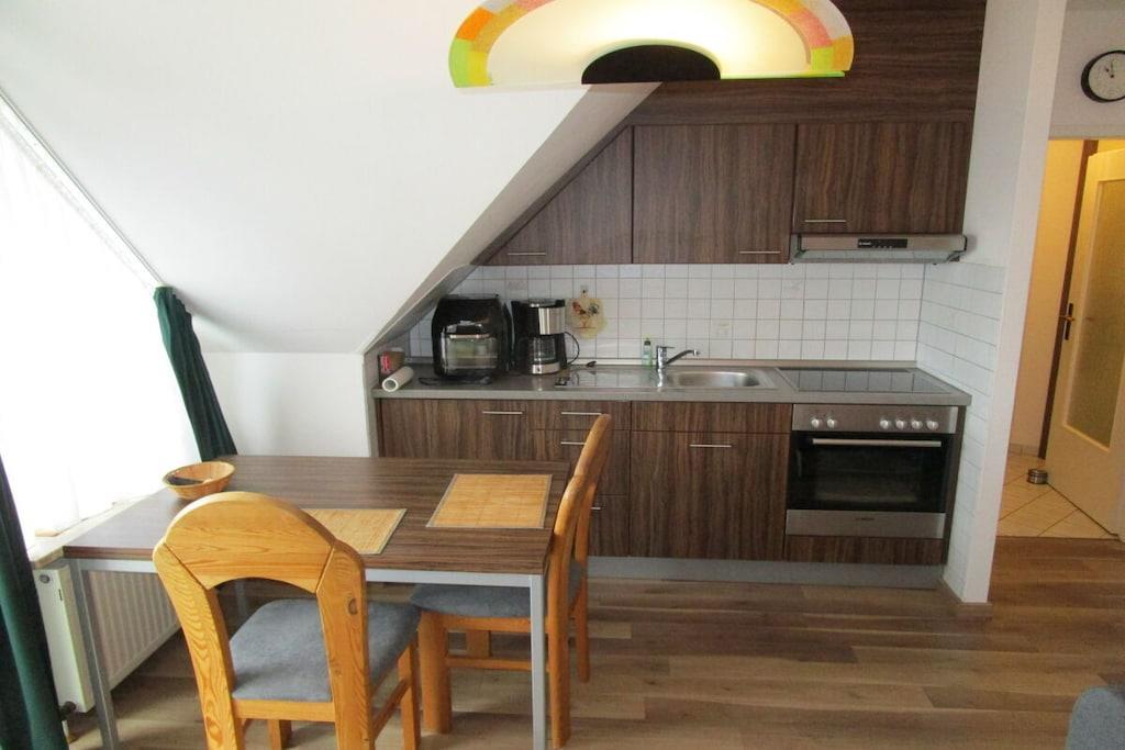Herzlich Willkommen in Cuxhaven Döse in der Ferienresidenz Kormoran. Die ca. 32 m² große Einraumwohnung befindet sich in der 3. Etage. Ein Fahrstuhl ist vorhanden und die Wohnung ist behindertengerecht. Wohn-Schlafraum mit einem exklusiven Bett, separater Essplatz, voll ausgestatteter Küchenbereich mit Mikrowelle, Backofen, Ceranfeld sowie einer großzügigen Garderobe mit Einbauschrank, SAT-Flachbild-TV, Sofa, Dusche/WC, Balkon, Telefon, Lift und Tiefgaragenstellplatz. In der modernden und gepflegten Residenz Kormoran befinden sich Schwimmbad mit Gegenstromanlage und Sauna, ein Dampfbad gegen Gebühr, ein Kinderspielplatz und ein Fahrradkeller. Außerdem stehen Münz-Waschmaschinen und -Trockner zur Verfügung. WLan und Telefonie, Sky stehen kostenlos zur Verfügung.