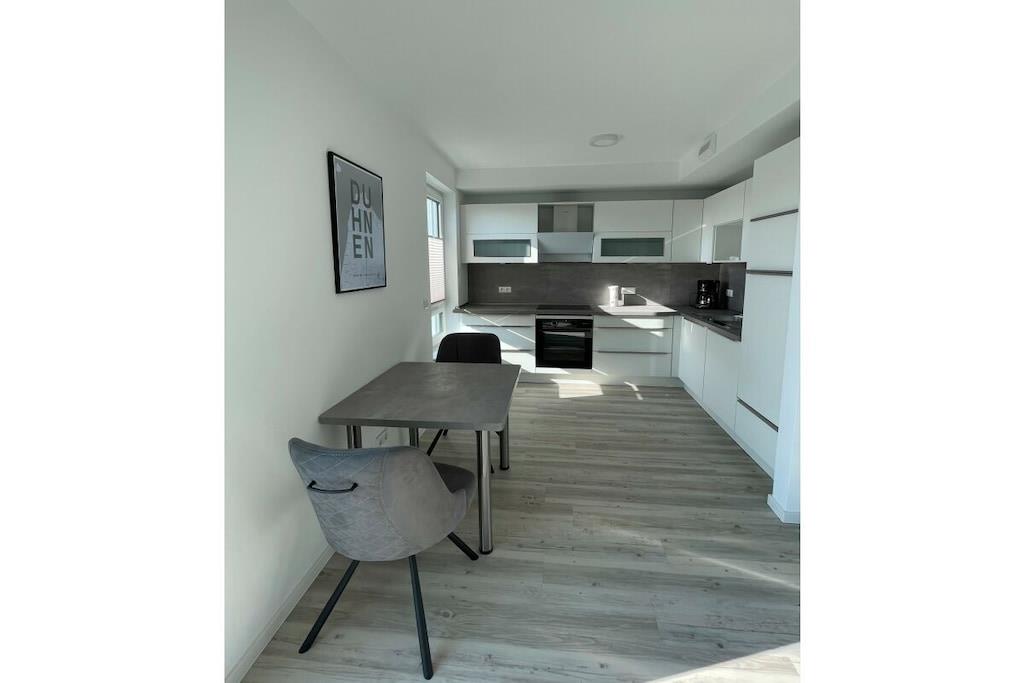 Gemütliche Ferienwohnung Sunshine 13 in Cuxhaven mit Balkon, moderner Küche und hochwertigem Boxspringbett.