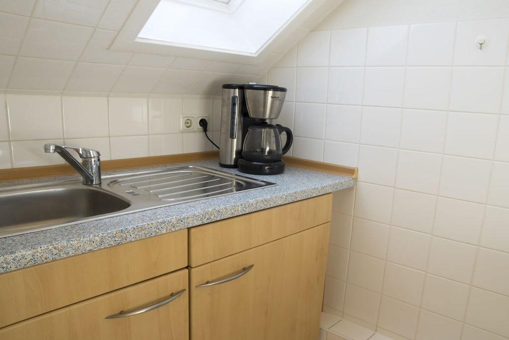 Apartment für 2 Personen auf 25 qm im 1. Obergeschoss Wohn und Schlafraum mit 2 Einzelbetten, Esstisch und Sitzgelegenheit. Die kleine Küche ist vom Wohnraum begehbar. Das Badezimmer ist mit einer Dusche und WC ausgestattet. Anreise zwischen 13:00 und 14:00 Uhr