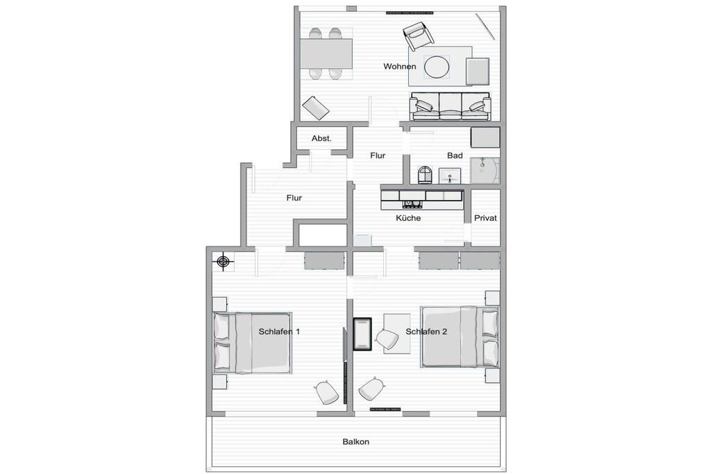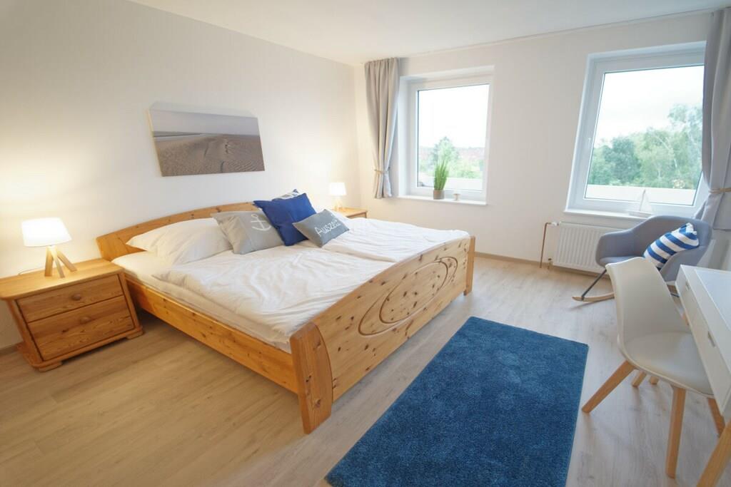 Moderne Ferienwohnung in Cuxhaven mit Meerblick, 2 Schlafzimmern und Balkon nur 200 m vom Strand entfernt.