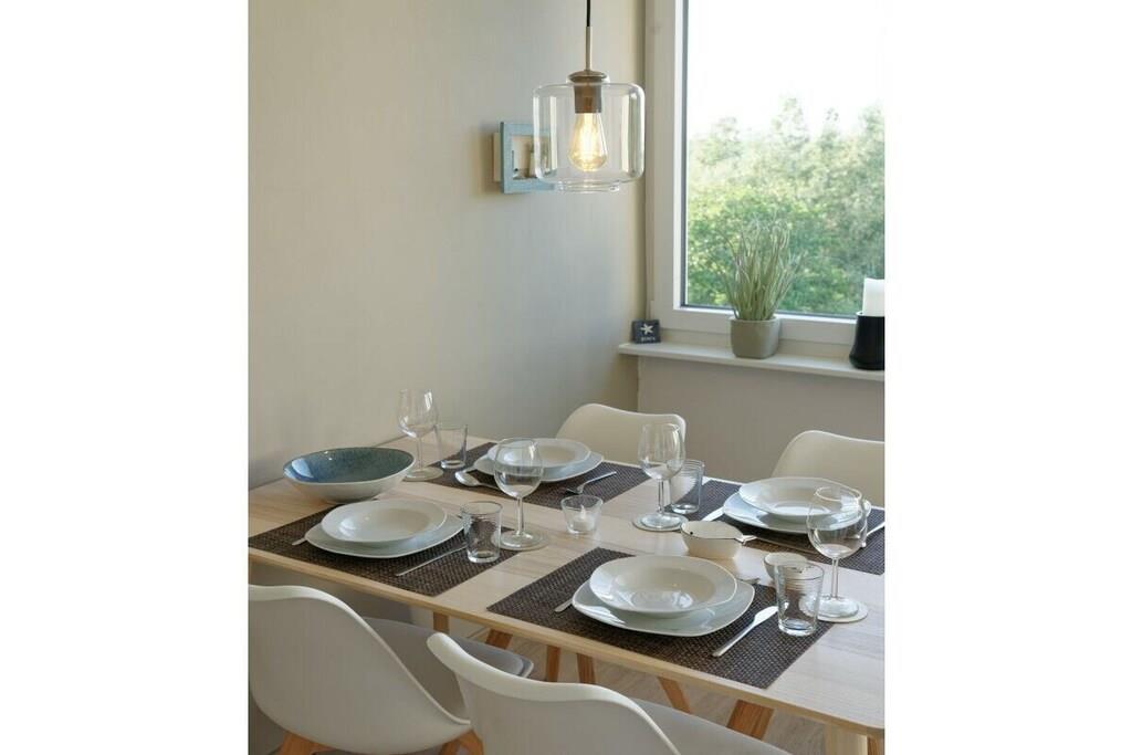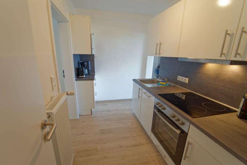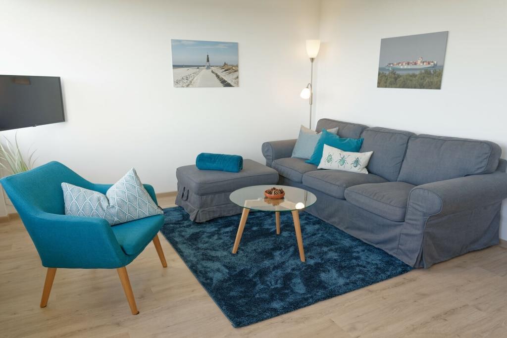 Genießen Sie einen erholsamen Urlaub in unserer liebevoll eingerichteten Wohnung mit außergewöhnlichem Blick aufs Meer. Unsere lichtdurchflutete Ferienwohnung (81m², 3. OG) im modernen Landhausstil liegt direkt hinter dem Deich (200m zum Strand) und bietet jede Menge Platz für 4 Personen und ein Baby/Kleinkind. Babybett und Kinderstuhl vorhanden. Die Wohnung hat zwei großzügige Schlafzimmer mit jeweils einem Doppelbett sowie ein Wohn- und Esszimmer mit Panoramablick auf die Nordsee und den Weltschifffahrtsweg. Das Badzimmer mit Dusche/ WC ist zusätzlich mit einer Waschmaschine ausgestattet. Die moderne und voll ausgestatte Küche bietet Ihnen jeglichen Komfort inkl. Cerankochfeld, Backofen, Mikrowelle, Spülmaschine sowie Kühlschrank mit Gefrierfach. Der sonnigen Südbalkon überzeugt mit einem tollen Blick ins Grüne. Kostenfreies WLAN. Zwei LG Smart TVs, mit Ihrem Netflix oder Amazon Account (etc.) können Sie Ihre Lieblingssendungen empfangen. Kostenloser PKW Stellplatz direkt vor dem Gebäude. Das Vermietungsbüro befindet sich direkt im Haus. Die Wohnung hat keinen Aufzug.