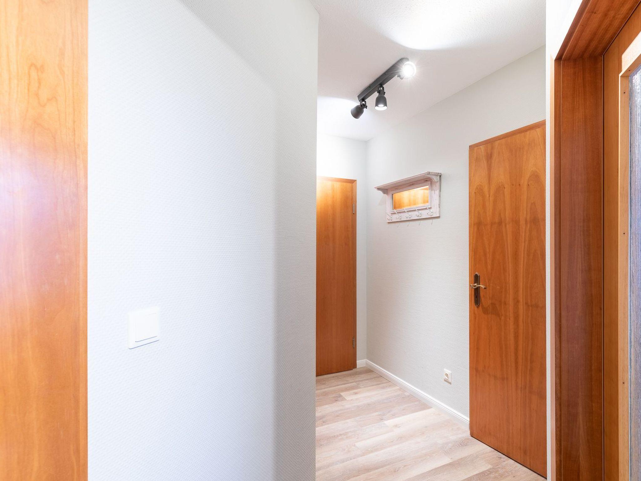 Die Ferienwohnung (im 2. Obergeschoss) mit einer Größe von ca. 60 m² Wohnfläche ist komplett für bis zu 5 Personen ausgestattet. 1 Wohnzimmer mit Essplatz, 1 Flachbildfernseher (Blue-ray-Player, DVD-Player, CD-Player), gemütlichem Sofa, Küchenzeile mit Geschirrspüler, Cerankochfeld, Backofen, Kühlschrank, Kaffeemaschine, Senseo Maschine, Toaster und Wasserkocher, Schlafzimmer 1 mit Doppelbett (180x200cm) und Kleiderschrank, Schlafzimmer 2 mit Doppelbett (160x200) und Kleiderschrank, Flur, Bad mit Dusche, WC, Bidet, Waschbecken und Spiegel, Tresor, Bügeleisen, Balkon mit Balkonmöbeln, Nichtraucherwohnung, keine Haustiere, PKW-Stellplatz am Haus.