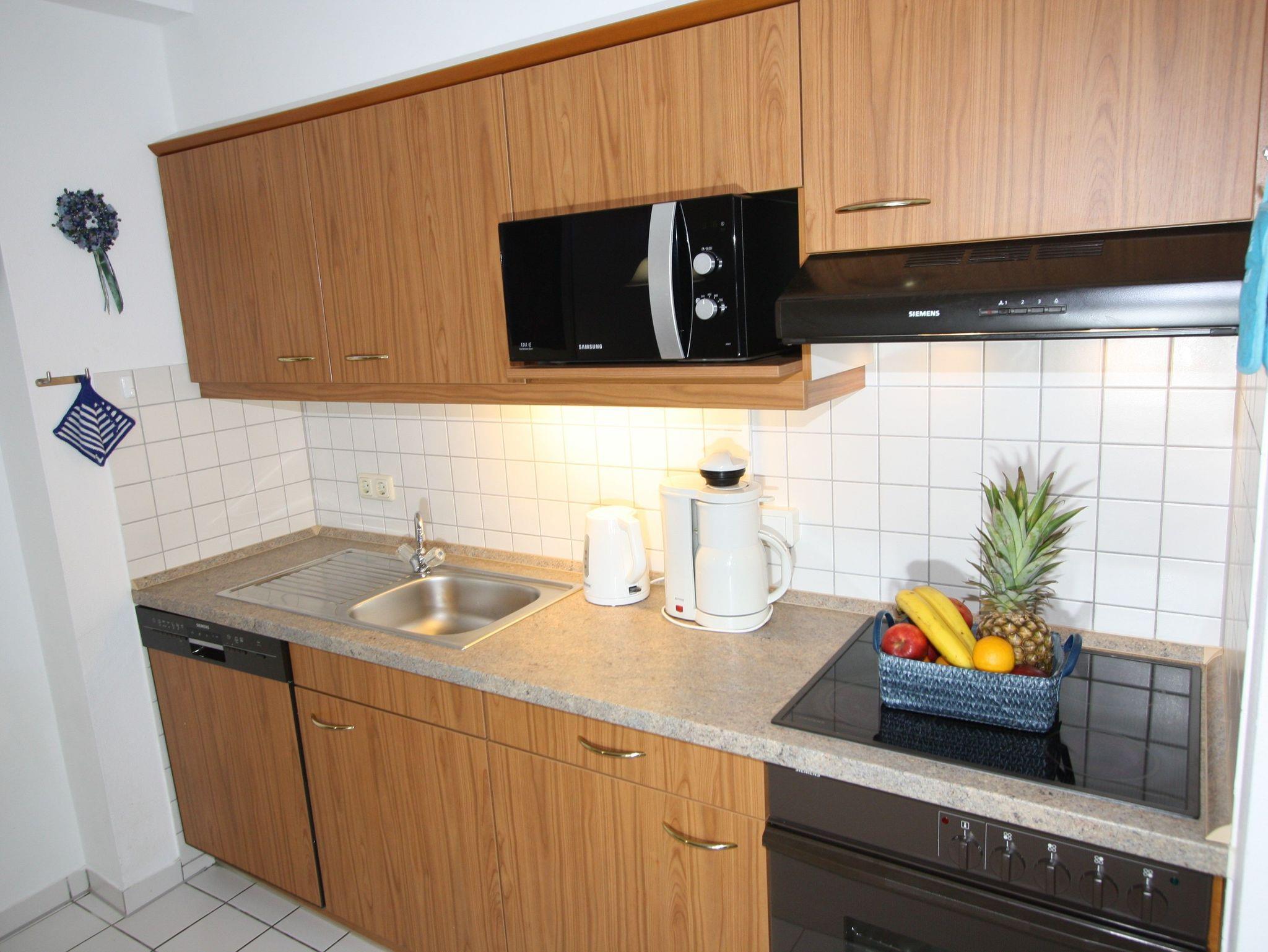 Sie wohnen in einem 2-Zimmer-Appartement für bis zu 4 Personen auf 48 m² im Dachgeschoss. Ein Schlafzimmer mit Doppelbett, Wohn-/Schlafraum mit bequemer Doppelbettcouch, separater Essplatz, voll ausgestatteter Küchenbereich mit Geschirrspüler, Dusche/WC, zwei Balkone, SAT-TV.