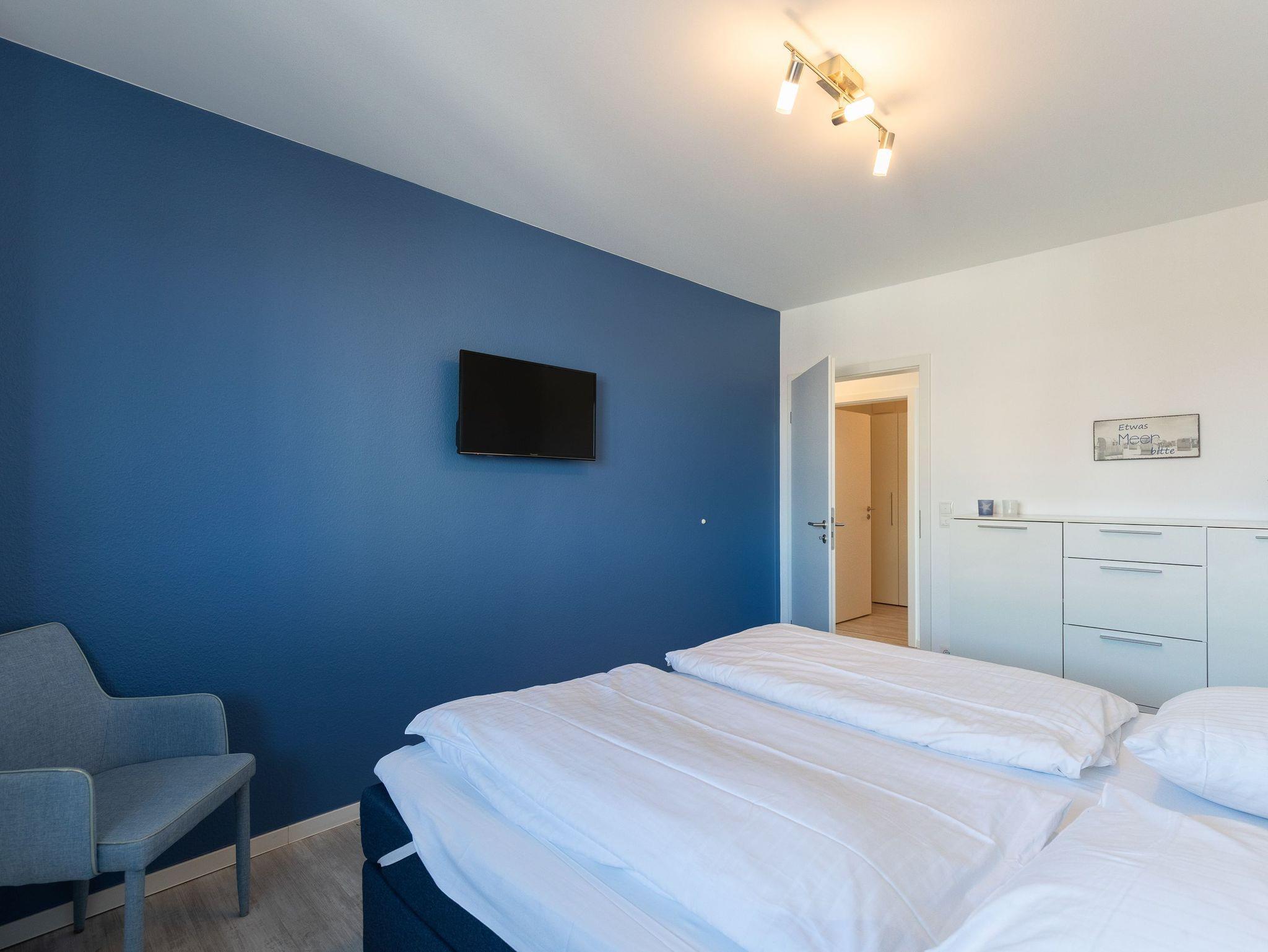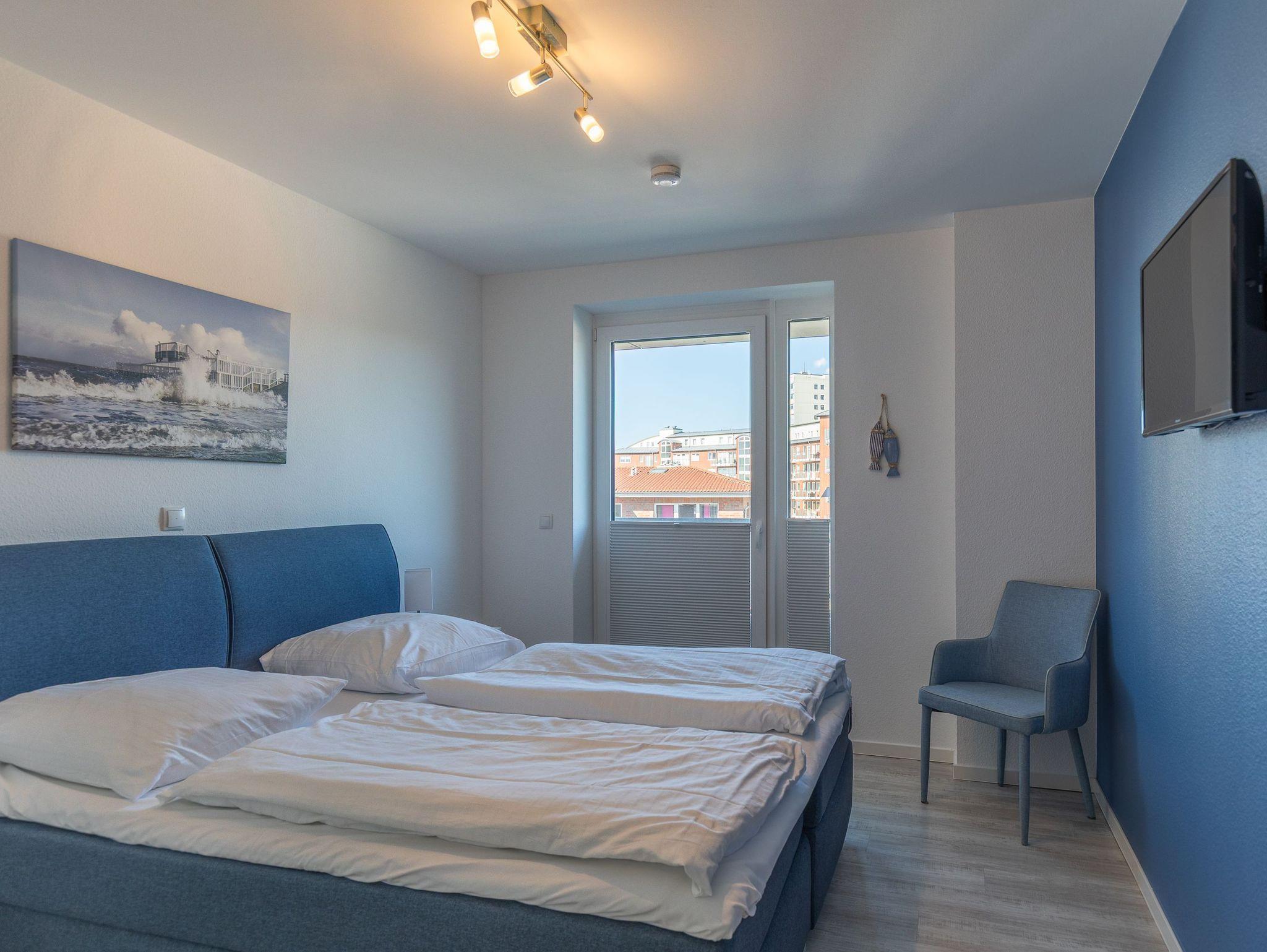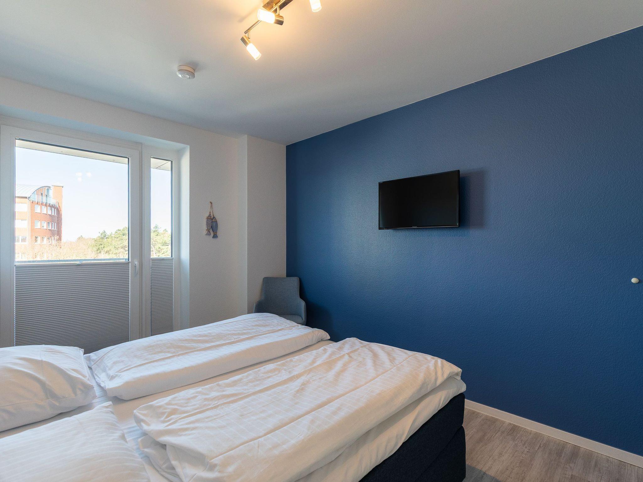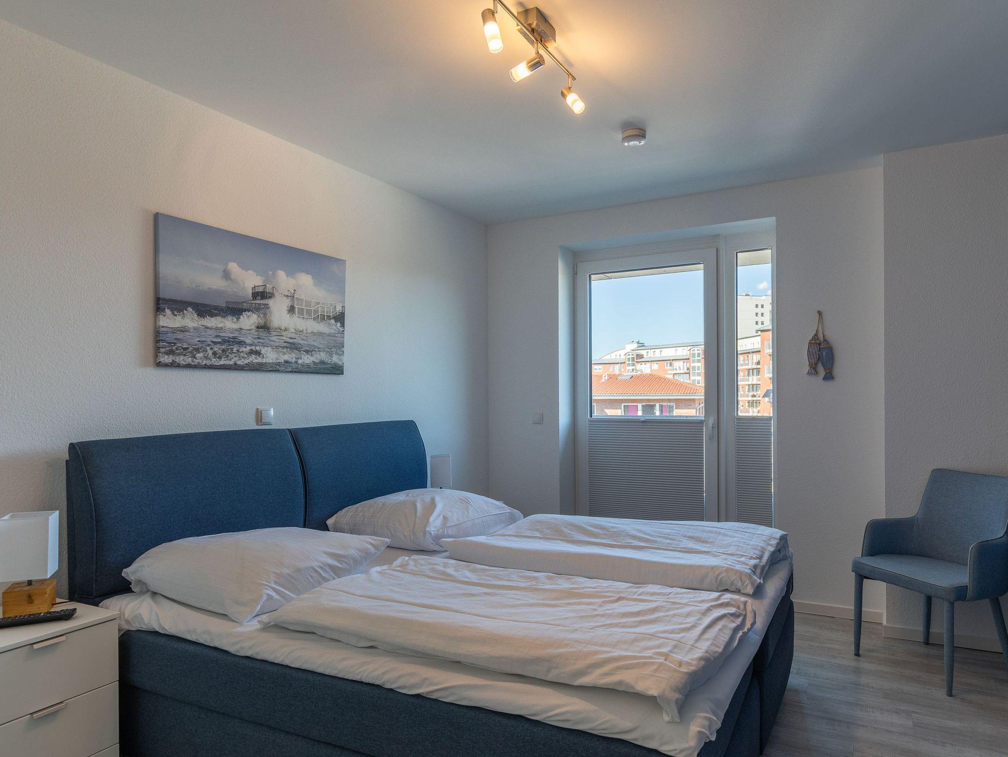 Moderne 3 Zimmer Penthouse Wohnung im 3. Obergeschoss für bis zu 4 Personen, 1 Schlafzimmer mit Doppelbett, TV und Zugang zur großen Dachterrasse, 1 Schlafzimmer mit 2 Einzelbetten, TV und direktem Zugang zur großen Dachterrasse, Wohnzimmer mit Blick Richtung Werner Wald und Nordsee (teil. Seesicht), Einbauküche (Backofen, Cerankochfeld, Mikrowelle, Kaffeemaschine, Wasserkocher, Toaster, Geschirrspüler), gemütlicher Sitzecke mit Ecksofa, Essplatz, TV und Zugang zur großen Dachterrasse, gegenüber der Schlafzimmer befindet sich ein begehbarer Kleiderschrank mit genug Stauraum für Ihr Gepäck im Urlaub, Bad mit 2 Waschbecken, Dusche, WC, Zugang zur gr0ßen Dachterrasse und eigener Sauna (kostenfrei), Gäste WC, Abstellraum mit Waschmaschine und Trockner (beides kostenfrei), große Dachterrasse mit Blick auf den Wernerwald und Teilseeblick auf die Nordsee, Fahrstuhl im Haus, reservierter PKW Stellplatz, Tiefgarage, Nichtraucherwohnung.