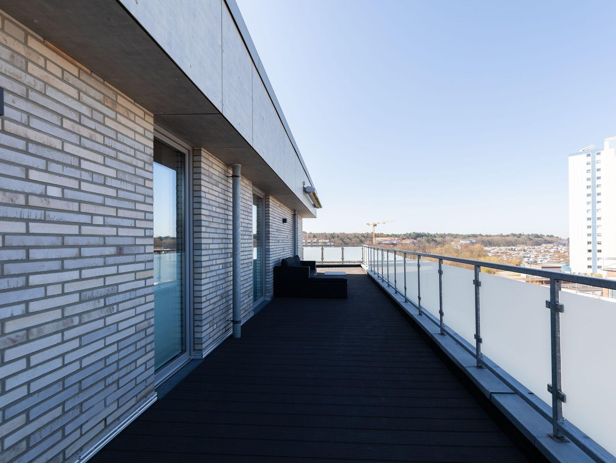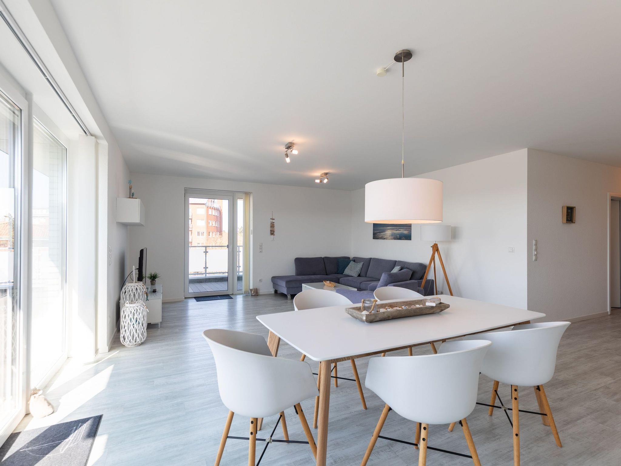Entdecken Sie die moderne Penthouse-Wohnung "Meerzeit" in Cuxhaven mit Sauna und Dachterrasse nahe dem Sahlenburger Sandstrand.
