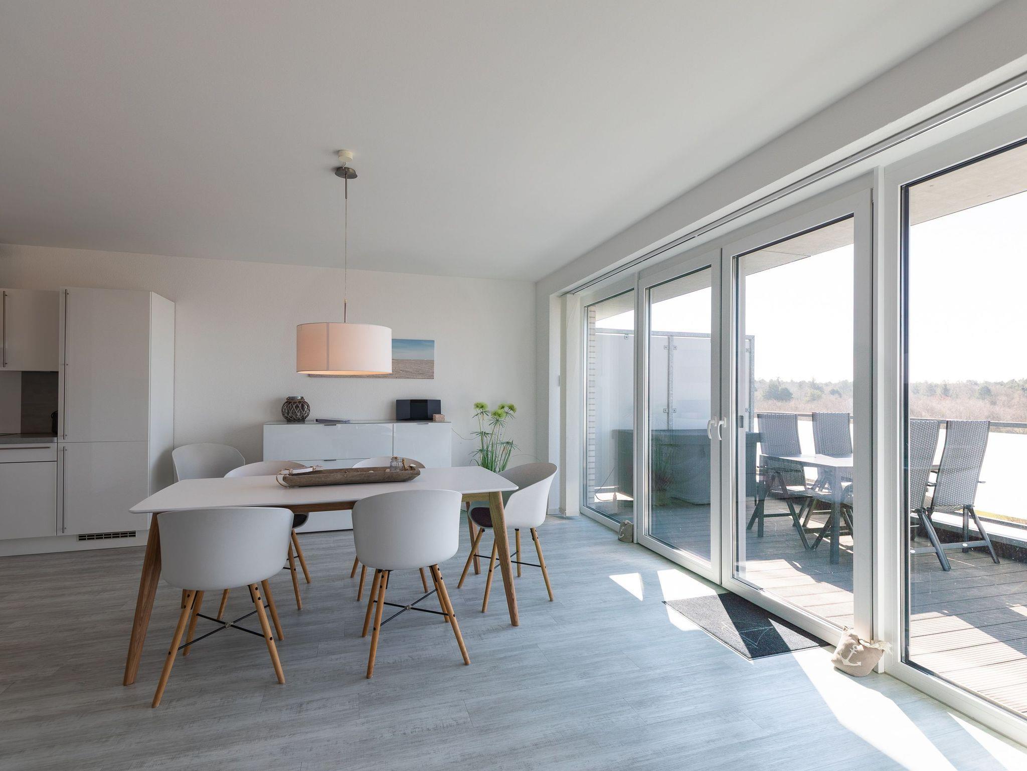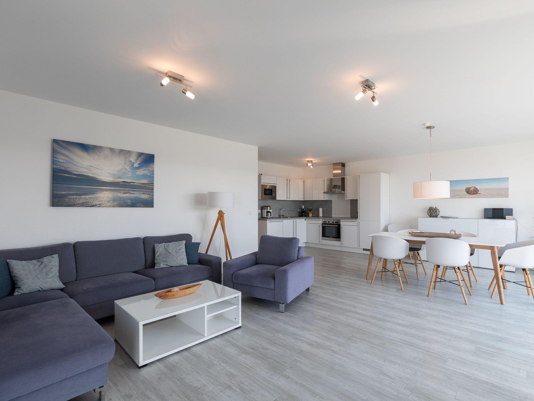 Penthouse Wohnung mit privater Sauna (kostenfrei) in der Wohnung, im großen Bad integriert, WLAN Zugang kostenfrei. Ein Kinderhochstuhl und ein Kinderreisebett stehen Ihnen in dieser Wohnung kostenlos zur Verfügung. Waschmaschine und Trockner können kostenfrei genutzt werden. Die Penthouse Wohnung eignet sich sowohl für Familien, Erholungssuchende als auch für Aktivurlauber! Genießen Sie die Leichtigkeit und Weitläufigkeit unserer Ferienhäuser und die Wohlfühlatmosphäre an der Nordsee.