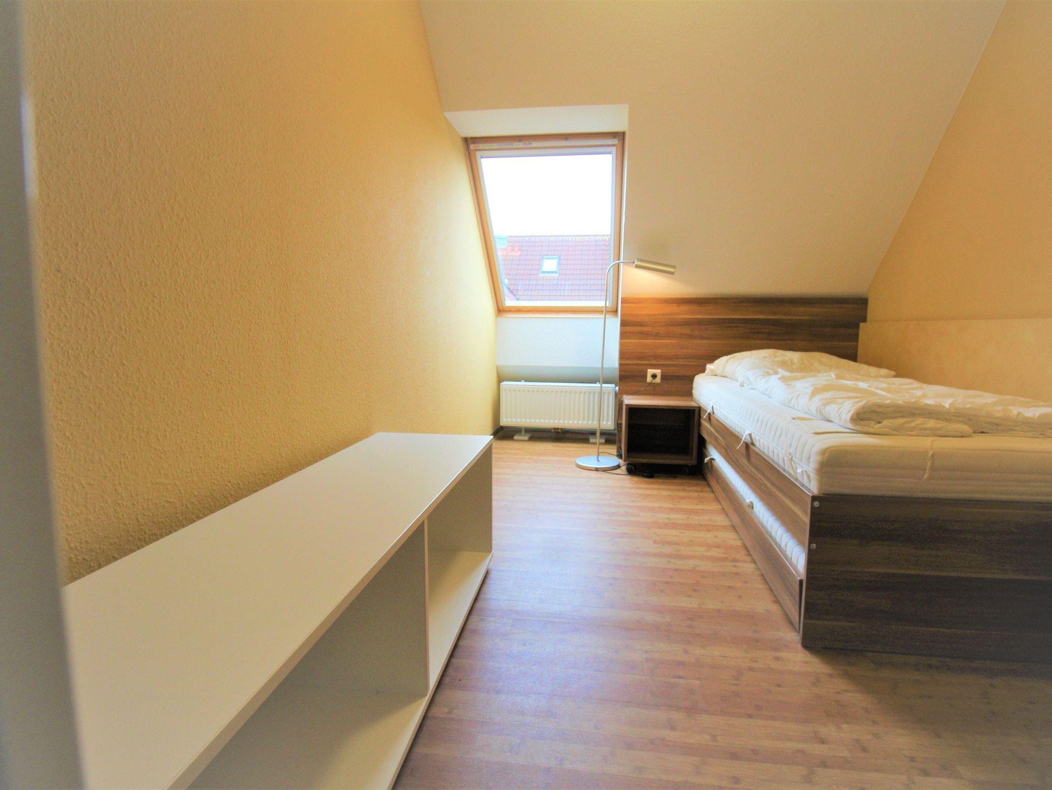 3-Zimmer-Maisonette bis 6 Personen, ca. 90 m², 1 Schlafzimmer mit Doppelbett, 1 Schlafzimmer mit getr. Bettten, großer heller Wohn-Schlafraum mit Doppelbettcouch, separater Essplatz, voll ausgestatteter Küchenbereich (siehe Seite 4) mit Geschirrspüler, Dusche/WC, Balkon, Abstellraum, SAT-TV, zusätzliches Bad