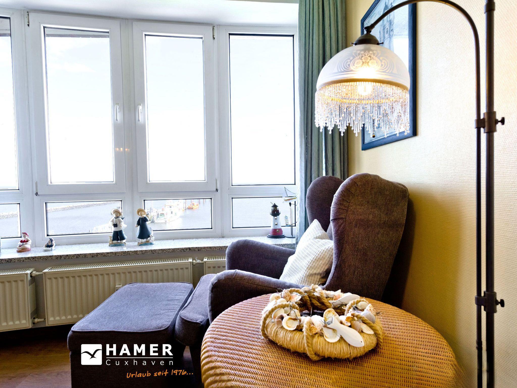 Charmante 2-Zimmer-Ferienwohnung in Cuxhaven mit Blick auf die Elbmündung und Balkon.
