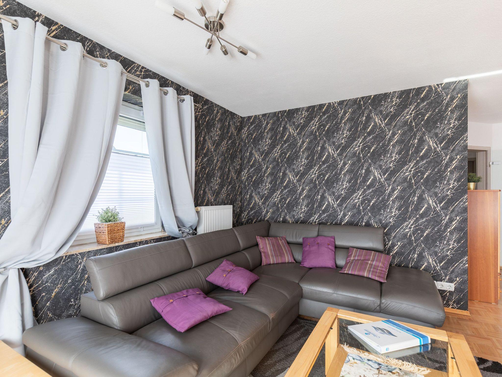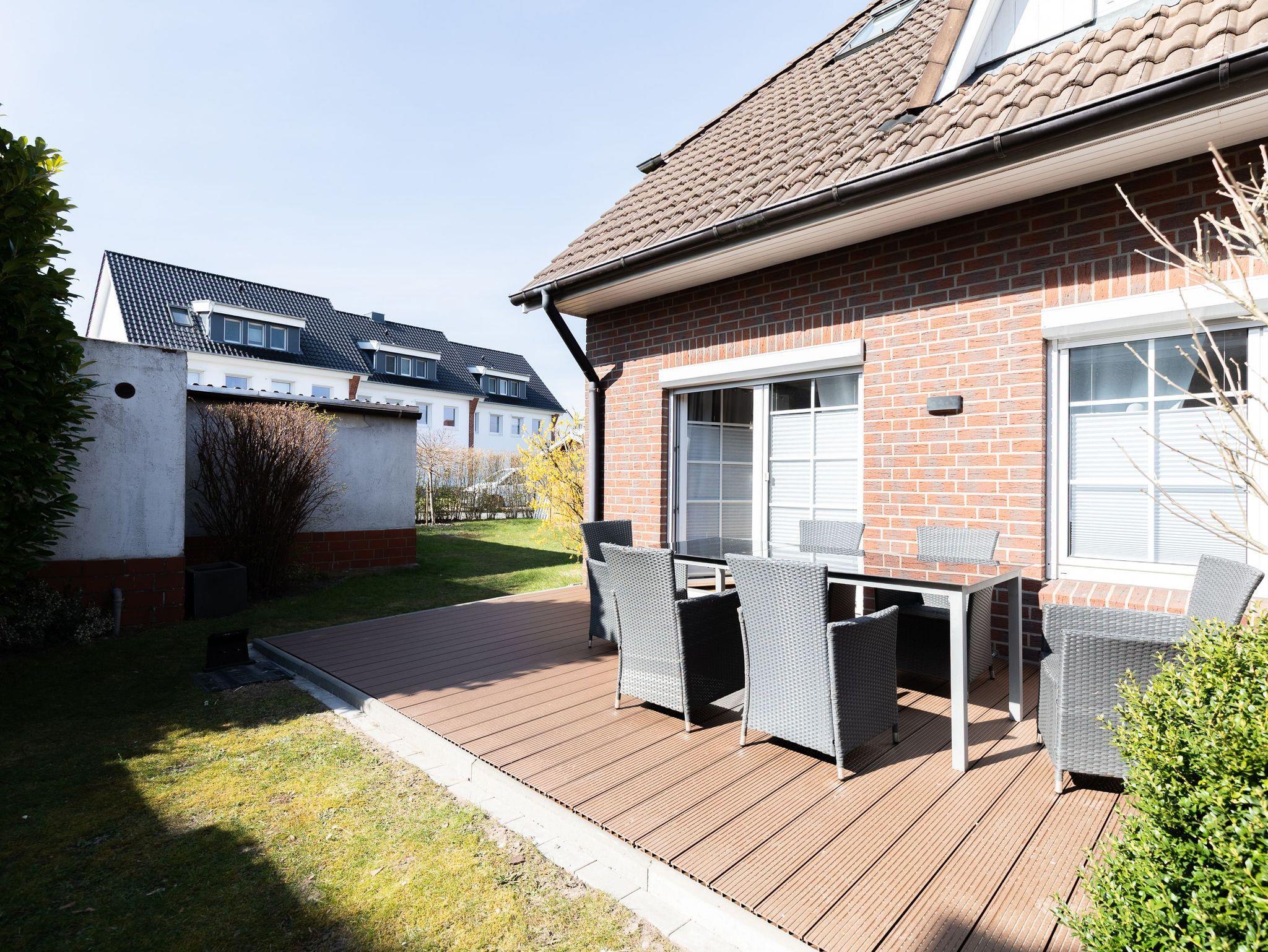 Das modern eingerichtete Ferienhaus mit einer Größe von ca. 140 m² Wohnfläche (300 m² Grundstück) ist komplett bis zu 6 Personen ausgestattet. 2 Schlafzimmer mit jeweils einem Doppelbett, TV und Kleiderschrank, 1 Schlafzimmer mit 2 Einzelbetten und Kleiderschrank, großes Wohnzimmer mit Sofaecke, direktem Zugang in den Garten/Terrasse, Esstisch, TV und elektrischen Aussenrollläden, komplett eingerichtete Einbauküche (Backofen, Cerankochfeld, Geschirrspüler, Toaster, Kaffeemaschine, Wasserkocher, Massimo Kaffeemaschine), Dusche mit WC und Eckbadewanne im Obergeschoss, Gäste WC im Erdgeschoss, Waschmaschine, Bügeleisen und Bügelbrett im Abstellraum,[nbsp][nbsp]Nichtraucherhaus, keine Haustiere, Garage direkt am Haus.