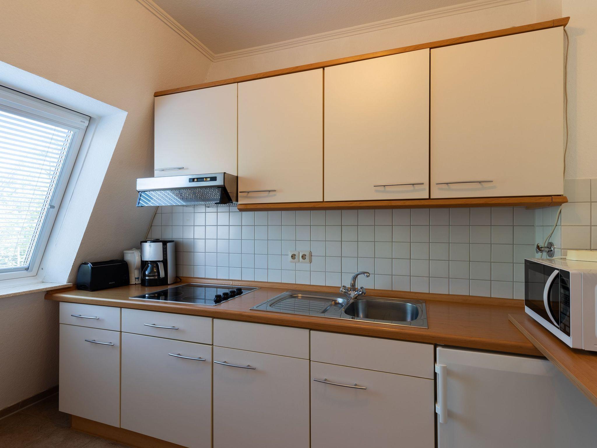 Die Ferienwohnung 26, im Haus Luv, in Cuxhaven Döse, bietet auf 61 m² Platz für bis zu 4 Personen. Sie befindet sich auf der 1. Etage und verfügt über ein großes Wohnzimmer mit Sofa, 2 Schrankbetten, Essplatz, Flachbild TV, über ein Schlafzimmer mit 2 Einzelbetten und Kleiderschrank und ein Badezimmer. Die Ausstattung der Küche umfasst unter anderem eine Mikrowelle, eine Kaffeemaschine, Toaster, Wasserkocher, Kühlschrank, ein Kochfeld und einen kleinen Esstisch. Vom Balkon aus kann man die frische Nordseeluft genießen. In der Anlage steht den Gästen außerdem ein Schwimmbad zur Verfügung. Für die Unterbringung des eigenen Fahrzeugs steht eine Garage bereit. WLAN-Anschluss ist vorhanden und die Wohnung ist komplett rauchfrei. Auch Familien sind herzlich willkommen. Für Fahrräder steht ein Fahrradabstellraum zur Verfügung. Durch die radfreundliche Umgebung können auch Aktivitäten per Rad unternommen werden. Der Strand ist ca. 300 m entfernt und zum Ortskern sind es ca. 600 m. Der Check-in kann eigenständig durchgeführt werden.