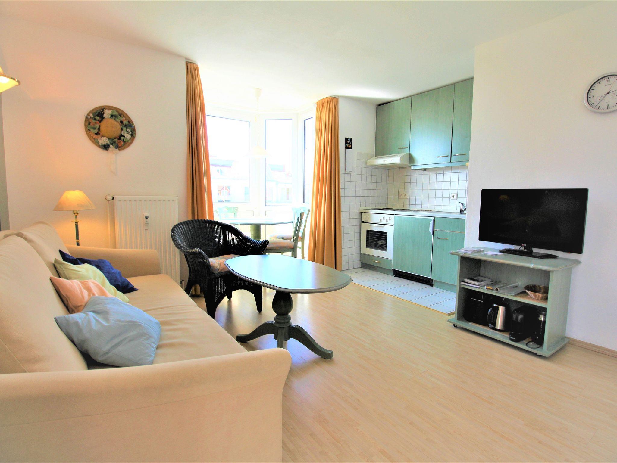 Sie werden sich wohlfühlen in unserer sonnendurchfluteten Wohnung für bis zu 4 Personen im 2. Stock (Aufzug) im ruhigen hinteren Teil der kleinen Ferienanlage mit Charme. Beginnen Sie den Tag bei einem Frühstück auf unserem schönen Südbalkon oder am Esstisch im verglasten Erker mit Blick auf das Meer und den Deich. Im Wohnzimmer entspannen Sie auf einer modernen Couch, die in ein bequemes Doppelbett verwandelt werden kann. Die Küche ist bestens ausgestattet mit Kühl-Gefrierkombination, Elektroherd mit vier Platten und Backofen, Nespresso-Maschine mit Milchaufschäumer, Filterkaffeemaschine, Toaster und Wasserkocher. Das Schlafzimmer für zwei Personen verfügt über einen weiteren Balkon mit Meerblick und viel Sonne ab Nachmittag. Des Weiteren finden Sie im Wohnbereich einen SAT-Flachbild-TV, einen 3D-Blu-ray-Player und selbstverständlich einen schnellen und kostenlosen WLAN-Zugang.