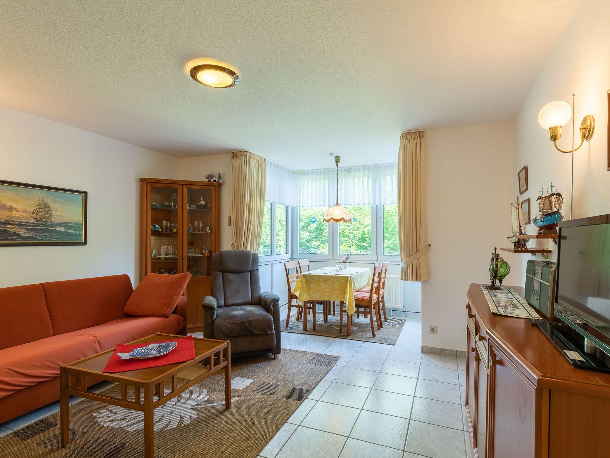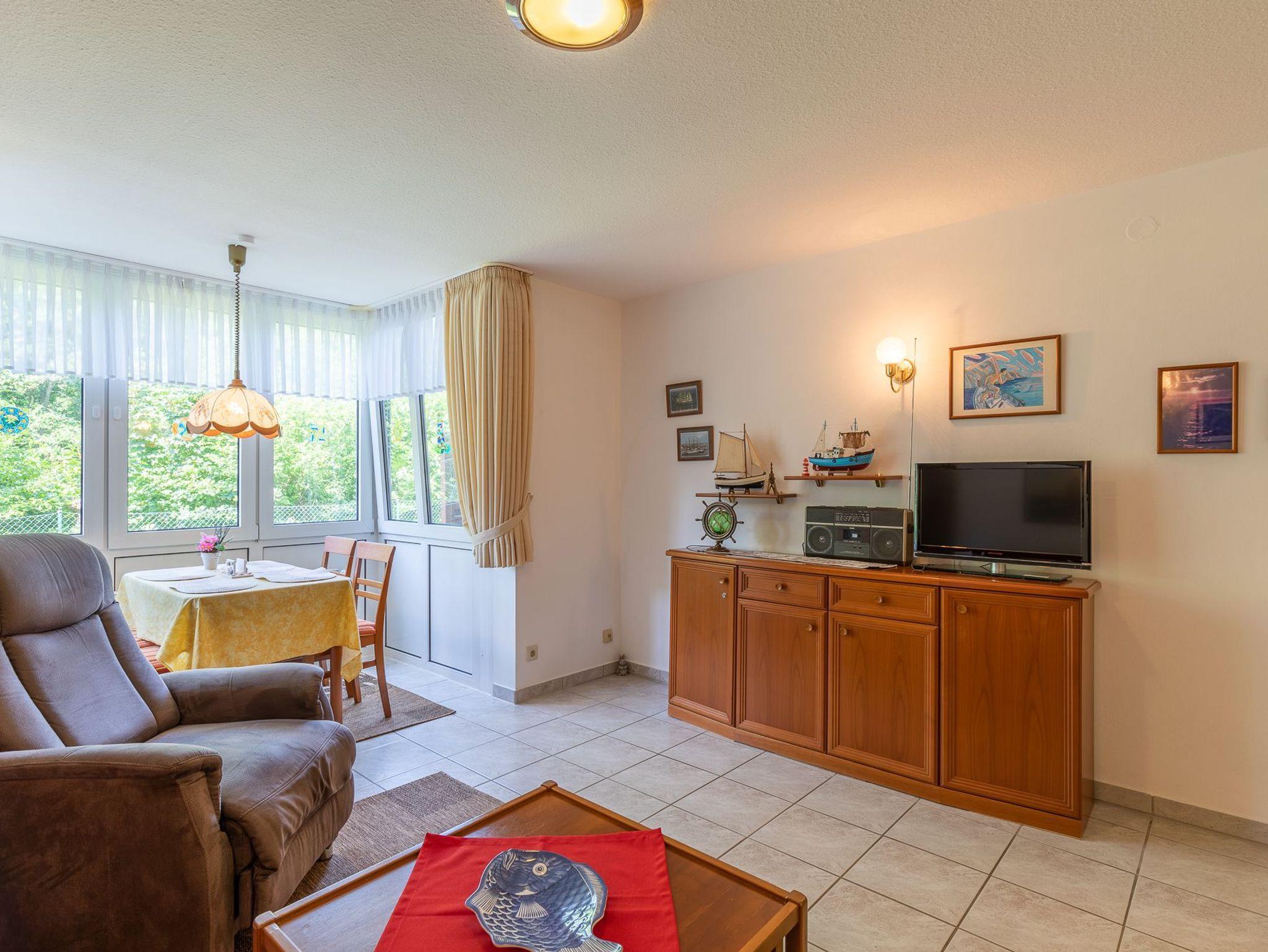 Die Wohnung 8 ist eine Ferienwohnung mit einer Größe von ca. 50 m² Wohnfläche und komplett bis zu 2 Personen ausgestattet. Das Wohnzimmer verfügt über eine Küchenzeile (Mikrowelle, 2 Plattenherd, Kühlschrank), eine gemütliche Sitzecke mit Sofa und Sessel. Der Essplatz bietet Platz für bis zu 4 Personen, mit Blick in das Grüne, das Schlafzimmer verfügt über ein Doppelbett, einen Kleiderschrank und den Zugang zur Terrasse, das innenliegende Bad ist mit einer Dusche, einem WC und Waschbecken ausgestattet, Nichtraucherhaus, keine Haustiere, kostenloser PKW-Stellplatz direkt am Haus in der Tiefgarage.