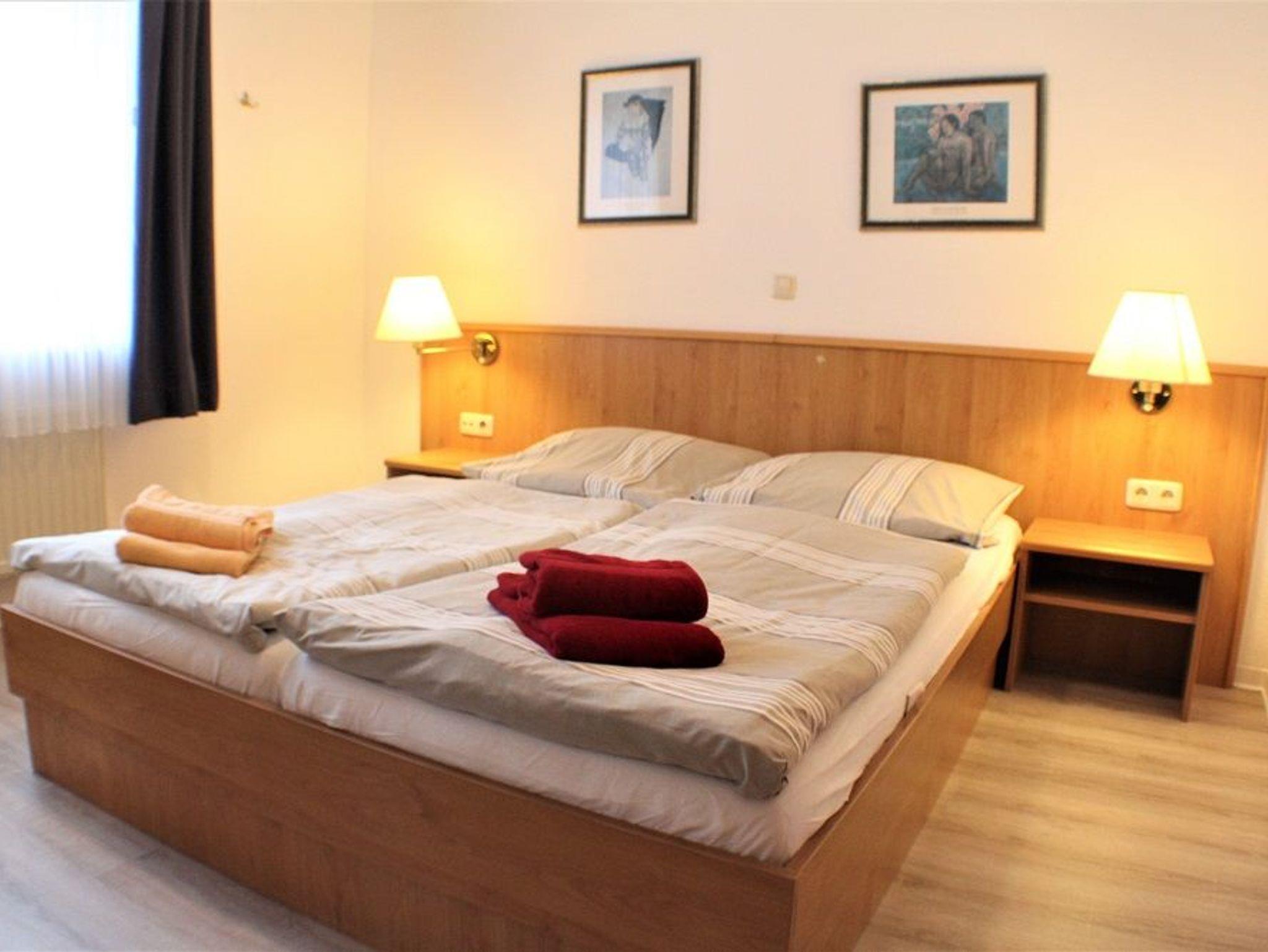 2-Zimmer-Appartement für bis zu 4 Personen auf ca.45 m². Schlafzimmer mit Doppelbett, Wohn-/Schlafraum mit Doppelbettcouch, TV, separatem Essplatz, voll ausgestattetem Küchenbereich, Terrasse oder Balkon, Bad mit Dusche/WC. teilweise WLAN und PKW-Stellplatz vorhanden.
