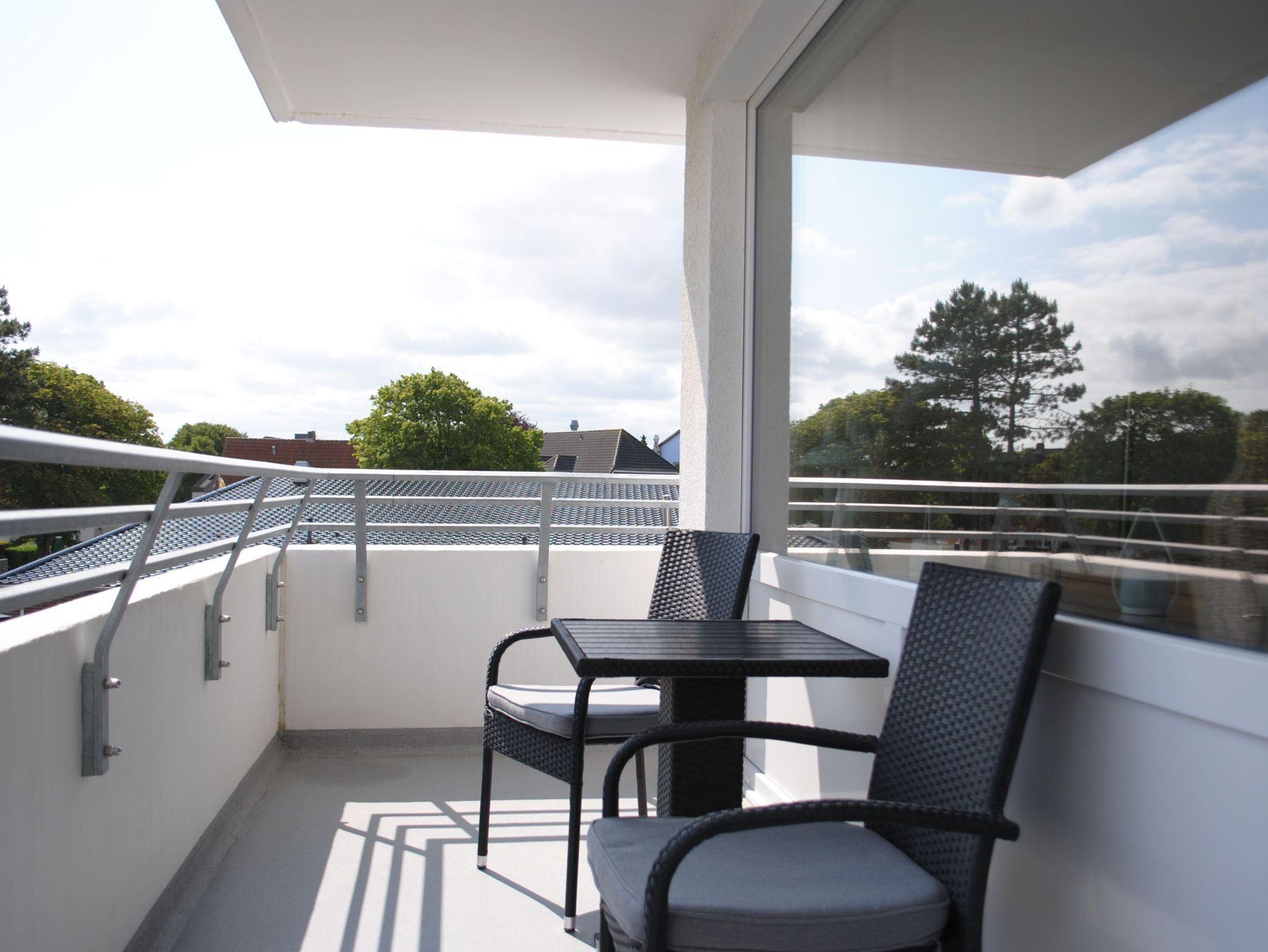 Das Apartment 212 ist ein 2-Raum-Apartment im 2. Obergeschoss für bis zu 4 Personen mit 50 qm. Der Ostbalkon mit Meerblick bietet Ihnen vormittags Sonne und nachmittags Schatten.