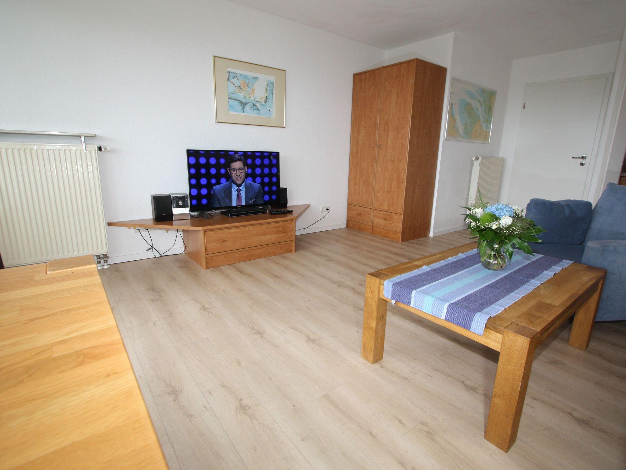 Sie wohnen in einem 2-Zimmer-Appartement für bis zu 4 Personen auf 55 m² Wohnfläche im Erd- und Souterraingeschoss. Die Ferienwohnung verfügt im Erdgeschoss über einen Wohn-Schlafraum mit bequemer Doppelbettcouch, Dusche/WC, separate voll ausgestattete Küche ohne Backofen aber mit moderner Mikrowelle, separater Essplatz, Flachbildschirm, SAT-TV, Mini-HiFi-Anlage, großer Balkon (Westseite mit Abendsonne).