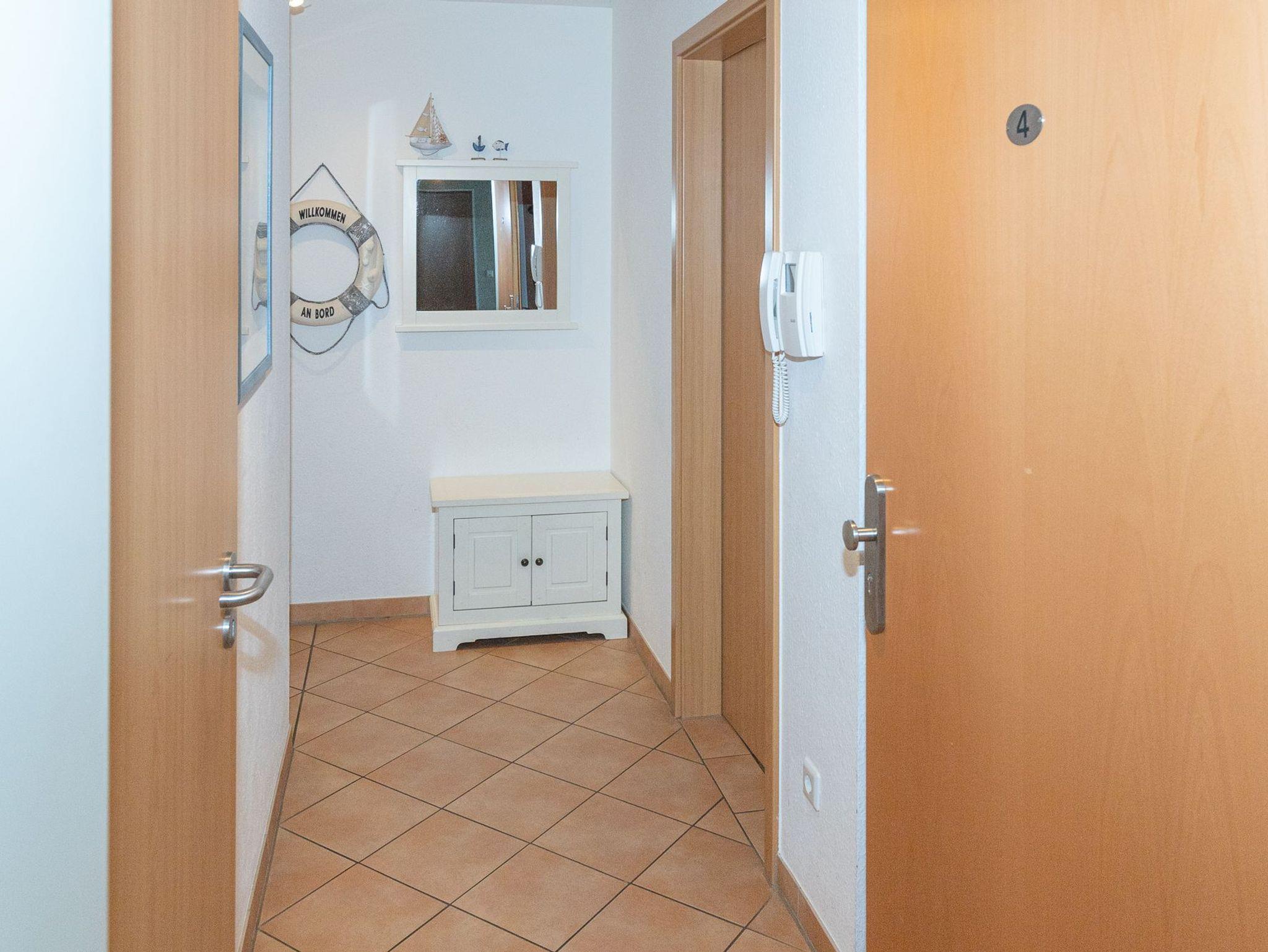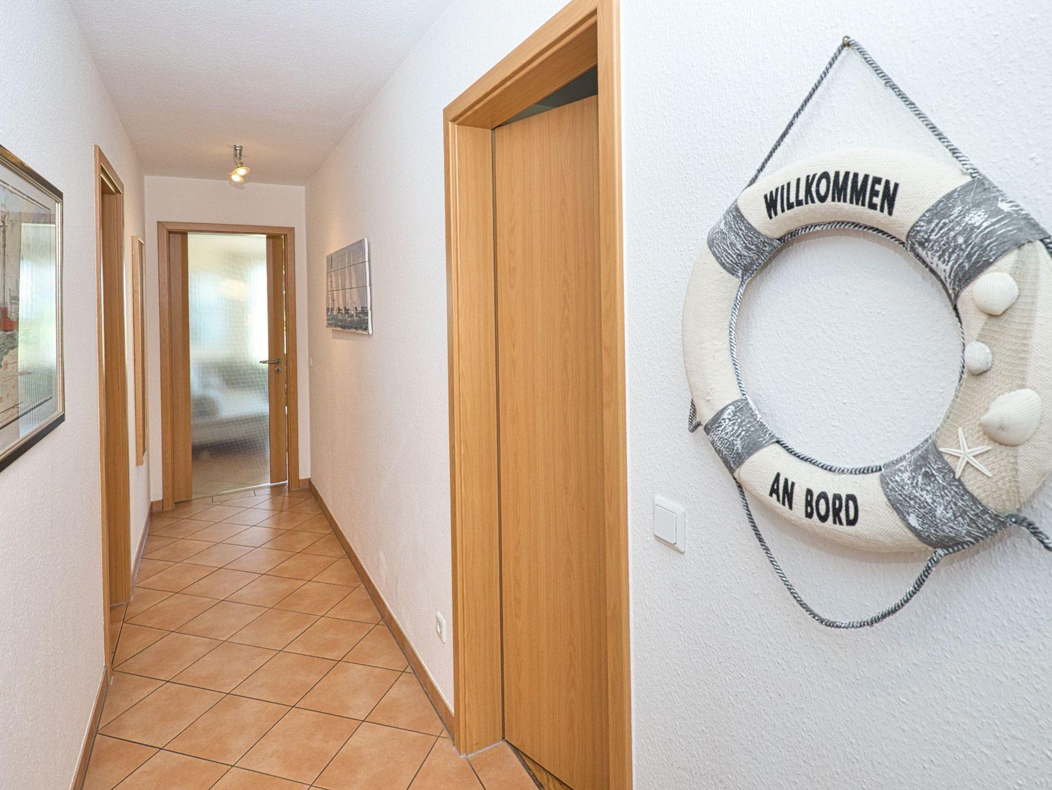 Vom Eingangsbereich, der mit Garderobe und einer Sitzmöglichkeit ausgestattet ist, gelangen Sie in die beiden gemütlichen Schlafzimmer ? eines mit einem Boxspring-Doppelbett und das andere mit zwei Boxspring-Einzelbetten. Beide Schlafzimmer haben Zugang zu einem Balkon mit Seesicht, der sich wunderbar für entspannte Momente eignet. Die Wohnung verfügt über zwei moderne Bäder, eines mit Dusche und WC und das andere mit Badewanne und WC, sodass Komfort und Privatsphäre für alle Gäste gewährleistet sind.