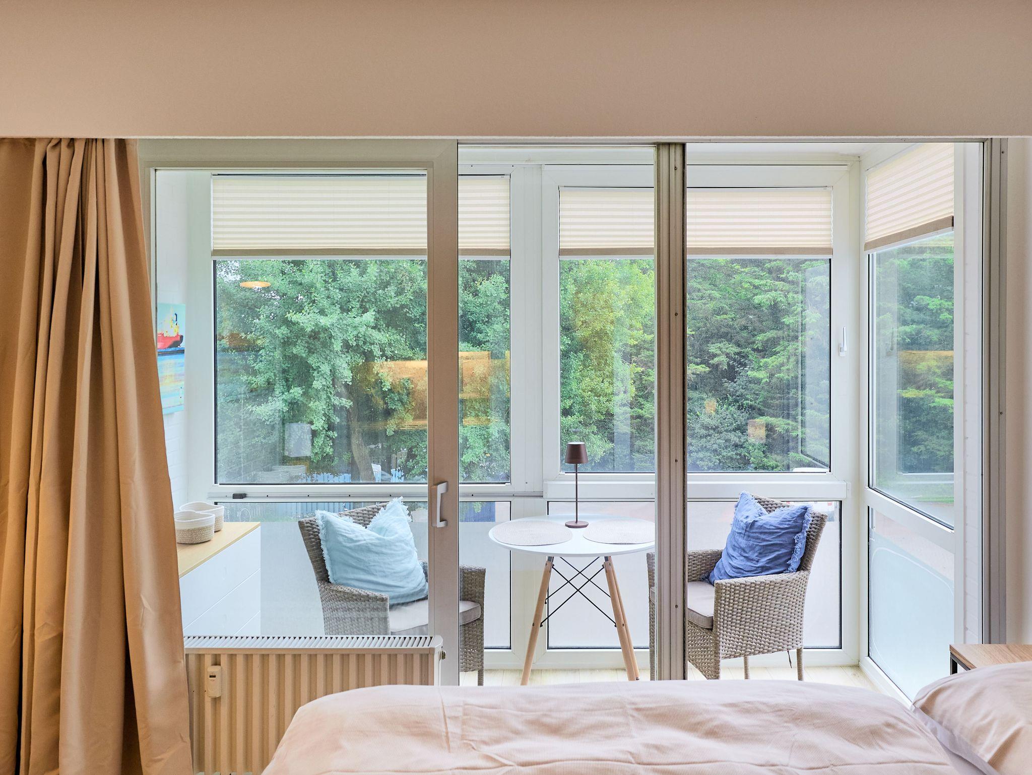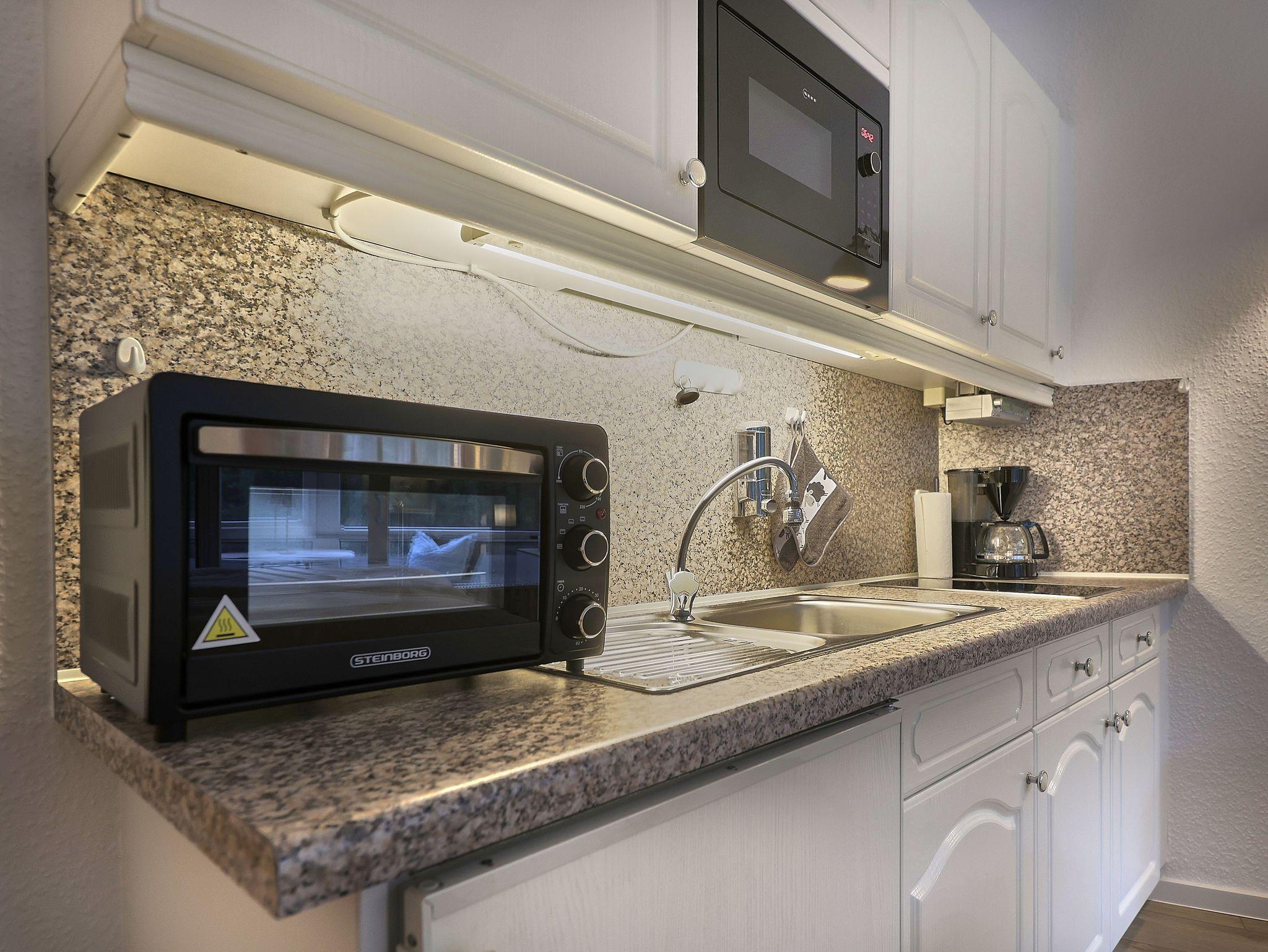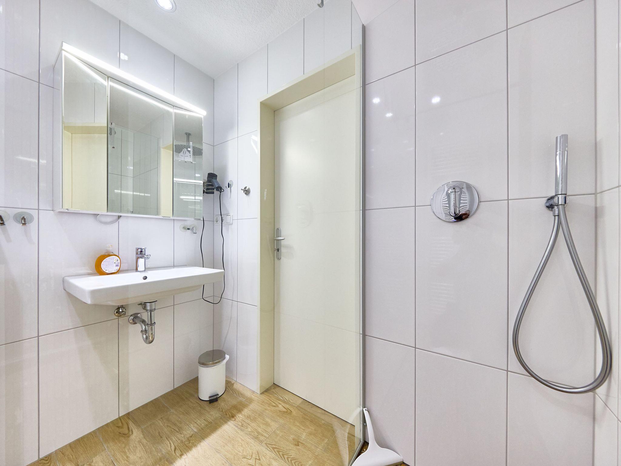 Das Appartement - im Juni 2024 neu renoviert mit Vinyl Design Boden - besticht durch seinen modernen Badbereich, der mit einer Dusche und einem WC ausgestattet ist. Vom kleinen Eingangsflur, in dem sich ein Einbaukleiderschrank mit Garderobe befindet, gelangen Sie direkt in die weiteren Räume. Die Küchenzeile ist mit allem ausgestattet, was Sie für einen angenehmen Aufenthalt benötigen: ein Kühlschrank, eine Mikrowelle und zusätzlich zur Kaffeemaschine eine Kaffee Kapsel Maschine sorgen für Komfort und Genuss. Der gemütliche Sitzbereich (Balkonloggia) direkt am Fenster lädt zum morgendlichen Frühstück, zum Spielen oder einfach zum Entspannen bei einer Tasse Kaffee ein, während Sie den Blick ins Freie genießen.