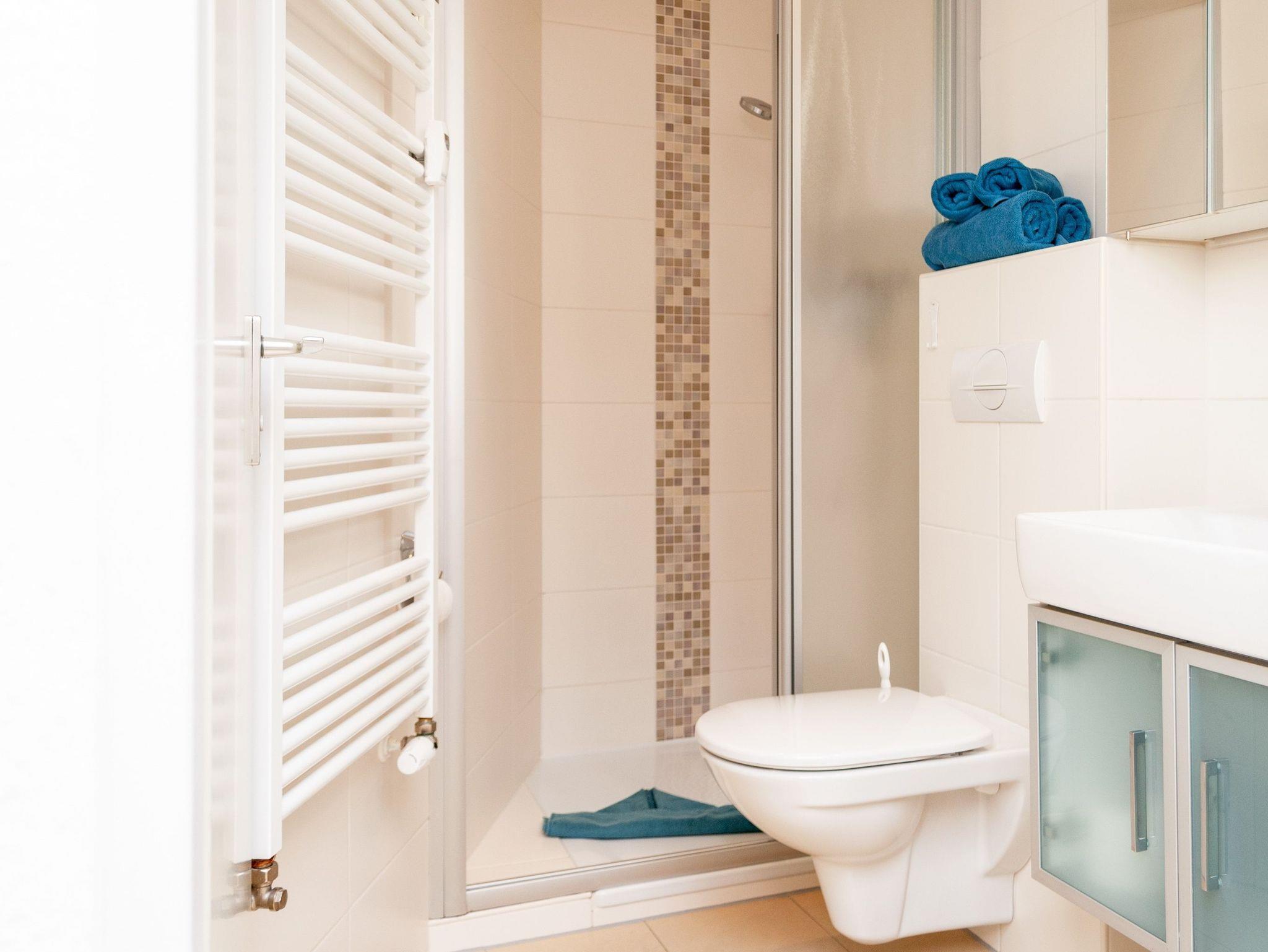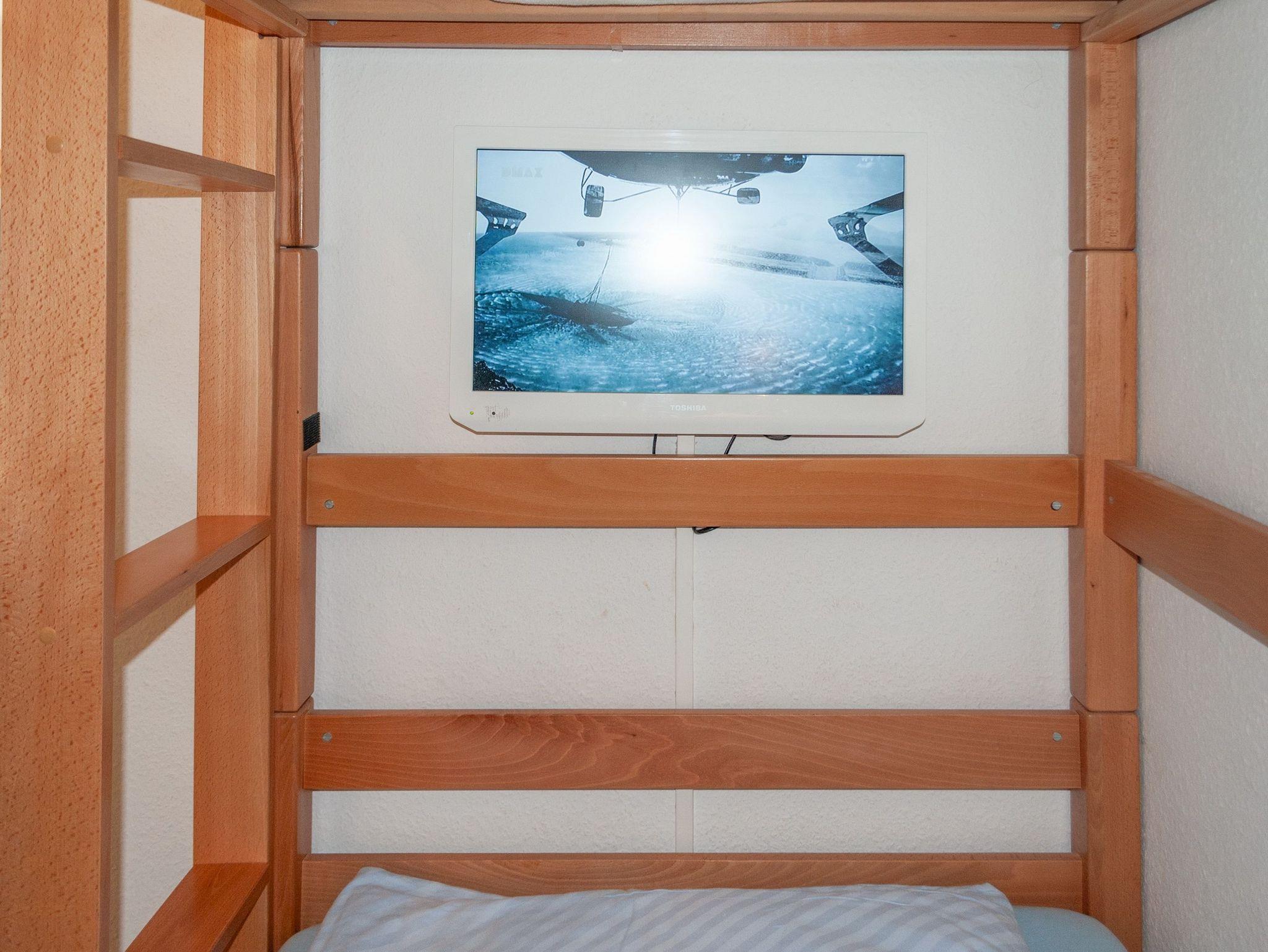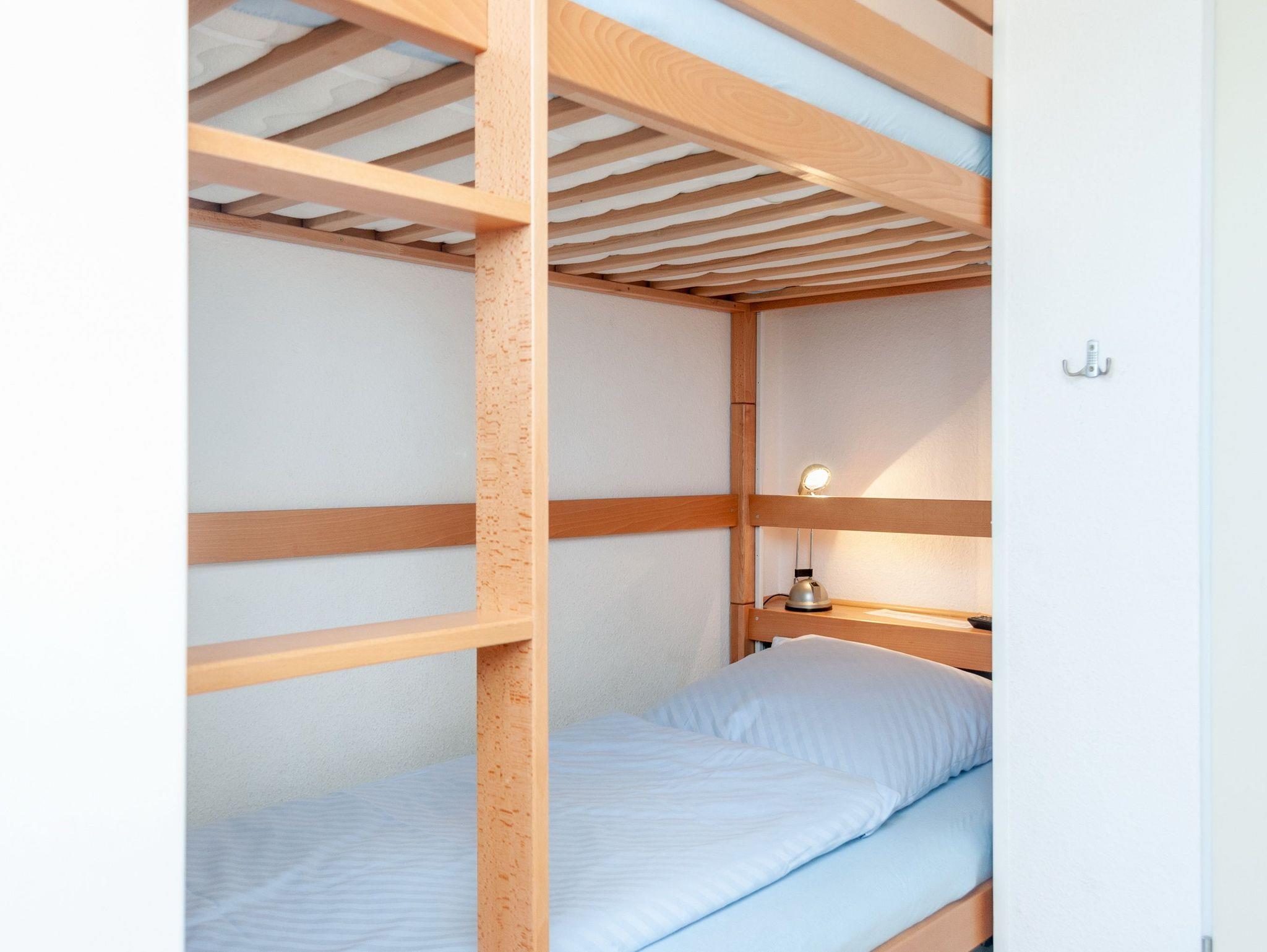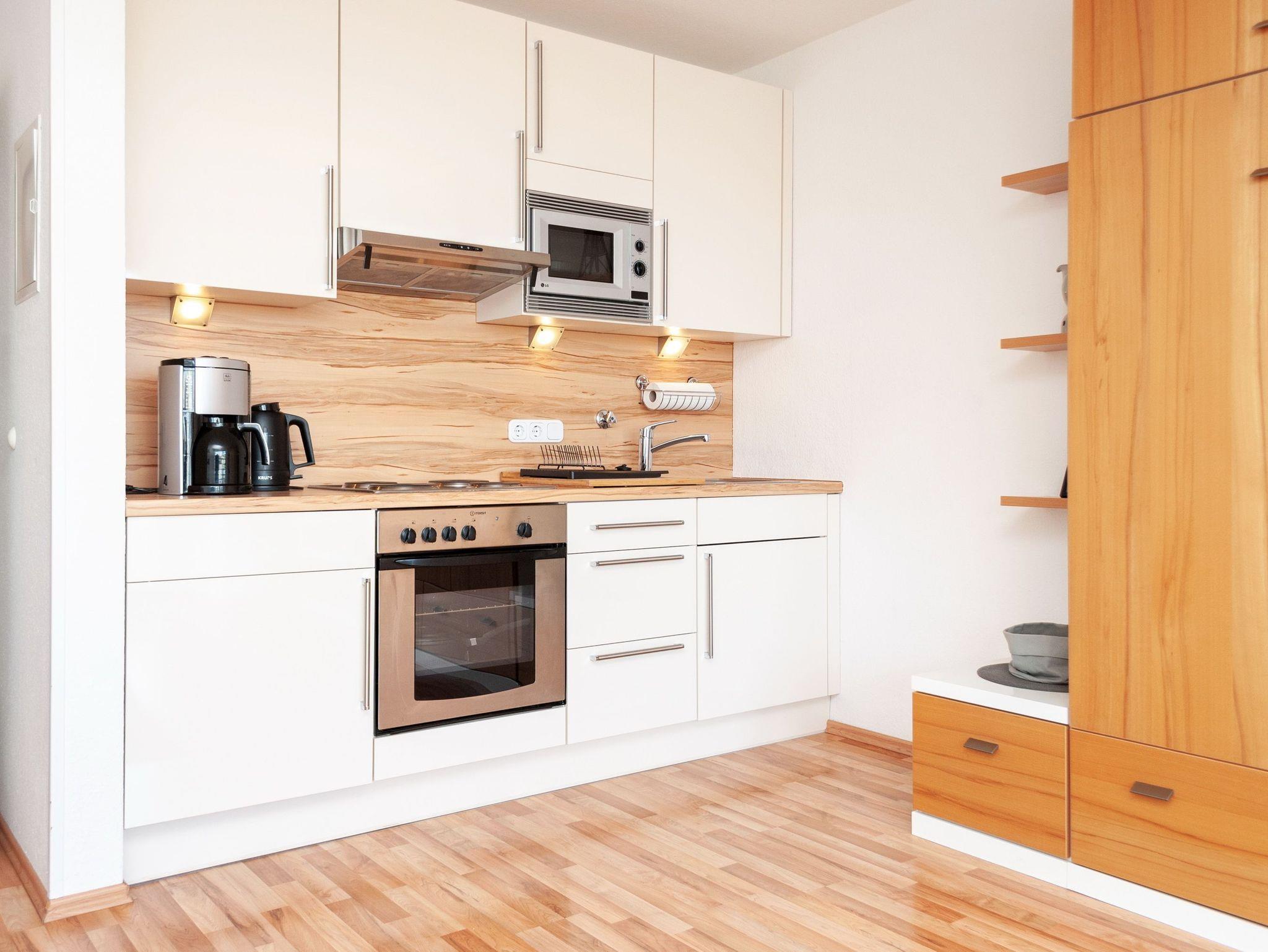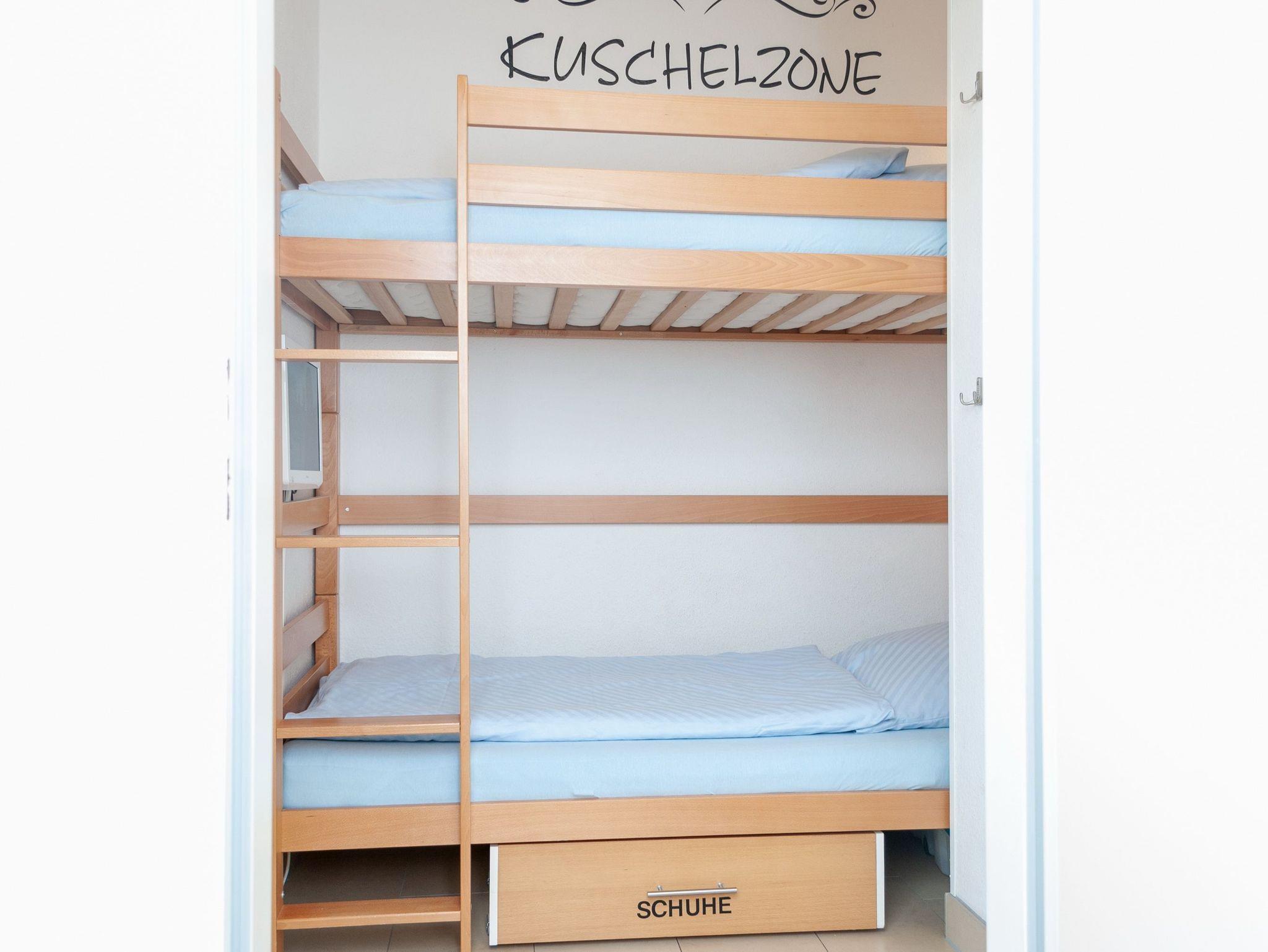 Das Apartment besteht aus einem Wohnbereich mit Schrankbett für 2 Personen, und aus einem zusätzlichem Etagenbett in einer Nische im Flur, einem Badezimmer mit Dusche sowie WC. Die Ferienwohnung beinhaltet eine voll ausgestattete offene Küche.