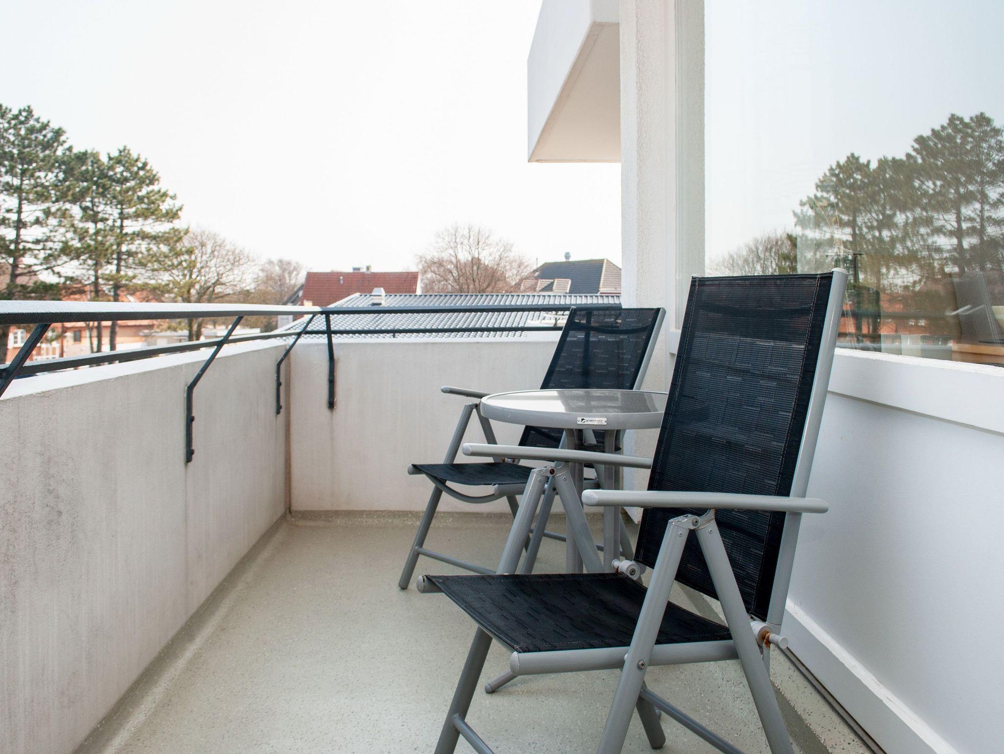 Das Apartment 211 ist ein 1-Raum-Apartment im 2. Obergeschoss für bis zu 4 Personen mit 40 qm. Der Ostbalkon mit Meerblick bietet Ihnen vormittags Sonne und nachmittags Schatten.
