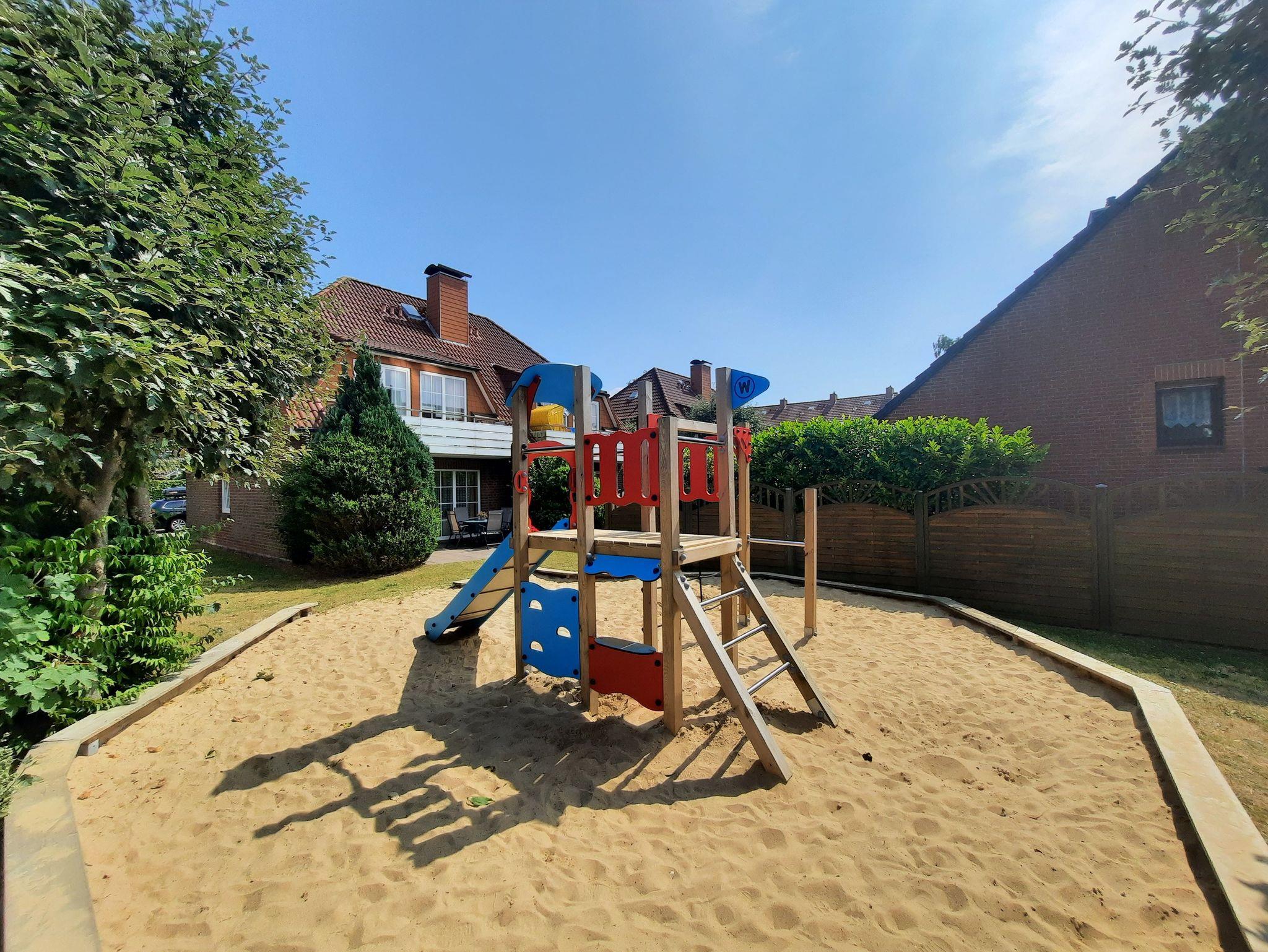 Freizeitangebote: Spielraum mit Tischtennis, Kicker und Ballebad, Kinderspielplatz, Schwimm- und Saunamoglichkeiten in einem der großten Meerwasserbrandungsbader, dem Thalassozentrum ahoi! im nahen Ortsteil Duhnen.