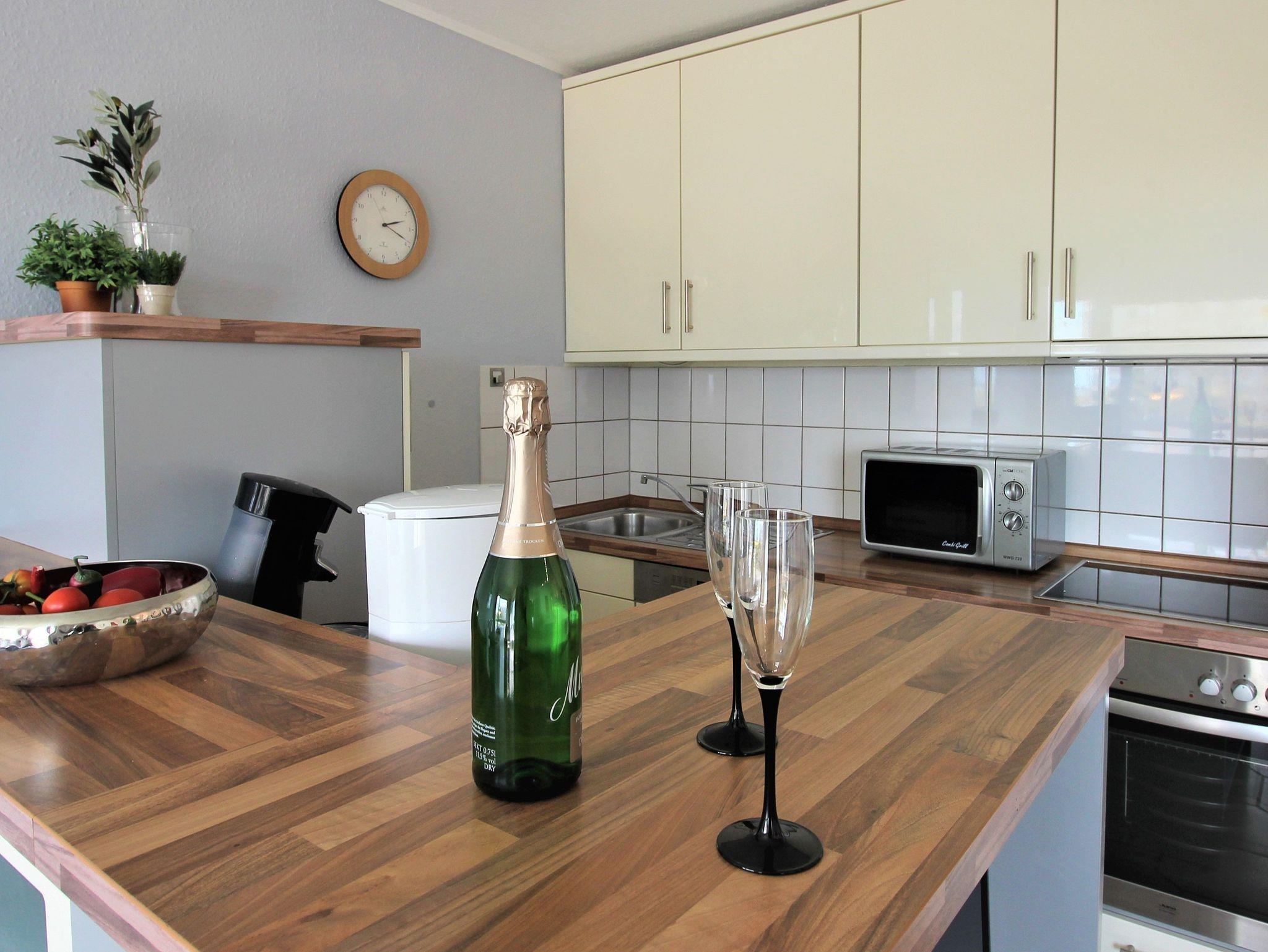 3-Zimmer-Appartement für bis zu 4 Personen auf ca. 70 m². Zwei Schlafräume mit Doppelbett oder Einizelbetten. Wohnraum mit Couch, TV, separatem Essplatz, Küchenbereich, Balkon. Bad mit Dusche/WC. PKW-Stellplatz vorhanden.