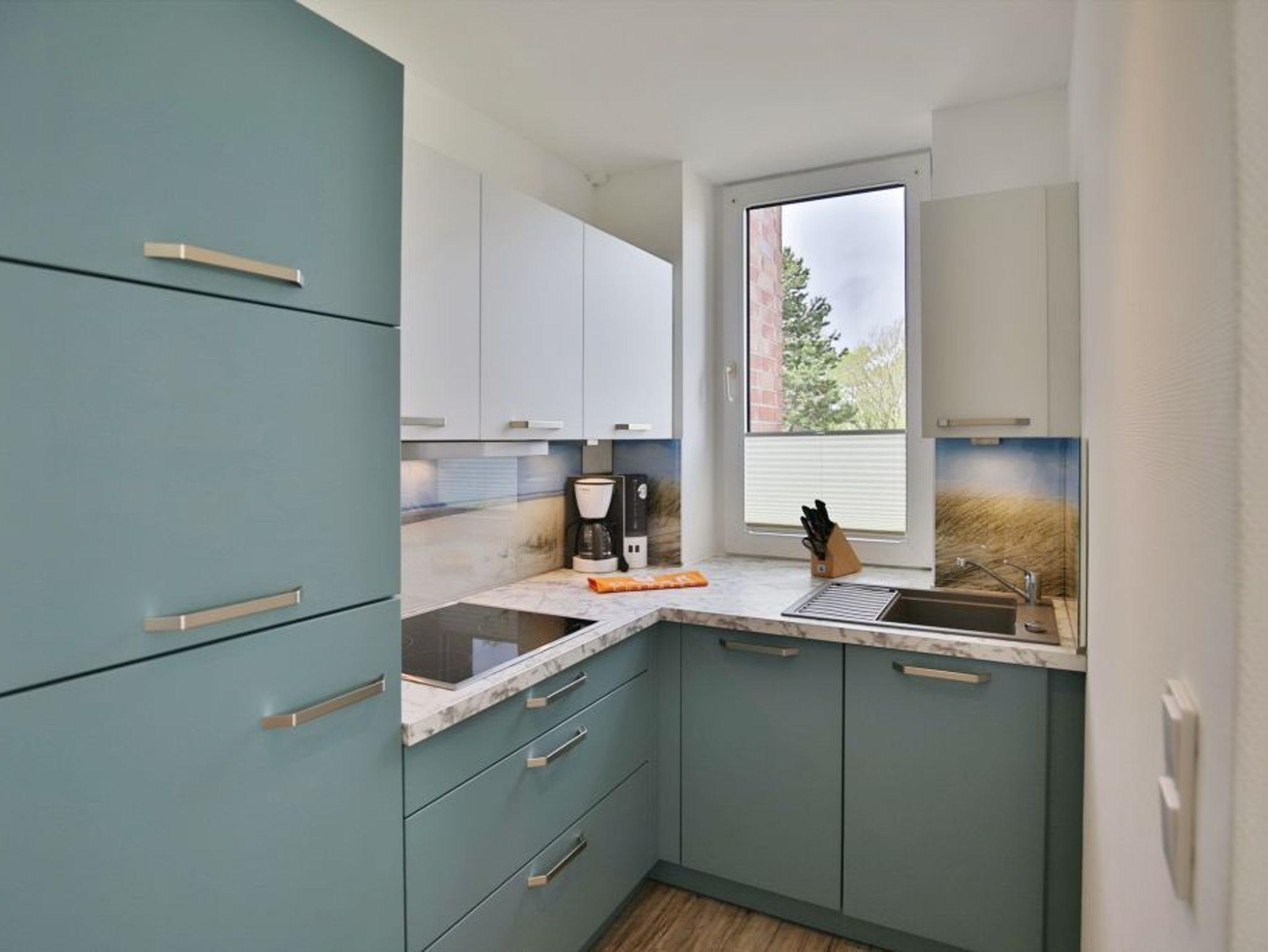 Neu renovierte 1-Zimmer-Eckwohnung in Cuxhaven mit Balkon, moderner Küche und Tiefgaragenstellplatz, ideal für zwei Personen.