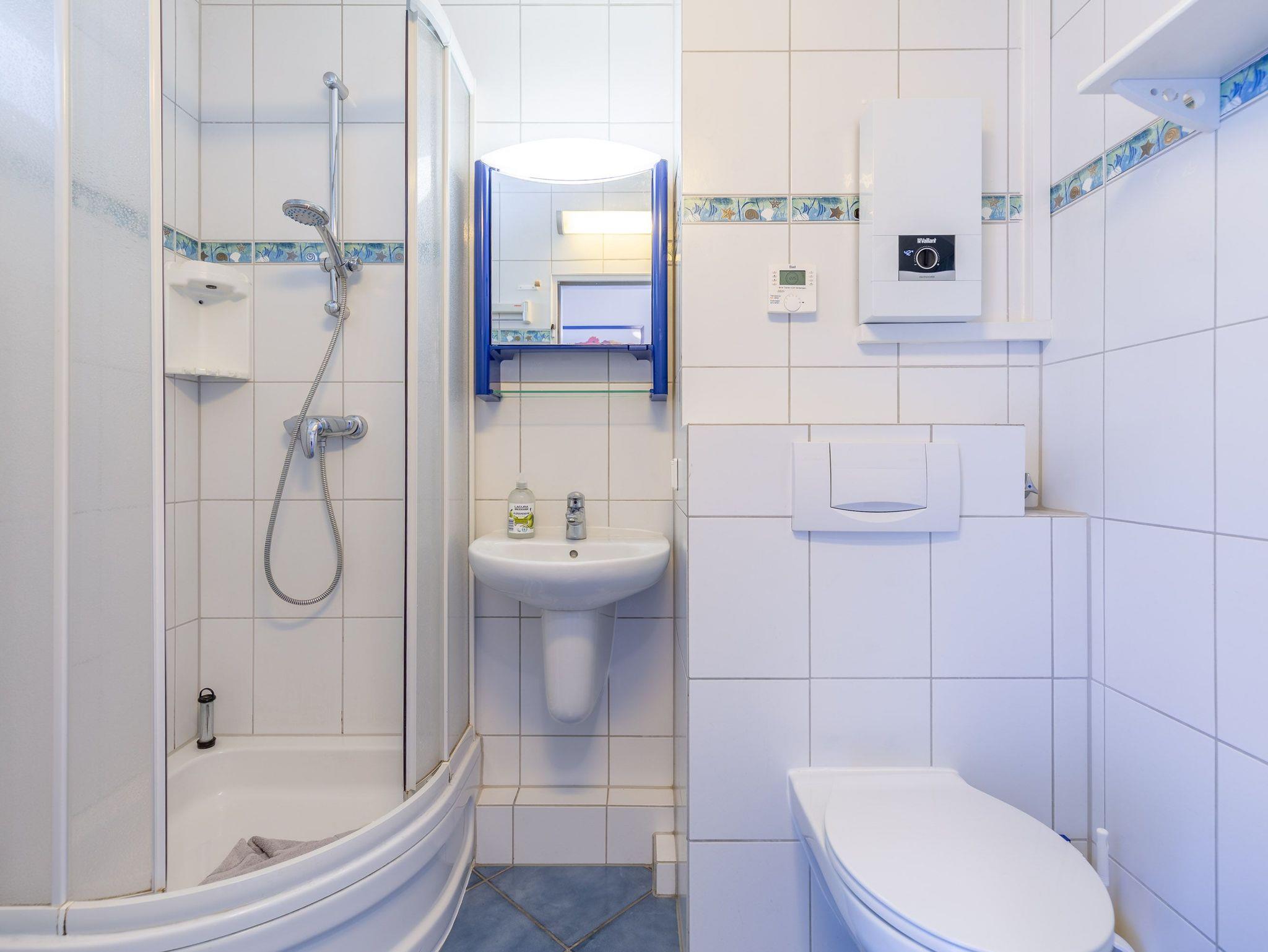 In der hellen Einraumwohnung lädt eine gemütliche Couchgarnitur mit Sessel zum Entspannen ein. Für Unterhaltung sorgen ein Flachbildfernseher sowie kostenloses WLAN. Die integrierte Küchenzeile ist mit einem 2-Platten-Cerankochfeld und einem Kühlschrank ausgestattet. Für die Nacht stehen Ihnen ein Schrankbett (2x80x200) im Wohnbereich sowie ein Etagenbett (90x200) im abgetrennten Vorraum zur Verfügung. So finden auch kleine Familien oder Getrenntschlafende ein passendes Plätzchen. Vorhänge sorgen dafür, dass Sie nicht von der Morgensonne geweckt werden. Das Badezimmer mit Dusche und WC verfügt über ein Fenster zum Belüften.