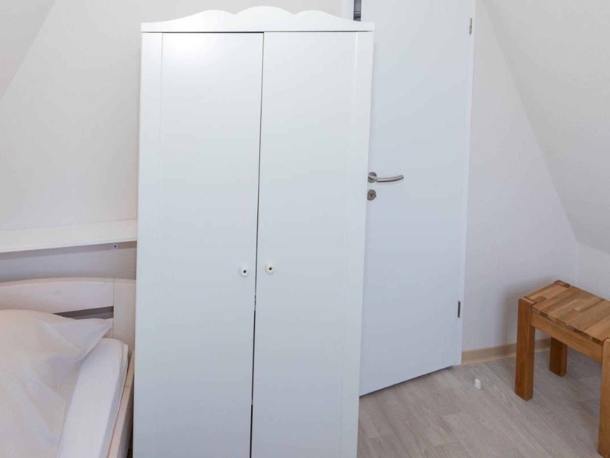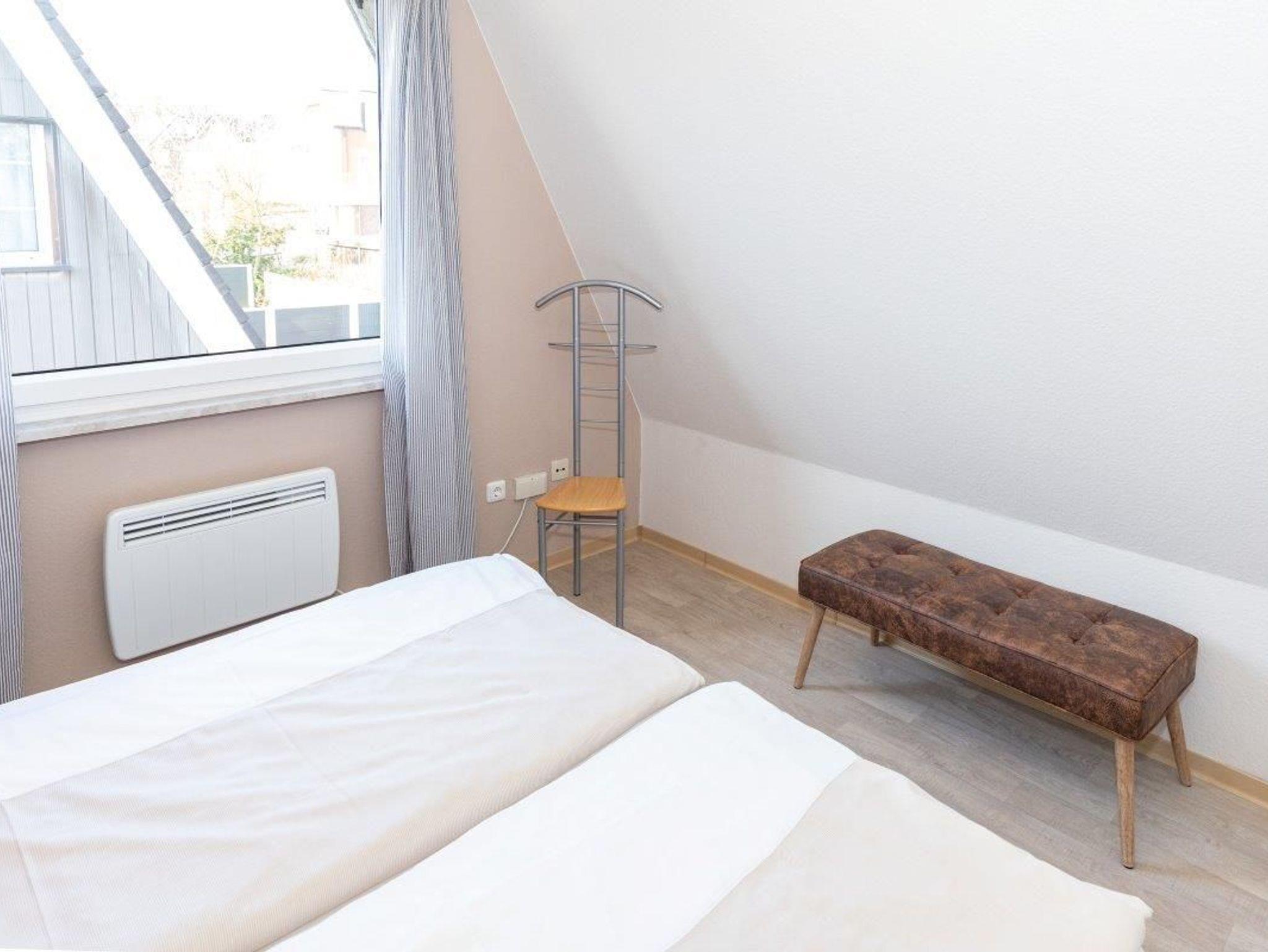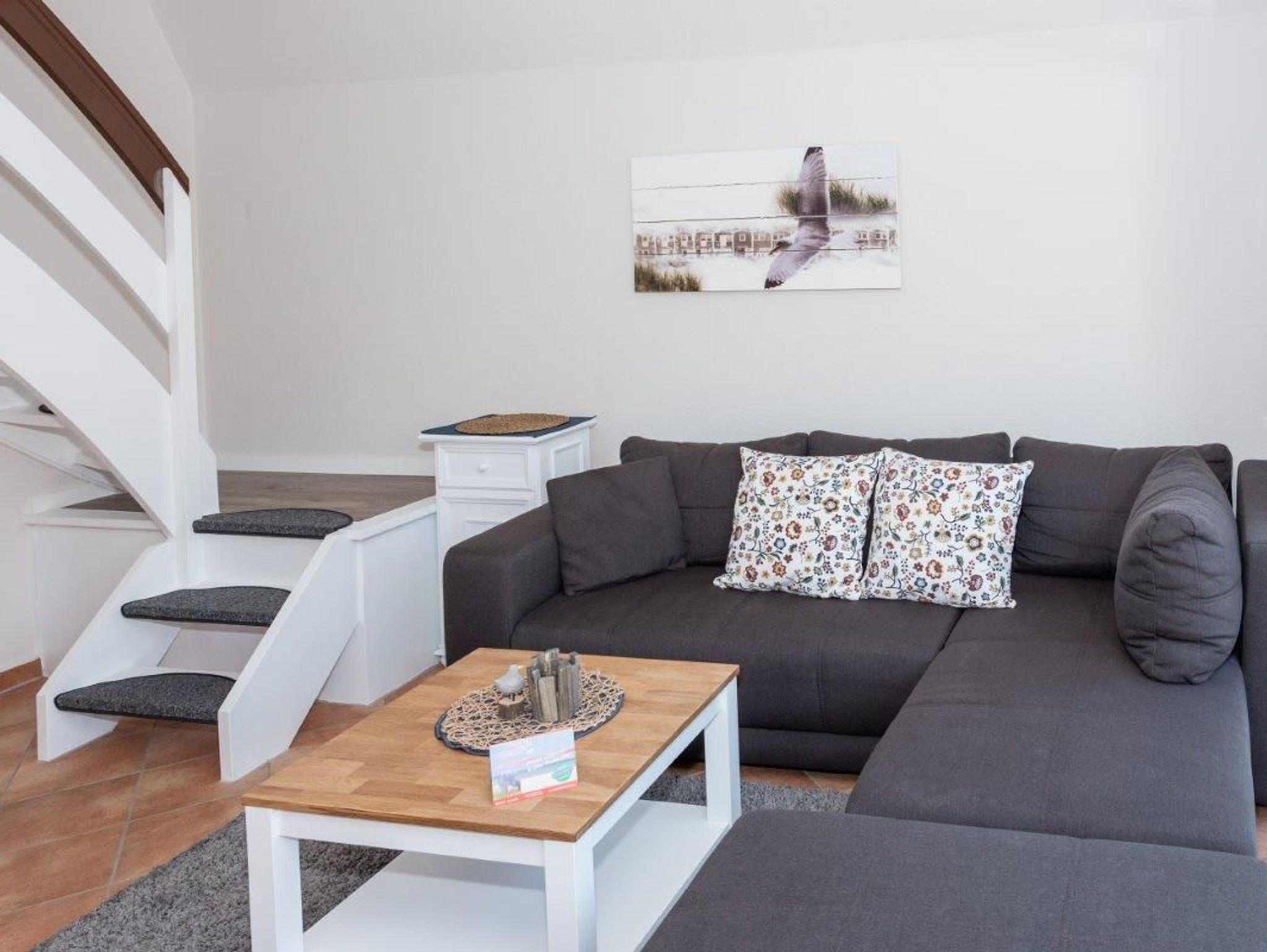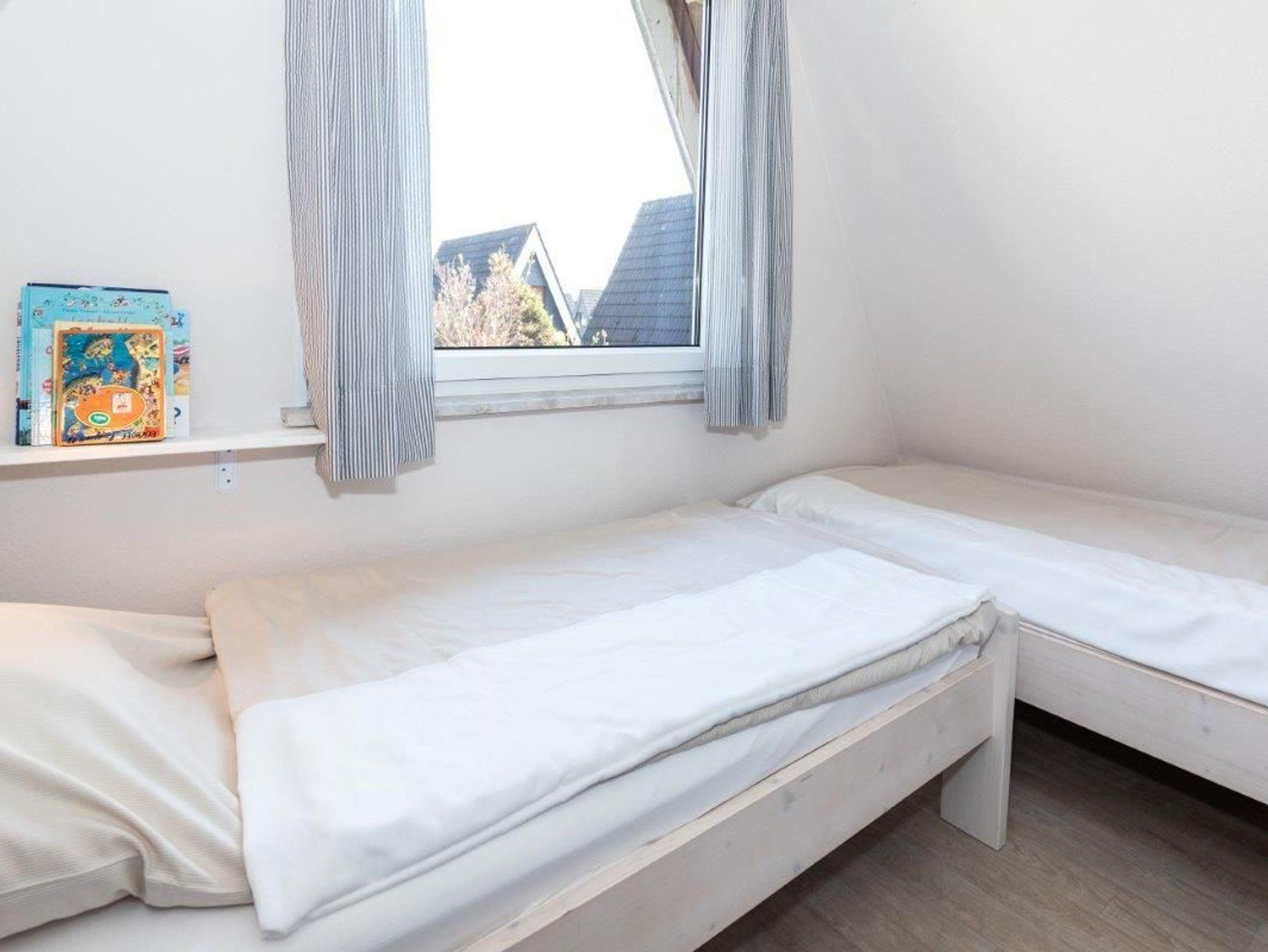 Das Haus verfügt über 2 Schlafzimmer ? eins mit einem behaglichen Doppelbett und ein kleines Kinderzimmer mit 2 Einzelbetten. Im Erdgeschoss erwartet Sie ein modernes Duschbad mit WC, während der Wohn- und Essbereich mit einer großzügigen Fensterfront zur Westterrasse gemütlich eingerichtet ist. Die Treppe ins Obergeschoss ist mit normalen Stufen ausgestattet, jedoch ist ihre Nutzung für sehr kleine Kinder (bis 3 Jahre) ohne Aufsicht nicht empfohlen.