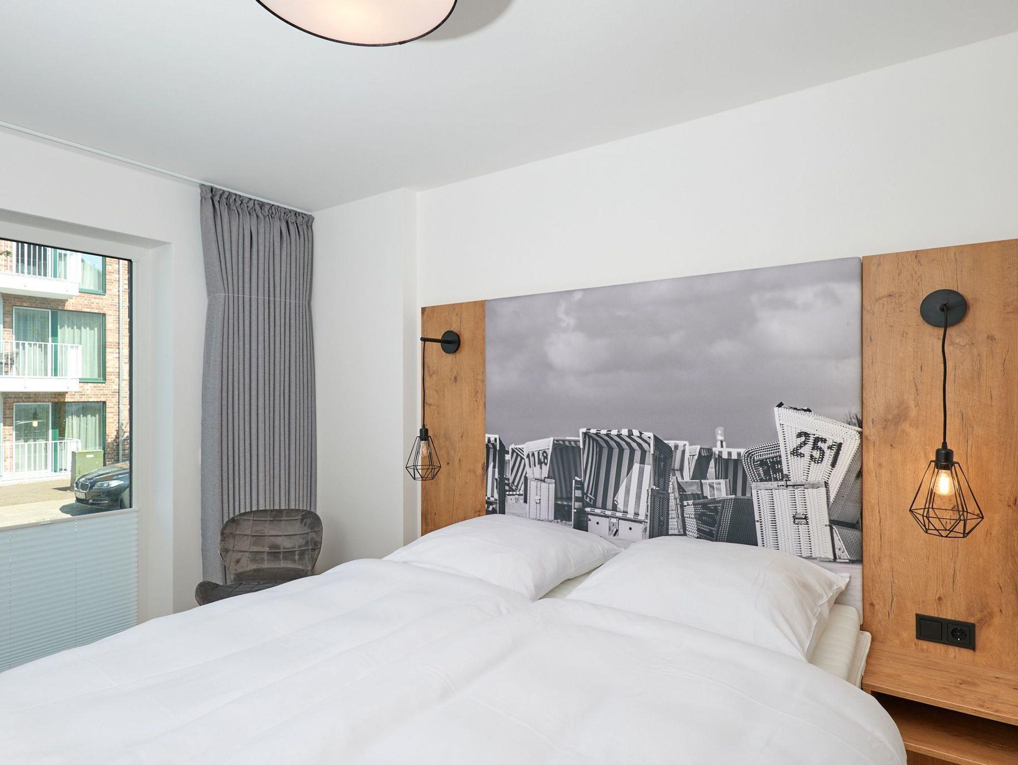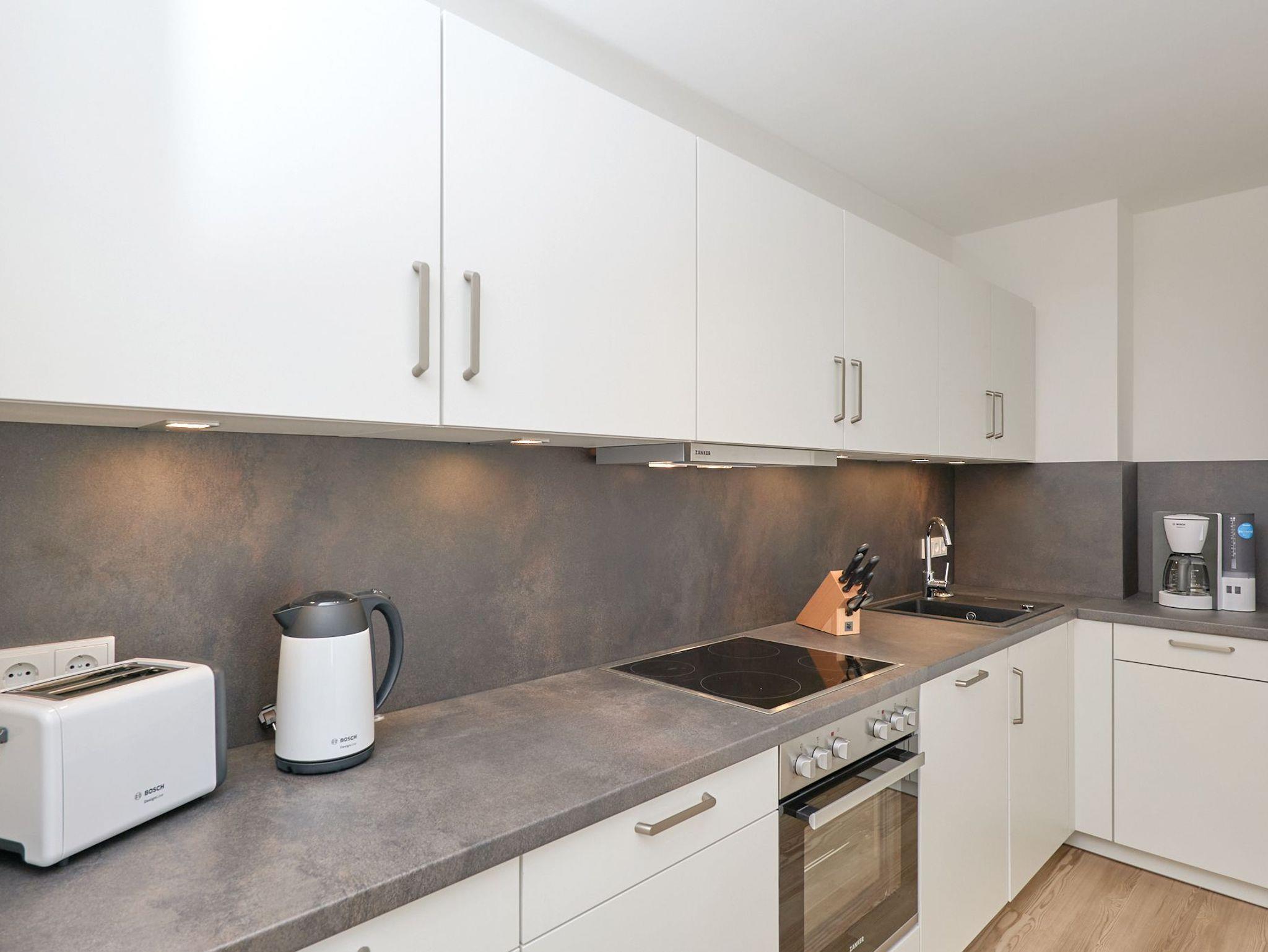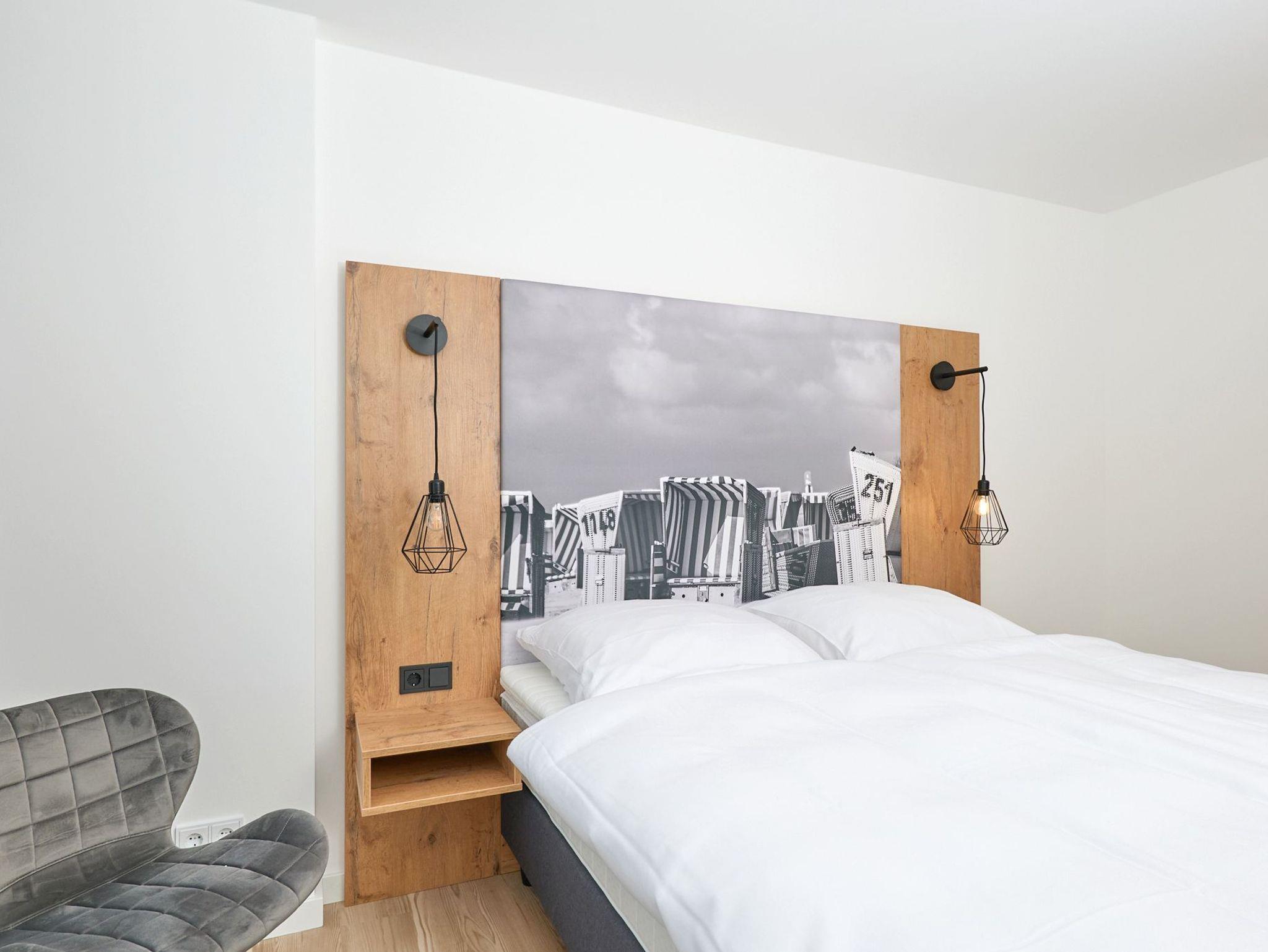 Neubau Mai 2023! Sehr schöne, moderne 3-Raum-Wohnung bis 4 Pers. voll ausgestattet auf ca. 73 m² in der 1.Etage gelegen, 2 Schlafzimmer mit komfortablen Doppelbetten (Bettwäsche inkl.) und Außenjalousien an allen Fenstern, ebenerdige Dusche/WC, Wohnzimmer mit großer Küchenzeile (Backofen, Geschirrspüler, Mikrowelle) 3x Kabel-TV, Radio, kostenfreies W-LAN-Internet, kleiner Balkon (ost), Personenaufzug, reservierter Pkw-Stellplatz in der Tiefgarage inkl., es sind keine Haustiere erlaubt und natürlich Nichtraucher. Durchfahrtshöhe Tiefgarage: 2,05m.
