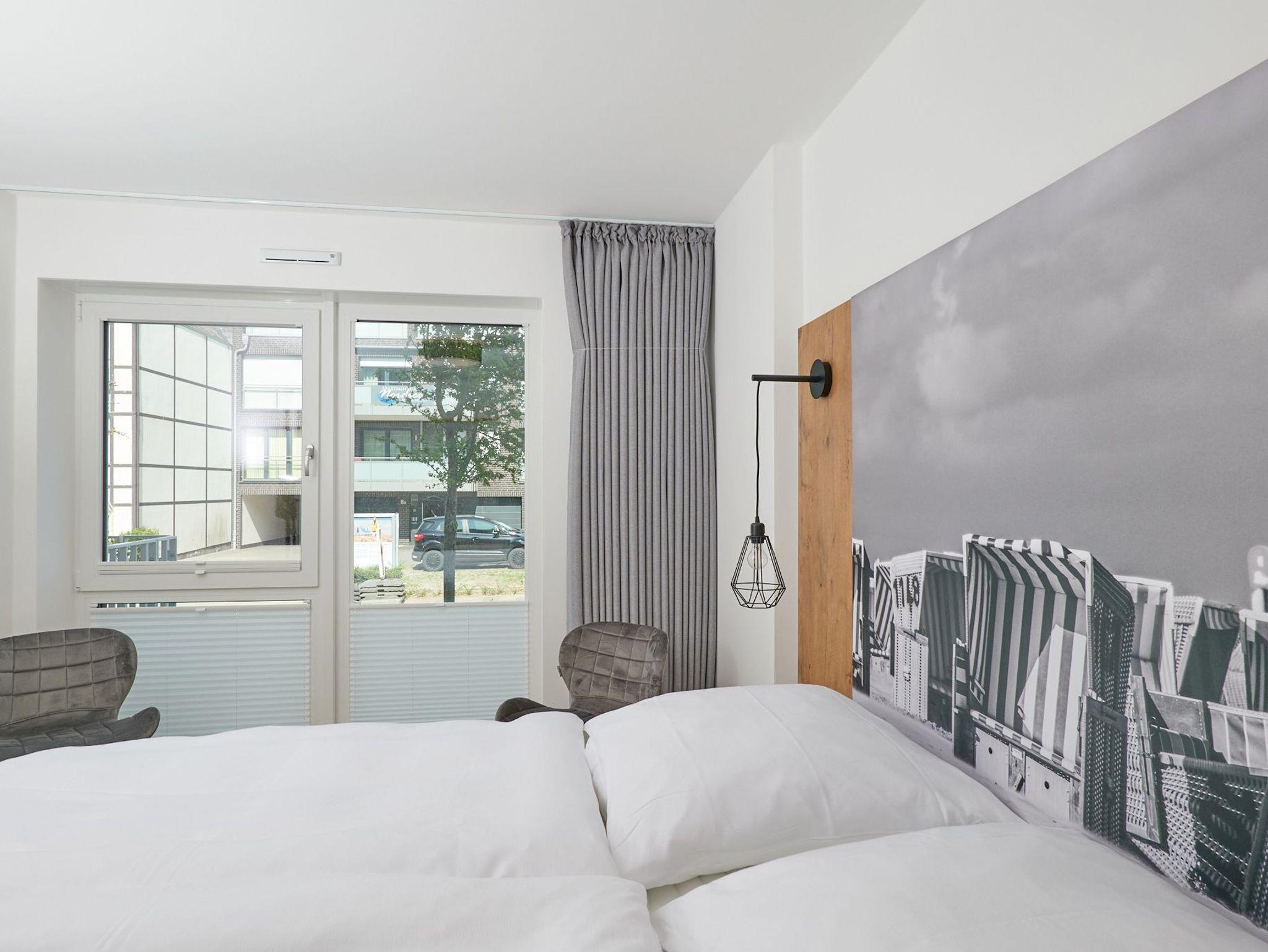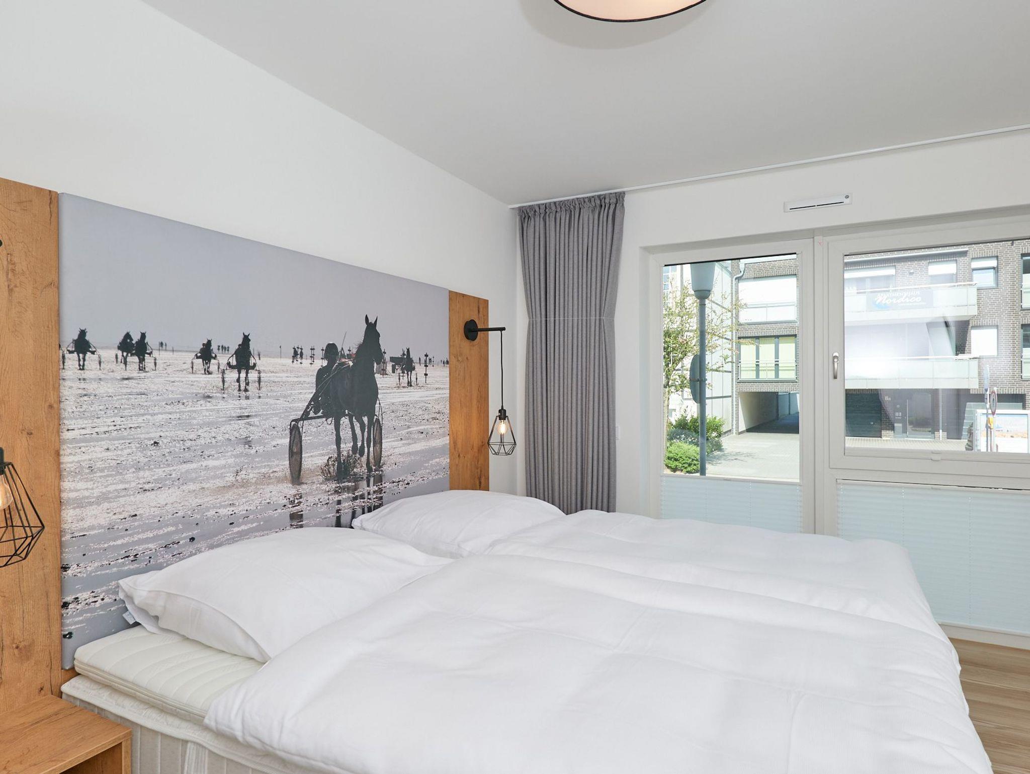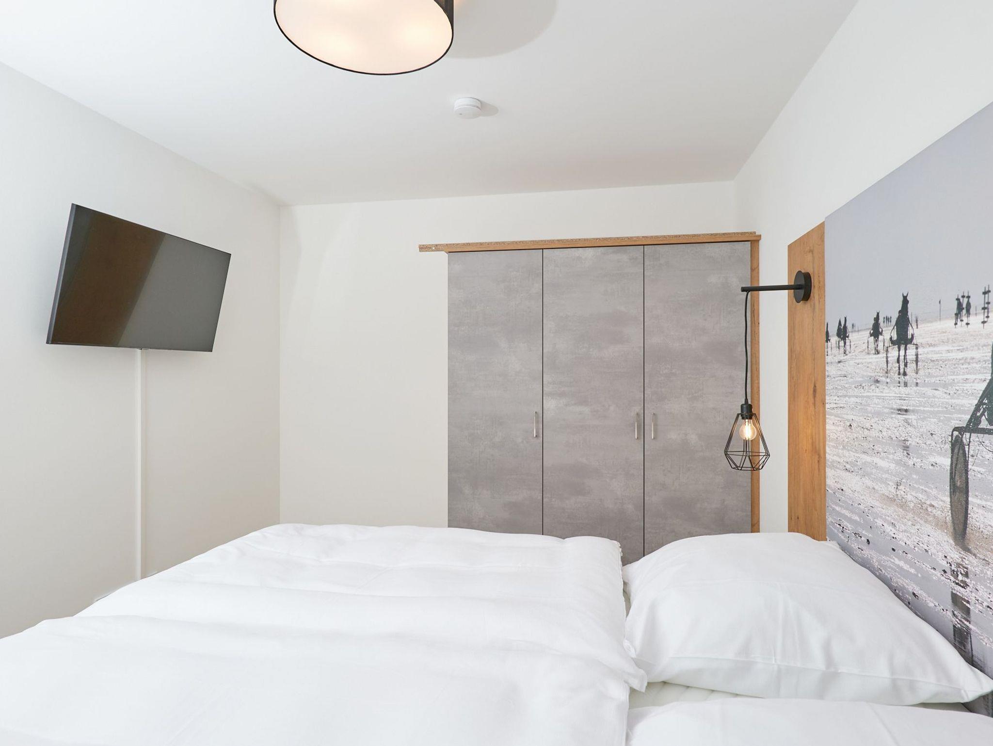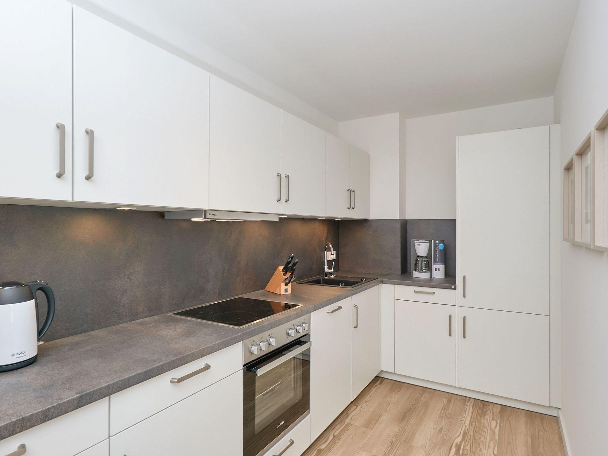 Neubau Mai 2023! Sehr schöne, moderne 3-Raum-Wohnung bis 4 Pers. voll ausgestattet auf ca. 73 m² in der 1.Etage gelegen, 2 Schlafzimmer mit komfortablen Doppelbetten (Bettwäsche inkl.) und Außenjalousien an allen Fenstern, ebenerdige Dusche/WC, Wohnzimmer mit großer Küchenzeile (Backofen, Geschirrspüler, Mikrowelle) 3x Kabel-TV, Radio, kostenfreies W-LAN-Internet, kleiner Balkon (ost), Personenaufzug, reservierter Pkw-Stellplatz in der Tiefgarage inkl., es sind keine Haustiere erlaubt und natürlich Nichtraucher. Durchfahrtshöhe Tiefgarage: 2,05m.