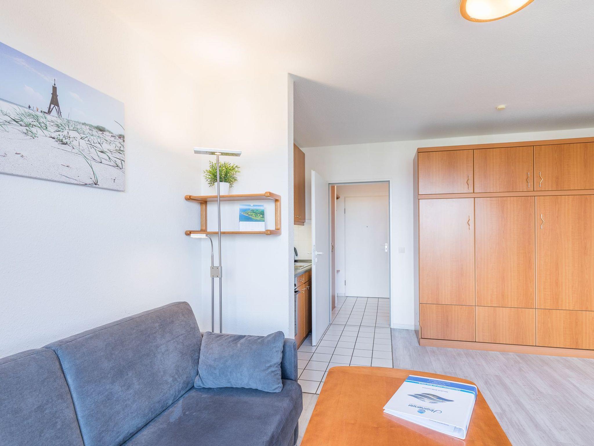 Gemütliche 35 m² Ferienwohnung in Cuxhaven mit Balkon, WLAN, Strandkorb und Zugang zu Sauna und Schwimmbad.