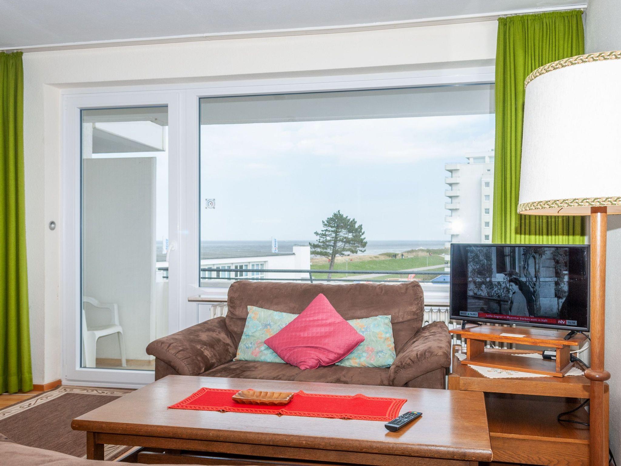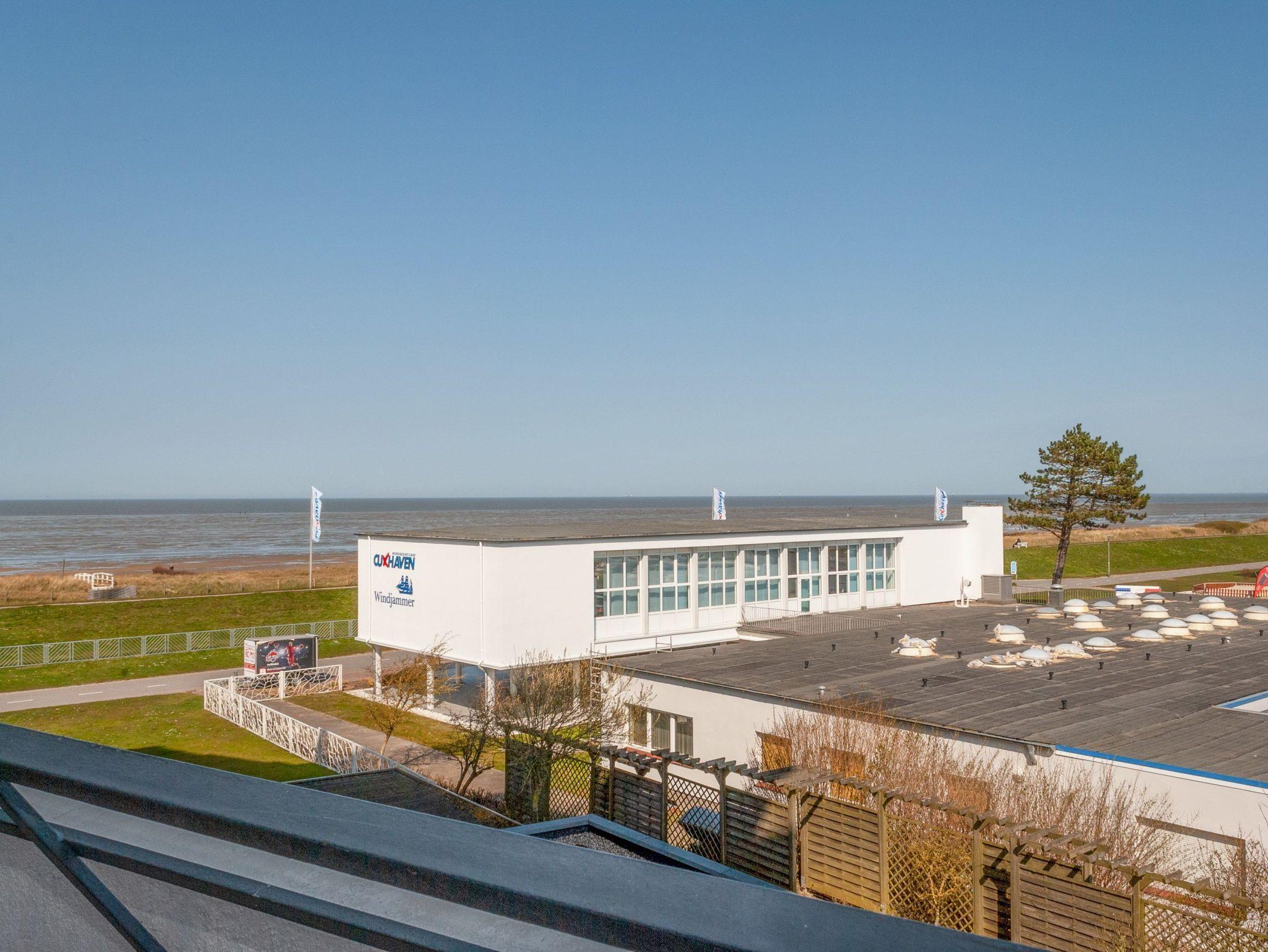 Modernes 2-Raum-Apartment mit Meerblick, Balkon, Sauna und Schwimmbad in Cuxhaven, ideal für familienfreundlichen Urlaub.