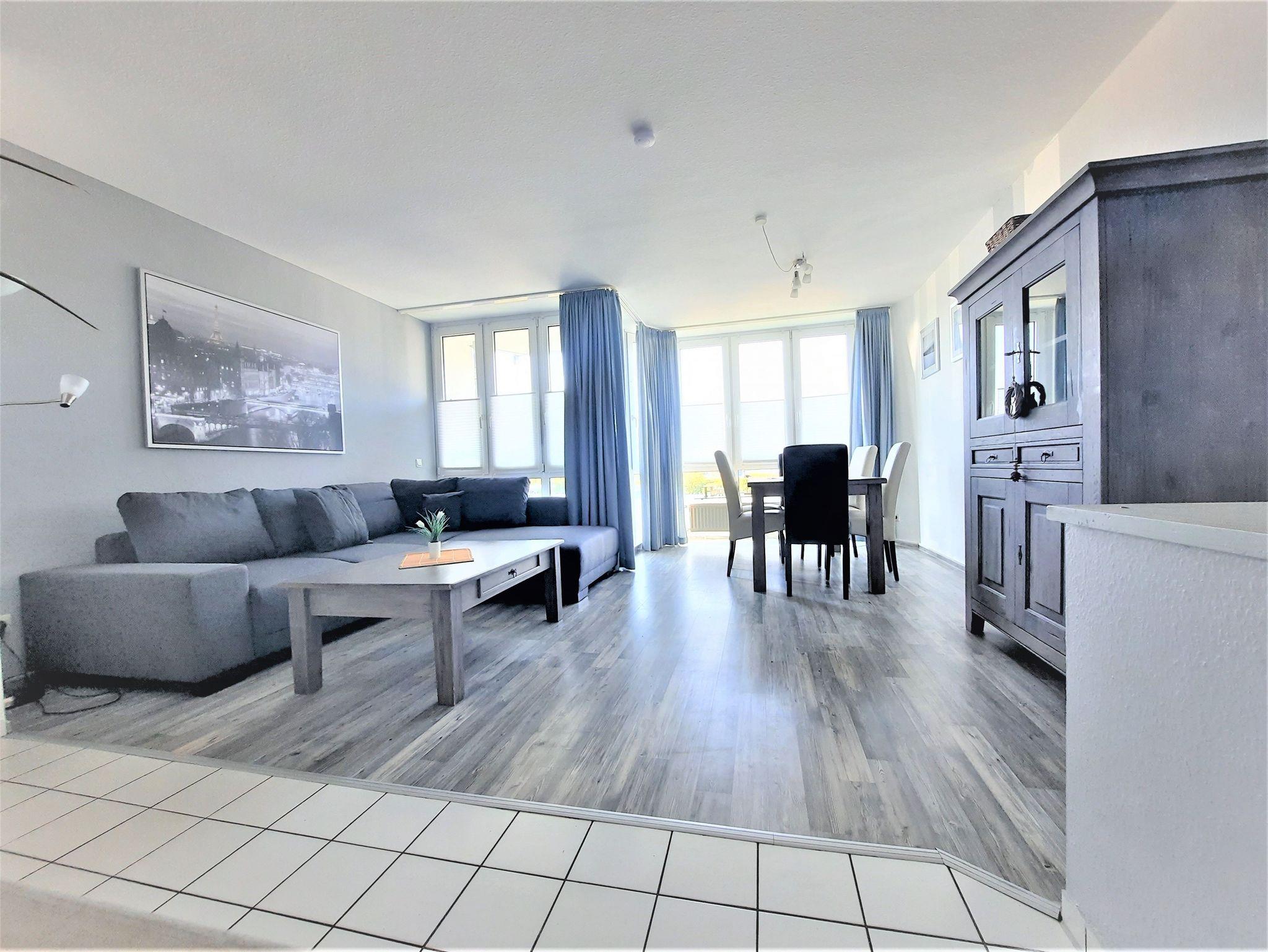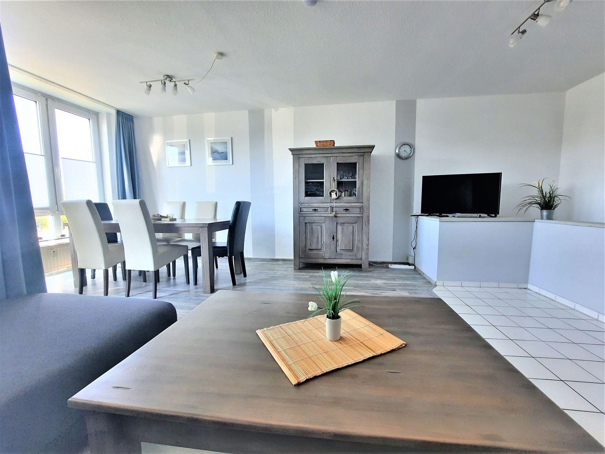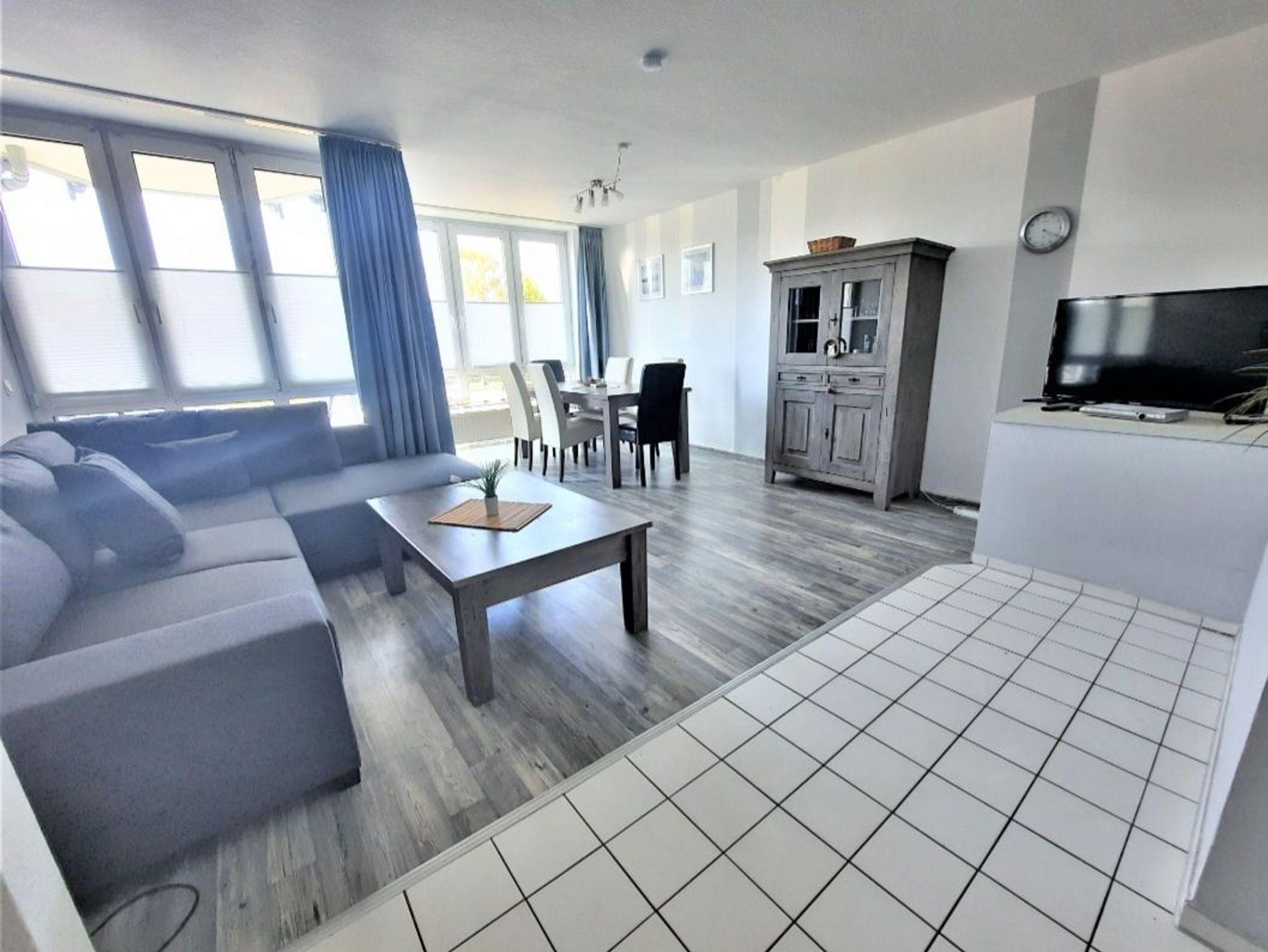 Sie wohnen in einem 3-Zimmer-Appartement für bis zu 6 Personen auf ca. 66 m² Wohnfläche. Im Erdgeschoss finden Sie einen großen hellen Wohnraum mit einem Couchbett, separatem Essplatz,TV-Flachbildschirm 102 mit DVD-Player, voll ausgestatteter Küchenbereich mit Backofen, Mikrowelle und Geschirrspüler. Dusche/WC mit Handtuchheizkörper, separetem Gäste-WC,Balkon. Im Untergeschoss befinden sich ein Schlafzimmer mit Doppelbett und Fernseher, ein Schlafzimmer mit zwei getrennten Betten und Fernseher. Diegesamte Wohnung hat Laminatfußboden. Die Wohnung ist kindergerecht ausgestattet mit z.B. Hochstuhl, zusätzlichem Kinderbett, Kinder-Toilettensitz und Kindersicherung vor der Treppe.