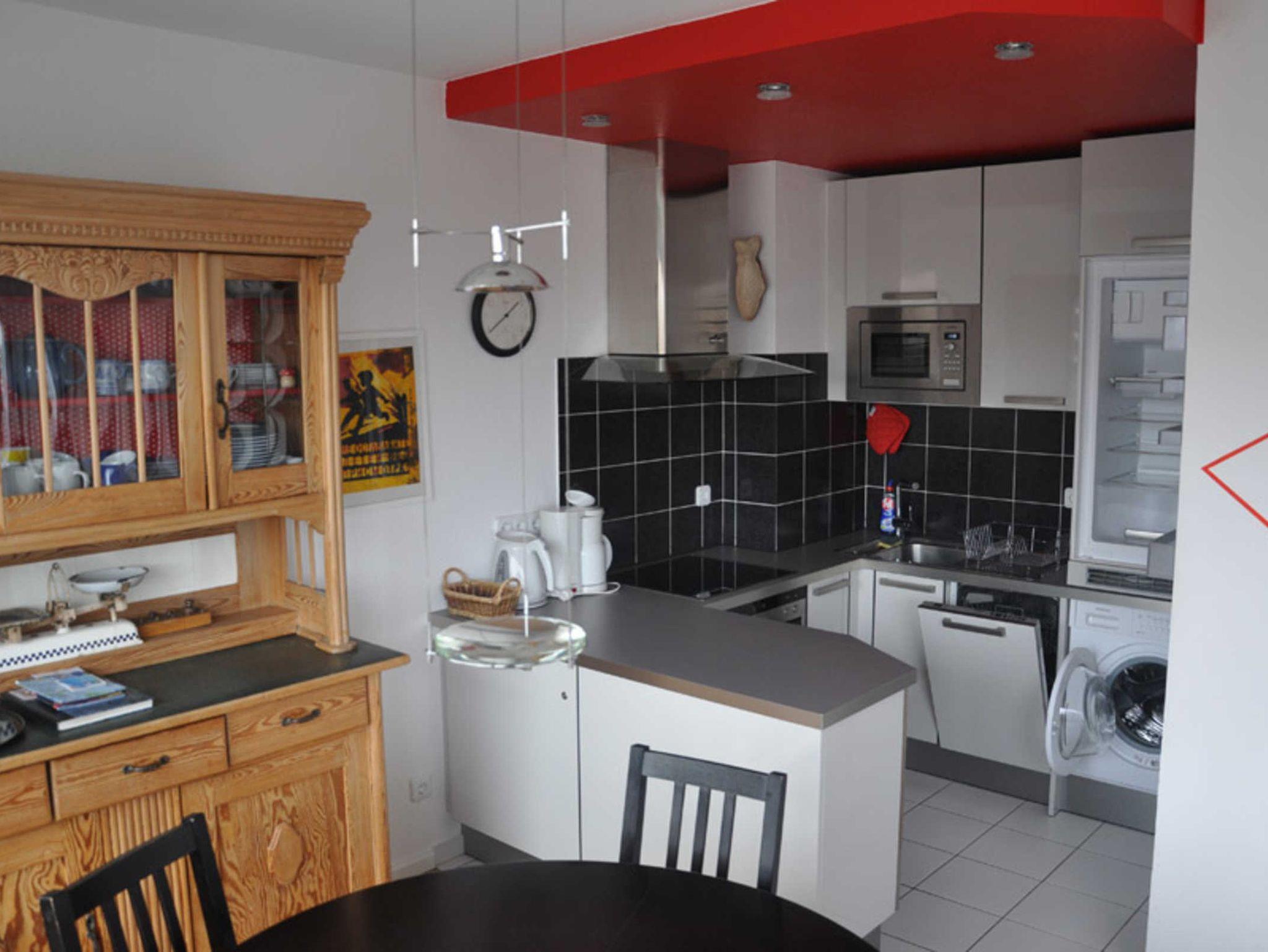 • großes Wohn-/Esszimmer mit gut ausgestatteter offener Küche (4-Platten-Herd mit Backofen, Mikrowelle, Kaffeemaschine, Dreimix, Waschmaschine). Gemütliches Ecksofa und Esstisch