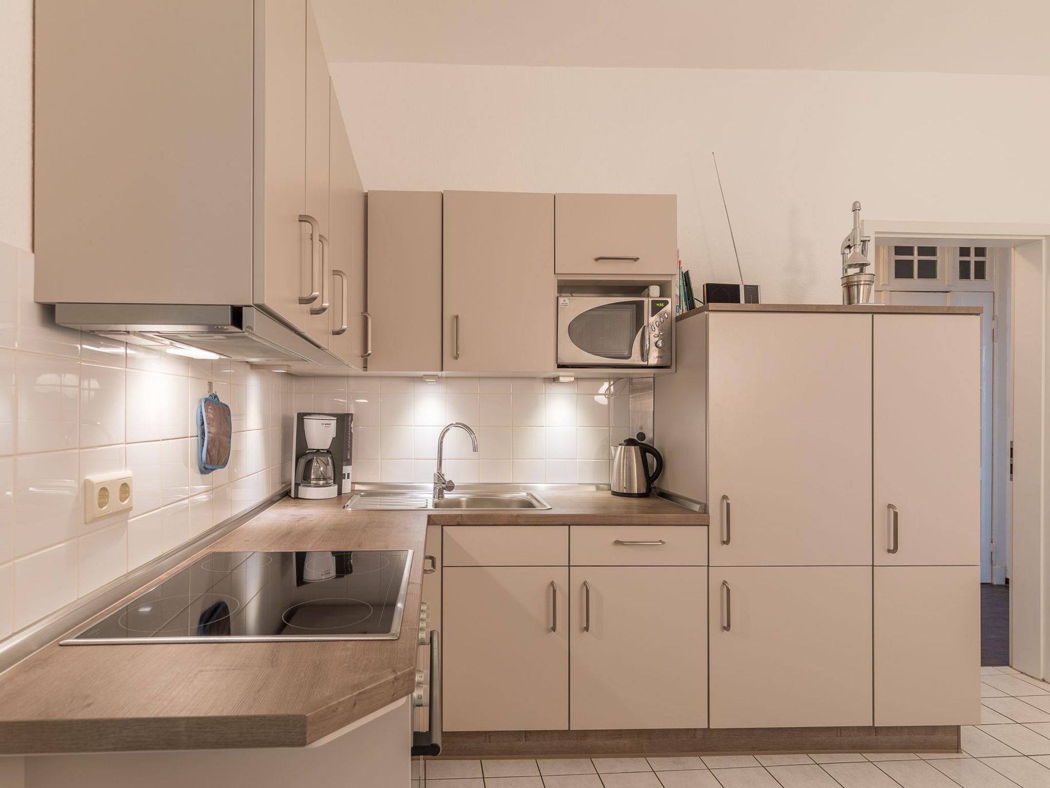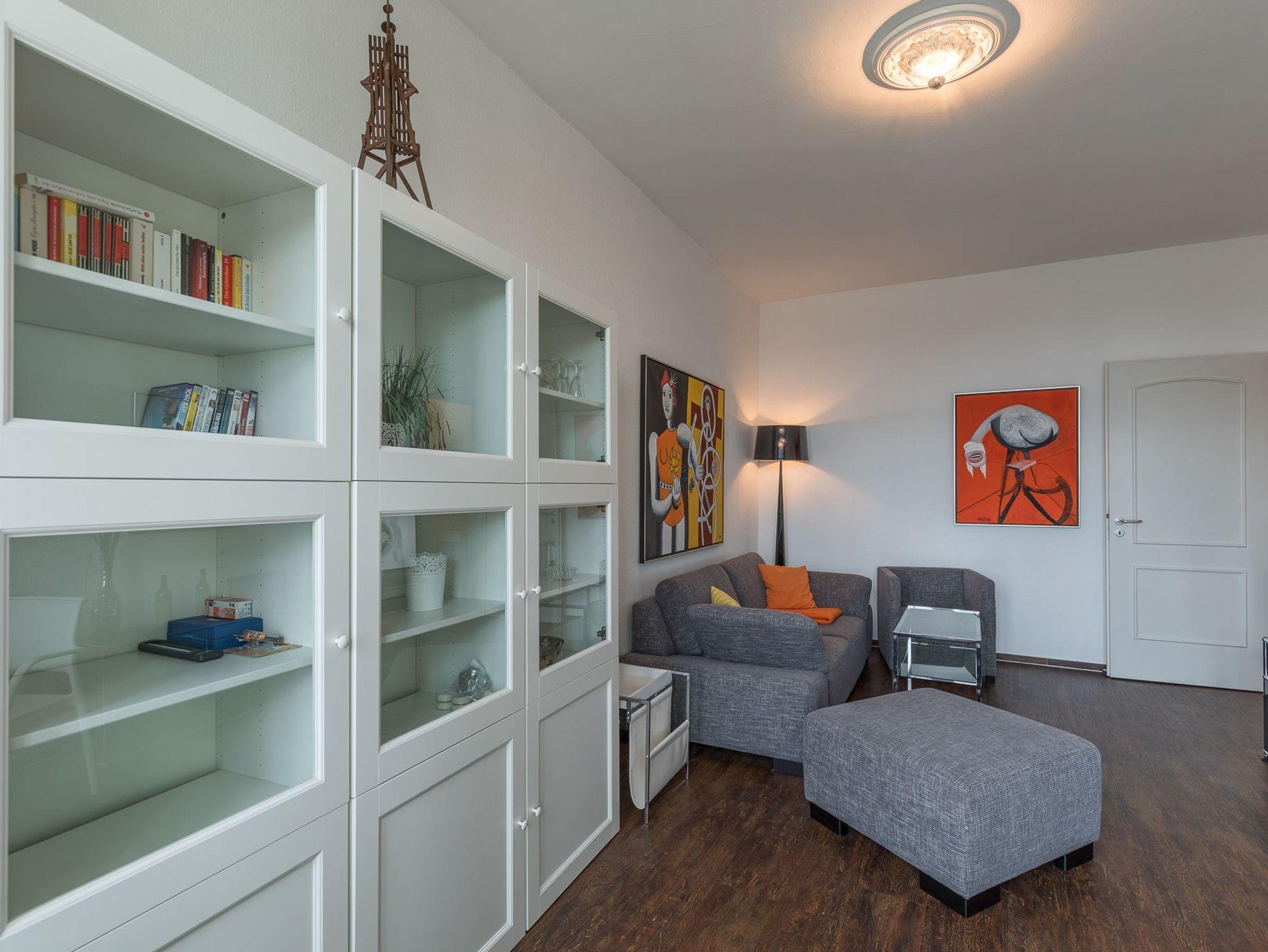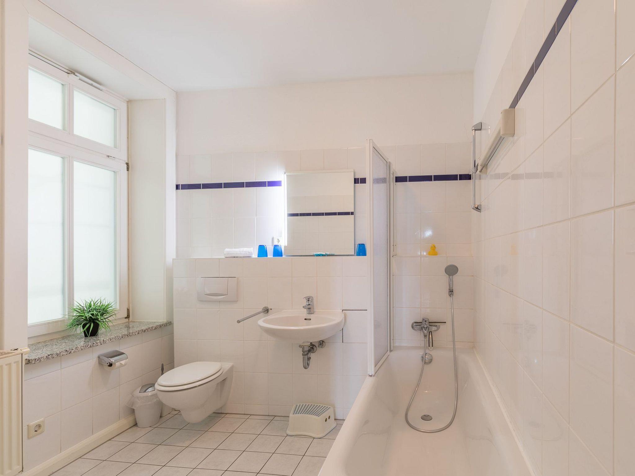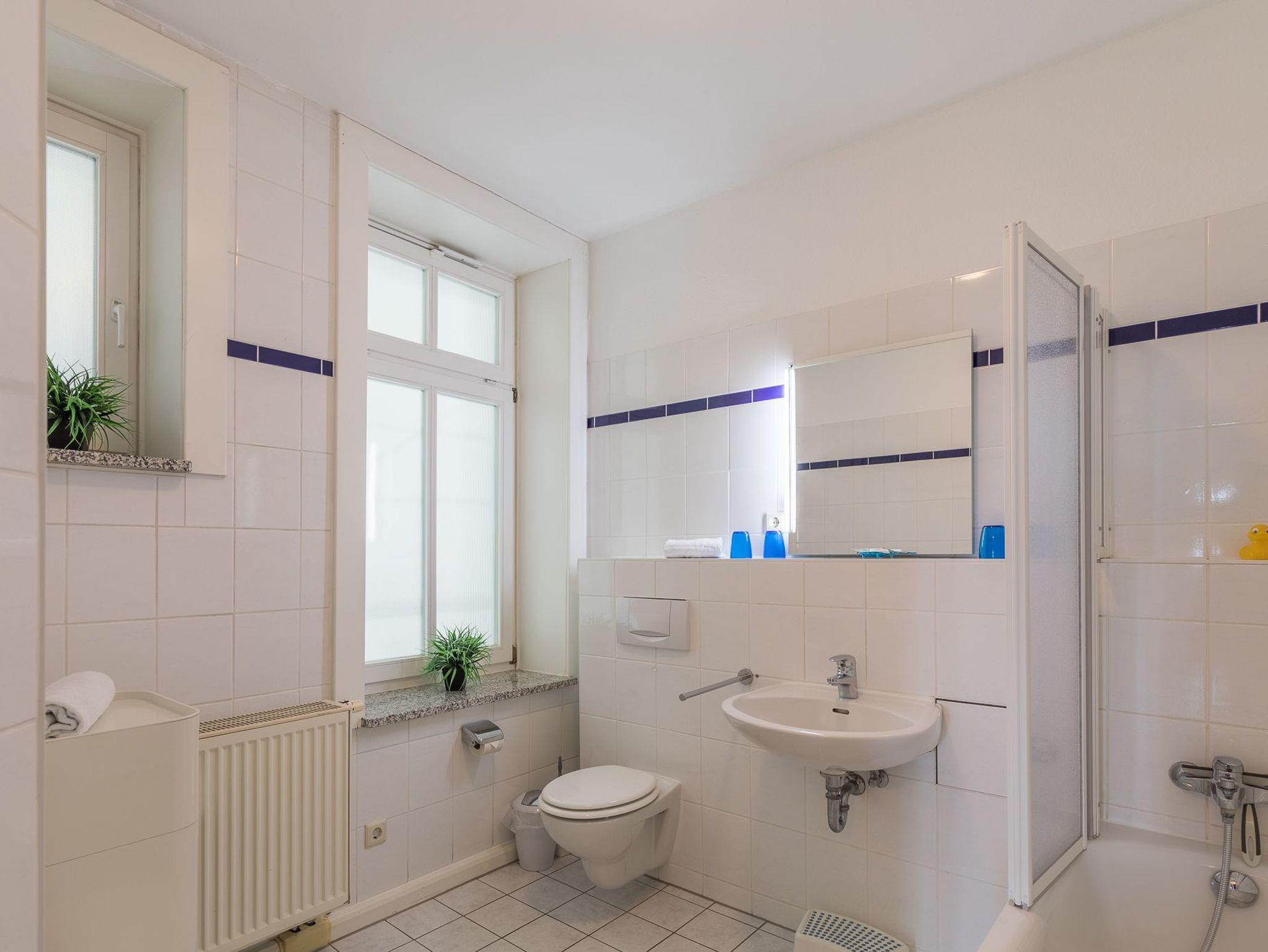 Die modern eingerichtete 3-Raum Wohnung (mit Teilseesicht und kleinem Balkon) mit einer Größe von ca. 80 m² Wohnfläche ist komplett bis zu 4 Personen ausgestattet. 1 Wohnzimmer[nbsp][nbsp]mit Essplatz, gemütlichem Sofa, TV, Stereoanlage und Zugang zum kleinen Balkon zur Seeseite, 1 Schlafzimmer mit Doppelbett und TV, 1 Schlafzimmer mit 2 Einzelbetten, separate große Küche (Cerankochfeld, Backofen, Mikrowelle, Kaffeemaschine und Wasserkocher) mit Essplatz, 1 Bad mit Badewanne und WC, Nichtraucherwohnung, keine Haustiere, PKW-Stellplatz direkt am Haus.