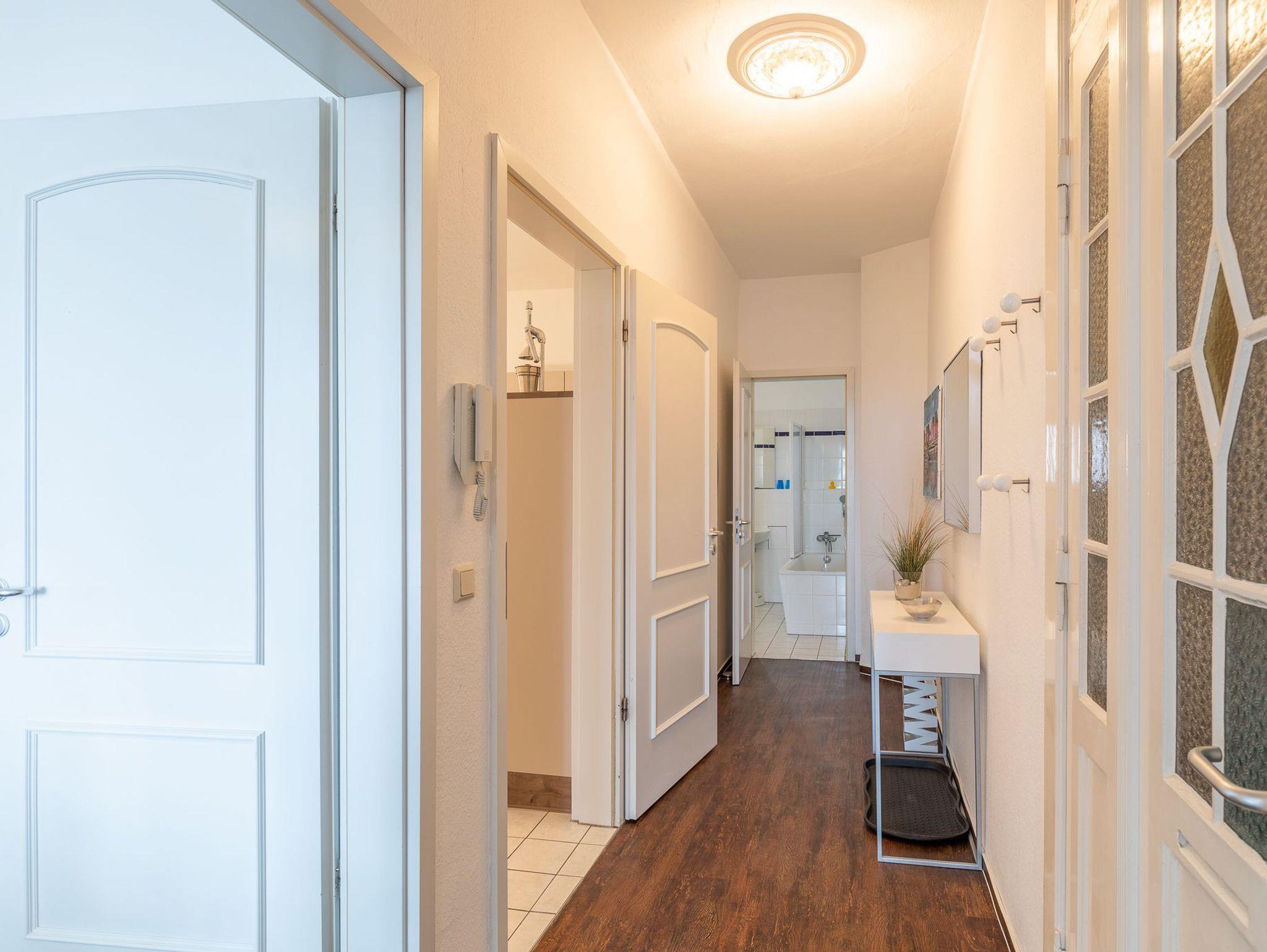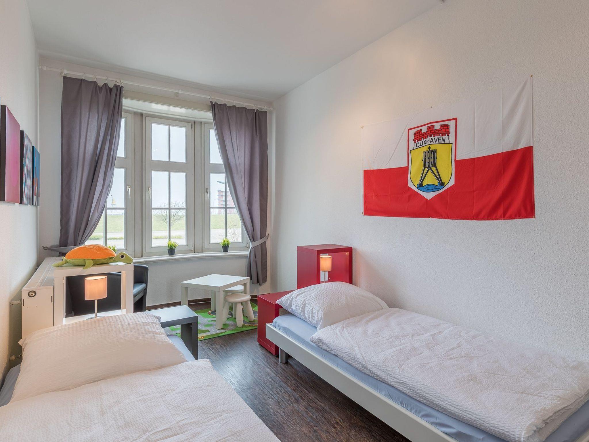 Modern eingerichtete 3-Zimmer-Wohnung mit Teilseesicht und Balkon in Cuxhaven, nur 400 m von der Elbe entfernt.